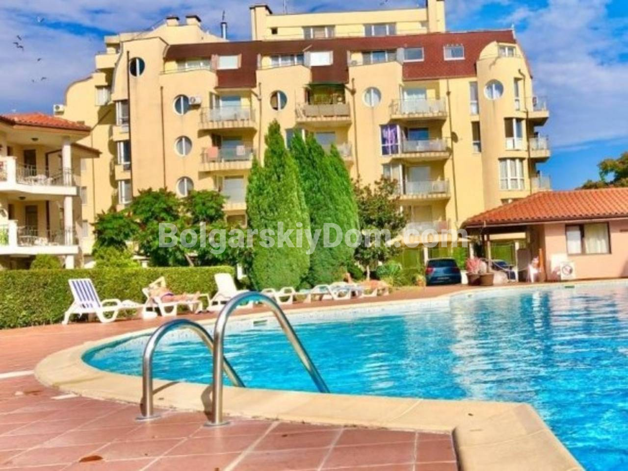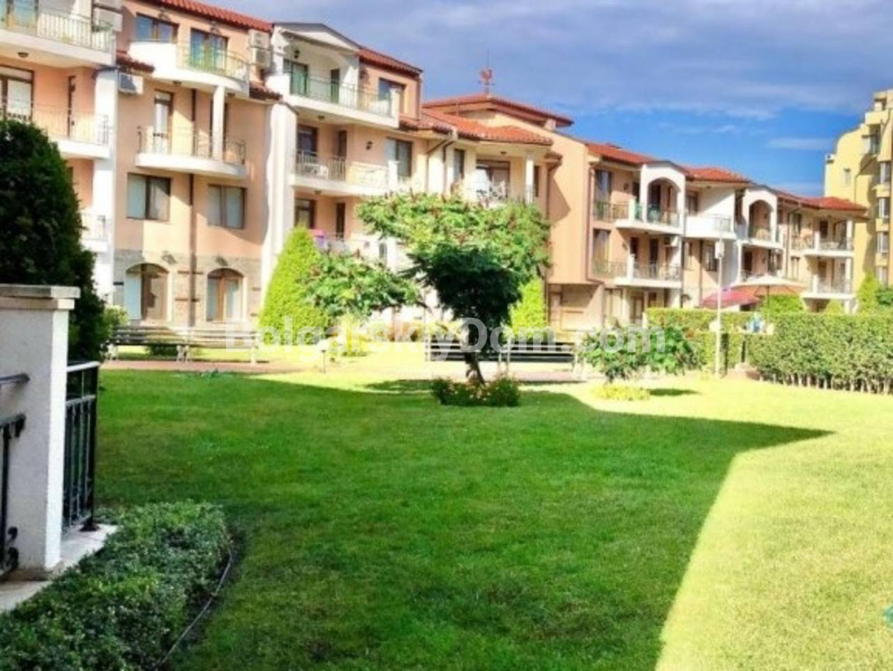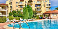 Аркадия -это небольшой, но очень уютный и ухоженный жилой комплекс, расположенный в самой престижной южной части Солнечного Берега. До знаменитого пляжа Какао Бич и чистого моря всего 300 метров! На территории созданы все условия для беззаботного отдыха: большой открытый бассейн с детской секцией, зоны для загара, детская площадка и, что особенно важно, охраняемый паркинг для владельцев. Дополнительный плюс: рядом протекает река, создавая идеальное место для прогулок и тишины. Комплекс имеет контроль доступа и отличную управляющую компанию. Годовая такса обслуживания составляет 14 евро.