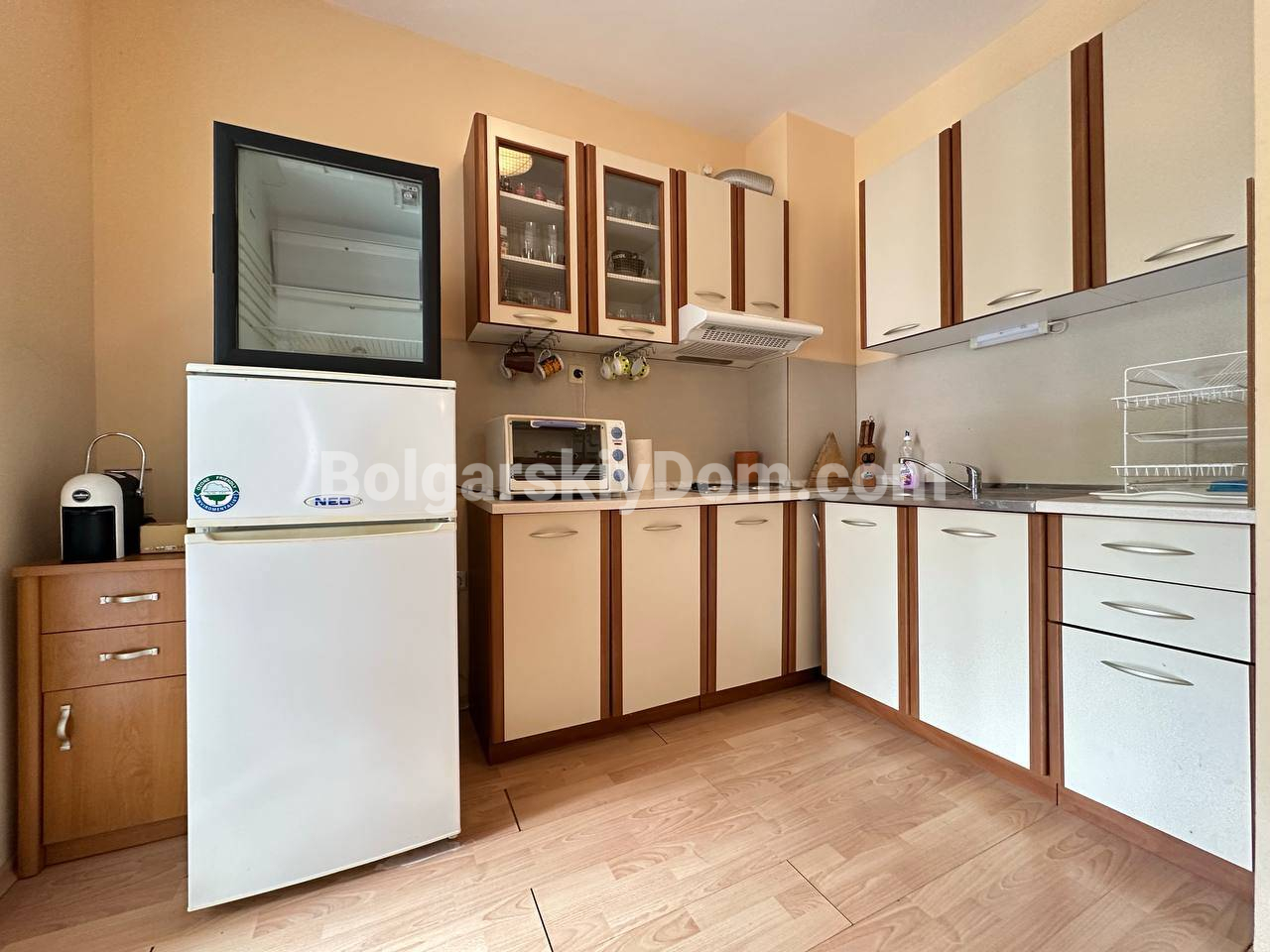Позвольте себе сразу окунуться в курортную жизнь, минуя этап ремонта и обустройства. Компания Болгарский Дом представляет просторную и уютную квартиру, которая продается в идеальном состоянии, полностью меблированной и готовой к проживанию. Планировка объединяет большую кухню, светлую гостиную и зону отдыха. Кухня, оформленная светлыми фасадами, полностью оборудована техникой – от холодильника и плиты до кофемашины и тостера. В просторной гостиной расположен большой диван и обеденная зона. Спальня оформлена в спокойных тонах и имеет удобное двуспальное ложе и письменный стол, что добавляет пространству функциональности. Общий метраж 75 кв.м.