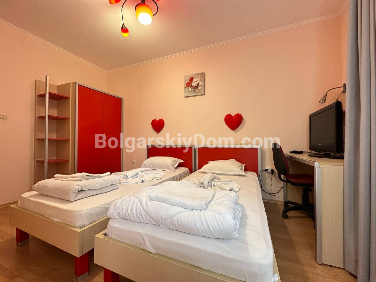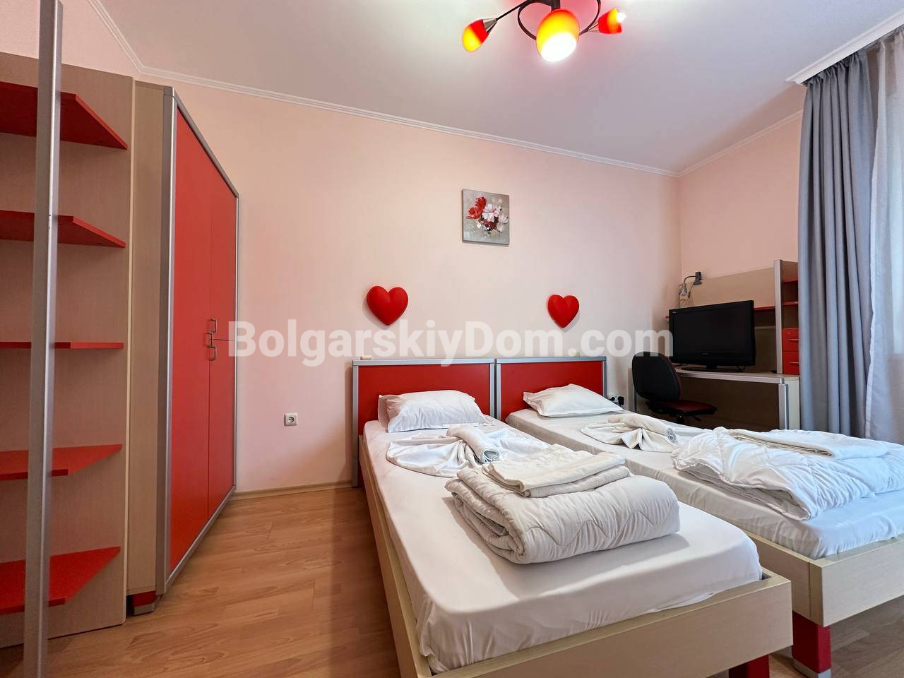 Новинка: курортная недвижимость уникального формата только в АН Болгарский Дом! Пространство, созданное специально для большой семьи или высокодоходной аренды. наша компания представляет уникальный лот в самом центре курорта – гигантский апартамент площадью 150 кв.м. в комплексе Санни Форт. Эта недвижимость фактически представляет собой две объединенные двухкомнатные квартиры, что дало ей невероятное преимущество: три отдельные спальни, две ванные комнаты, большая прихожая и целых три террасы !Самое эксклюзивное в этом предложении – его расположение на первом этаже с прямым выходом к бассейну. Вы получаете удобство загородного дома с сервисом курортного комплекса. Юридически квартира также уникальна: она сохранила два отдельных нотариальных акта и две партиды для тока и воды, что дает невероятную гибкость при будущей перепродаже или сдаче части жилья в аренду.