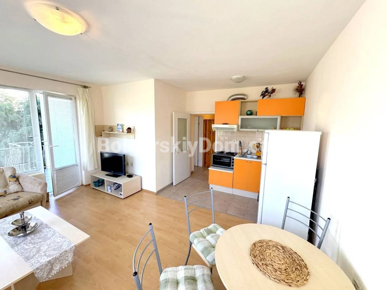 Компания Болгарский Дом предлагает уютные апартаменты с одной спальней в комплексе Акротирия, расположенном в историческом городе Несебр. Квартира площадью 57 кв.м. находится на 2-м этаже четырехэтажного здания. Планировка включает прихожую, просторную гостиную с кухонной зоной, отдельную спальню, санузел и террасу, с которой открывается приятный вид на парк и море. Апартамент полностью меблирован и оснащен техникой, что позволяет сразу въехать или сдавать его в аренду. Комплекс введен в эксплуатацию и имеет Акт 16. Отличное решение под ПМЖ и аренду, звоните!