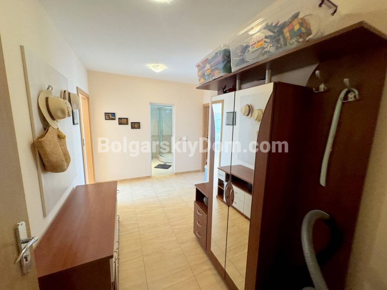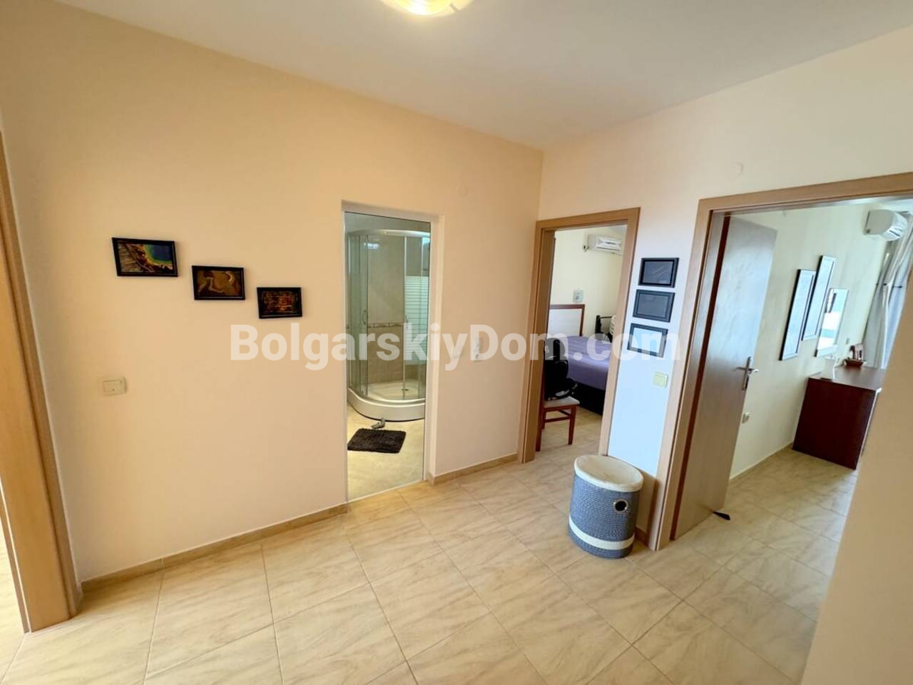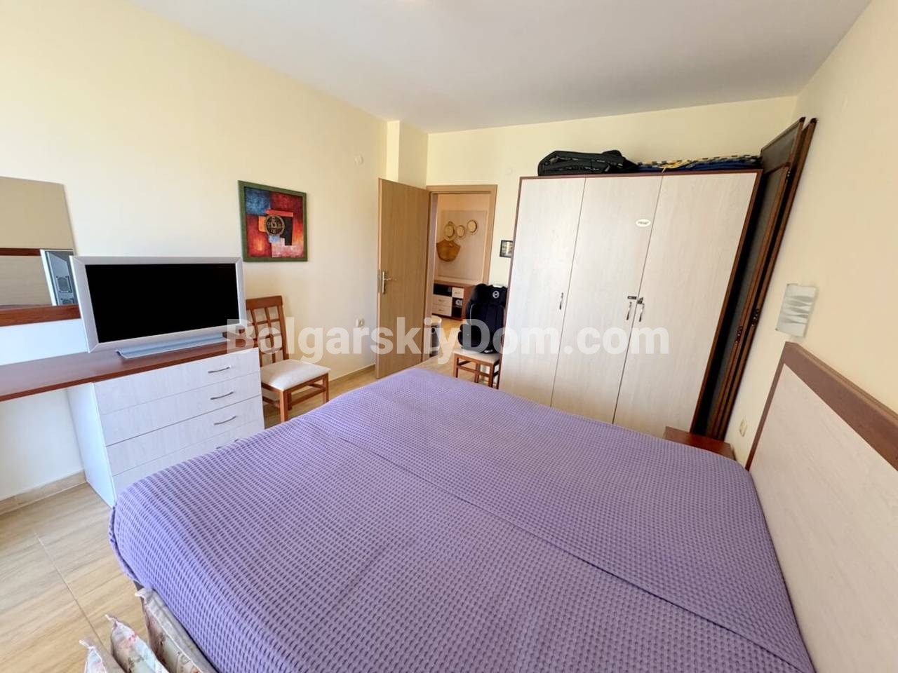 Новинка в топ-сегменте и уже готова к заселению! Встречайте роскошный апартамент на первой линии моря, где из окон открывается одновременно морская панорама и величие гор. Компания Болгарский Дом предлагает просторные апартаменты с двумя спальнями площадью 100 кв.м. в закрытом комплексе Аква Дримс в Святом Власе. Квартира расположена на 4-м этаже и имеет идеальную планировку: прихожая, гостиная с кухней, две спальни и, что очень удобно для семьи, два полноценных санузла. Апартамент имеет две террасы: одна с шикарным видом на море и бассейн, а вторая - на горы. Жилье полностью меблировано и оснащено техникой.