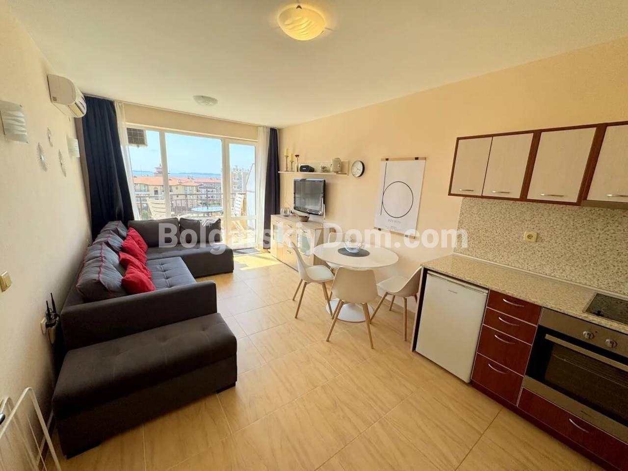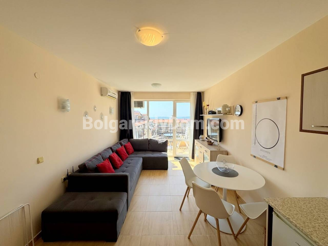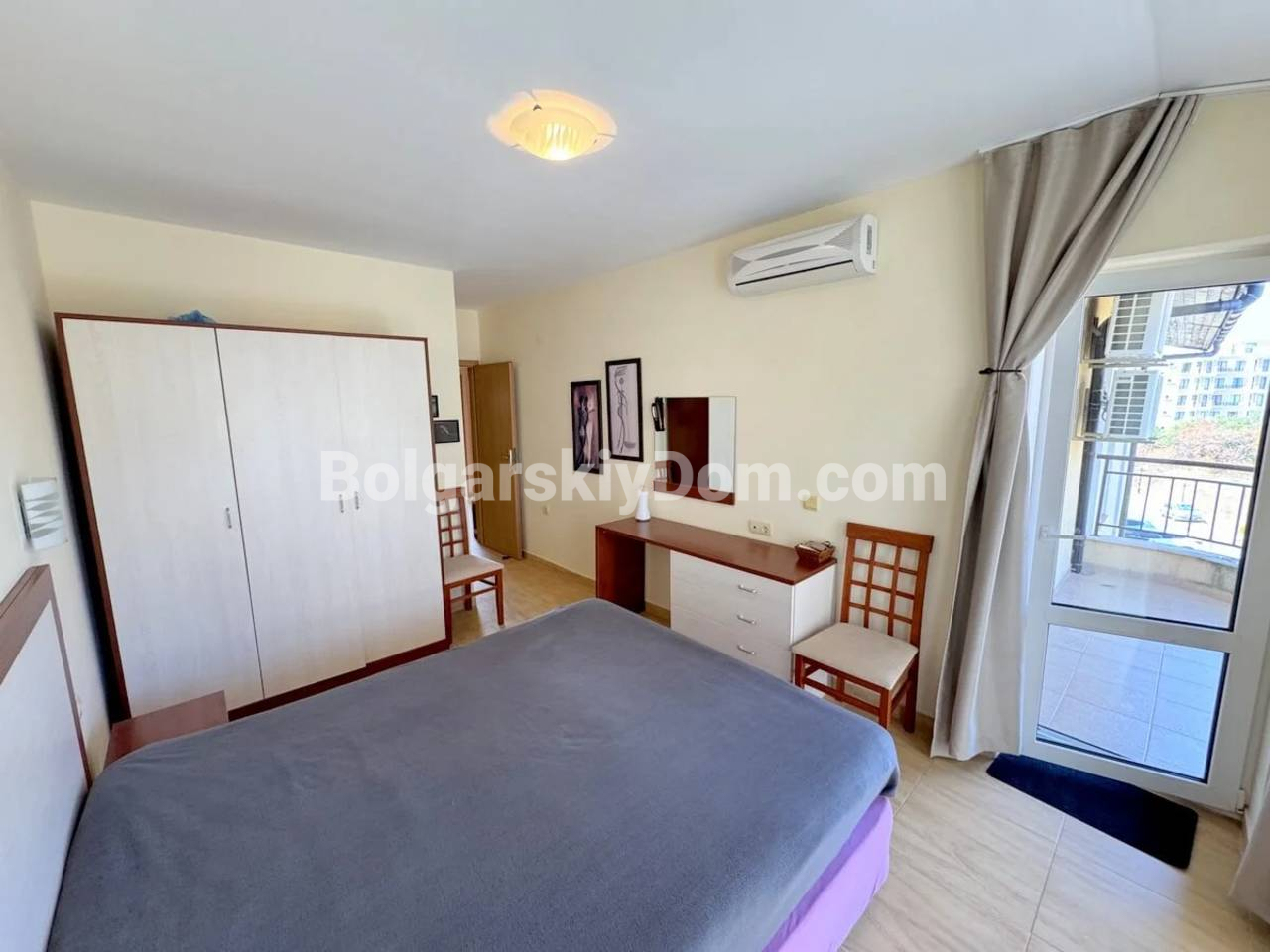 Новинка в топ-сегменте и уже готова к заселению! Встречайте роскошный апартамент на первой линии моря, где из окон открывается одновременно морская панорама и величие гор. Компания Болгарский Дом предлагает просторные апартаменты с двумя спальнями площадью 100 кв.м. в закрытом комплексе Аква Дримс в Святом Власе. Квартира расположена на 4-м этаже и имеет идеальную планировку: прихожая, гостиная с кухней, две спальни и, что очень удобно для семьи, два полноценных санузла. Апартамент имеет две террасы: одна с шикарным видом на море и бассейн, а вторая - на горы. Жилье полностью меблировано и оснащено техникой.