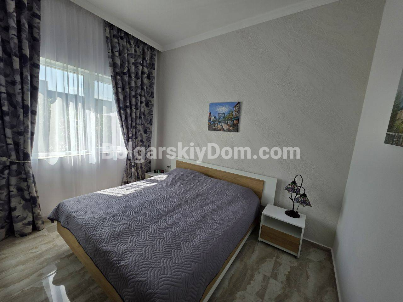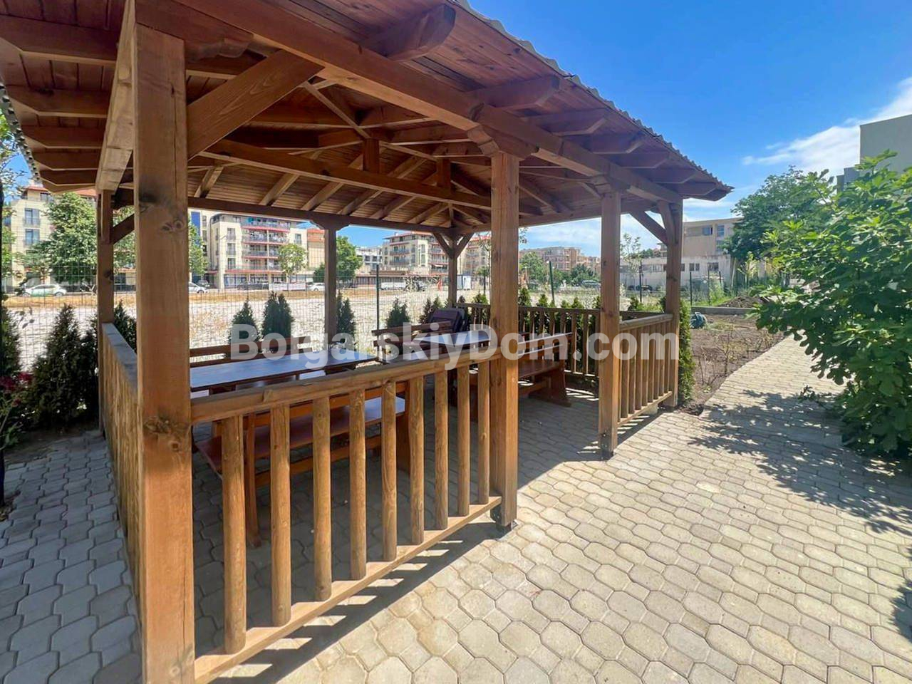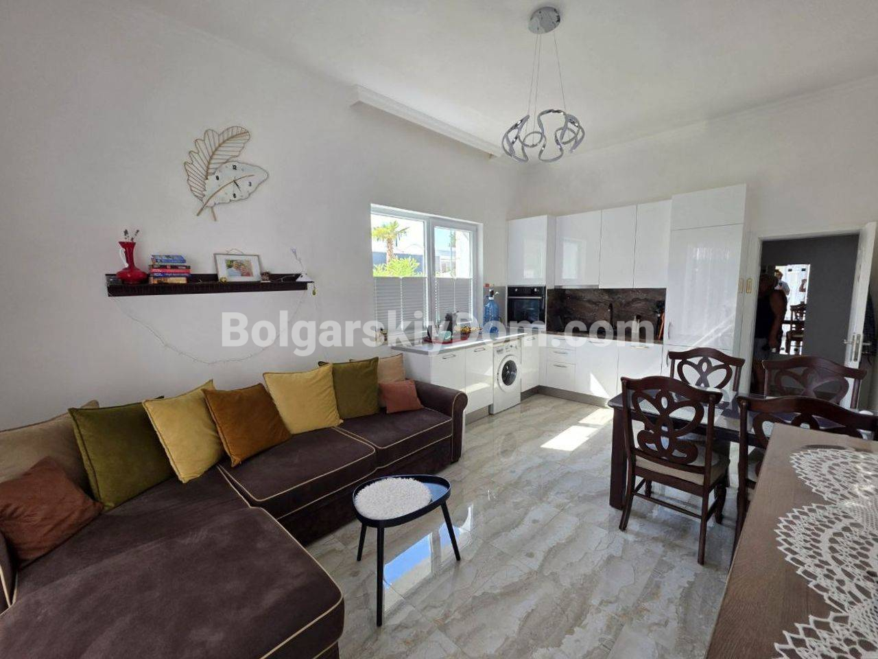 Ваша идеальная двухкомнатная квартира с высокими потолками и прямым доступом к зеленой зоне ждет вас в самом сердце курорта! Компания Болгарский Дом запускает в продажу апартамент площадью 67 кв.м. в новом жилом комплексе Магнолия 6 на Солнечном Берегу. Квартира расположена на партерном этаже, что дарит вам преимущество большой террасы с зоной для отдыха. Главная особенность: высота потолков составляет 3,3 метра, а это как нельзя лучше создает невероятное ощущение простора и света. Жилье имеет прекрасную планировку, включающую прихожую, большую гостиную с кухонной зоной и отдельную спальню. Квартира в идеальном состоянии, укомплектована новой качественной мебелью и техникой.