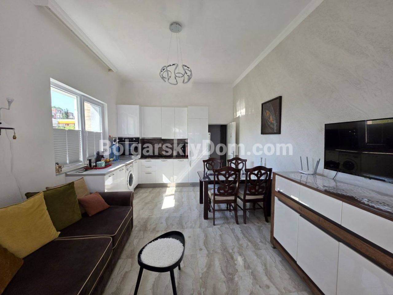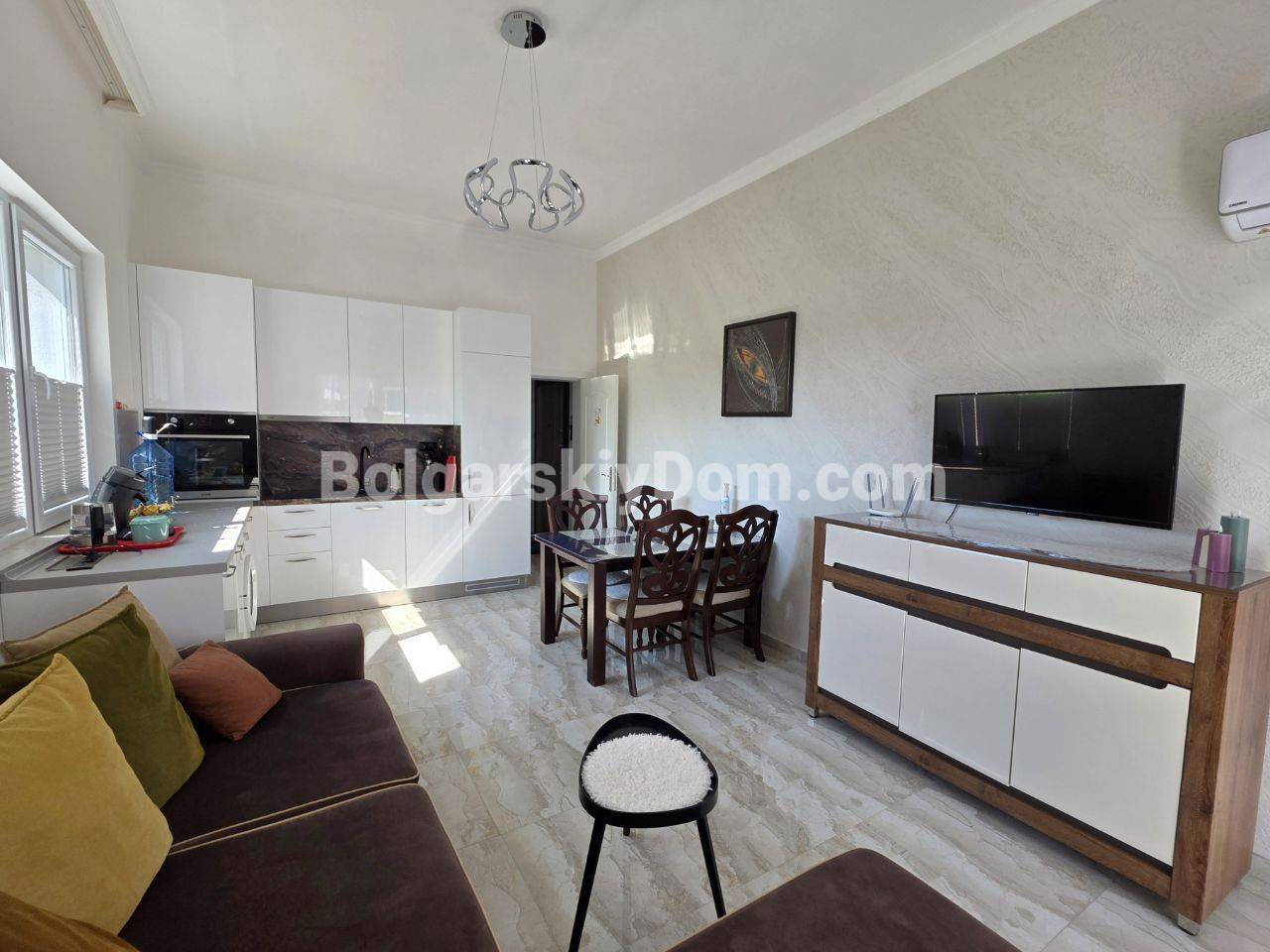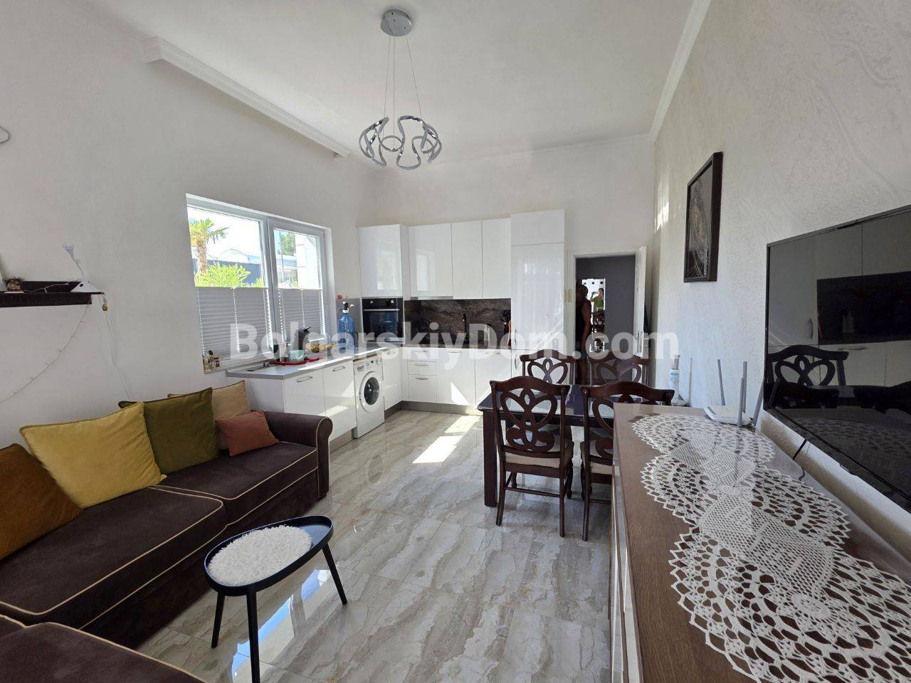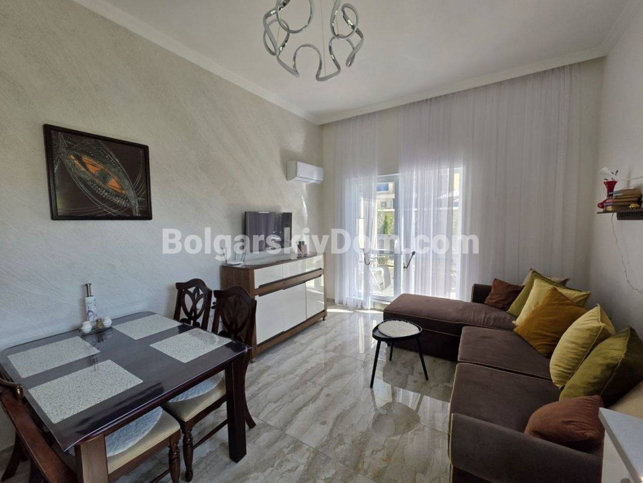 Ваша идеальная двухкомнатная квартира с высокими потолками и прямым доступом к зеленой зоне ждет вас в самом сердце курорта! Компания Болгарский Дом запускает в продажу апартамент площадью 67 кв.м. в новом жилом комплексе Магнолия 6 на Солнечном Берегу. Квартира расположена на партерном этаже, что дарит вам преимущество большой террасы с зоной для отдыха. Главная особенность: высота потолков составляет 3,3 метра, а это как нельзя лучше создает невероятное ощущение простора и света. Жилье имеет прекрасную планировку, включающую прихожую, большую гостиную с кухонной зоной и отдельную спальню. Квартира в идеальном состоянии, укомплектована новой качественной мебелью и техникой.