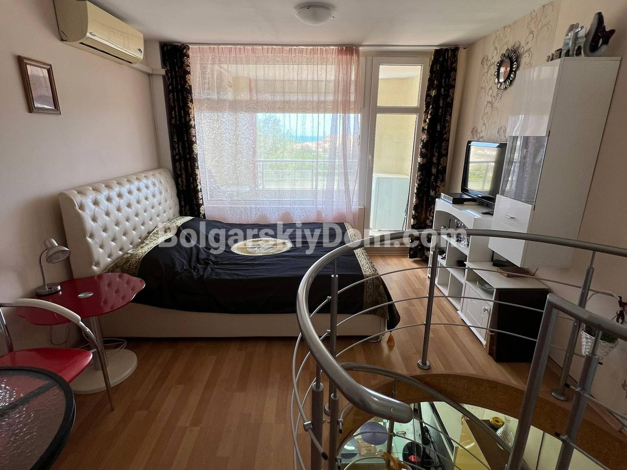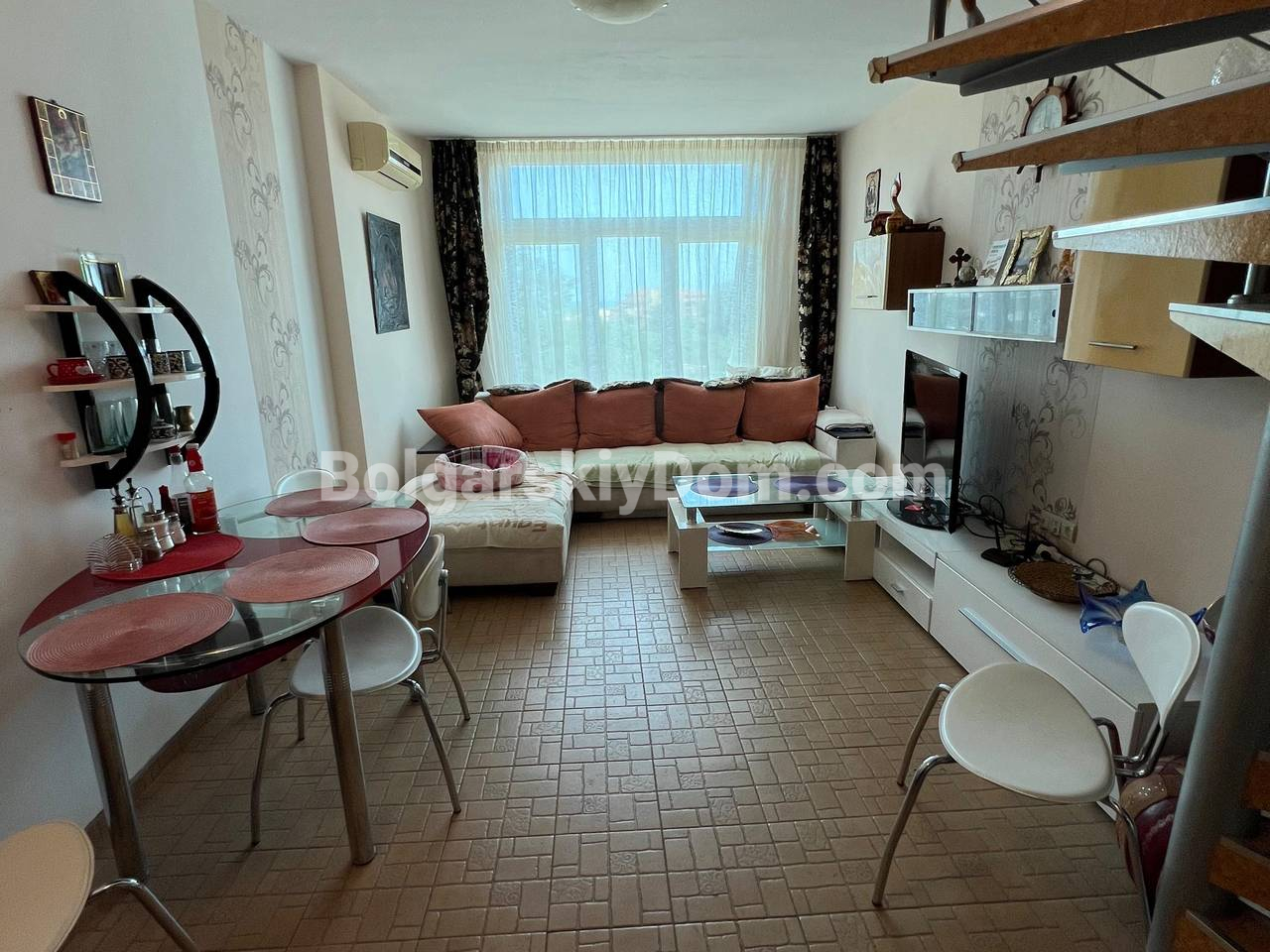 Ищете стильное жилье с видом на море и продуманным пространством? Предлагаем к продаже уникальный мезонет с одной спальней в комплексе Глобал Вил на Солнечном Берегу. Апартамент площадью 75 кв.м. расположен на шестом этаже и имеет двухуровневую планировку. На первом уровне находится гостиная с кухонным уголком, а на втором спальня с собственной гардеробной и туалетом. С террасы мезонета открывается частичный, но приятный вид на море. Жилье продается полностью готовым к заселению, с необходимым оснащением и оборудованием.