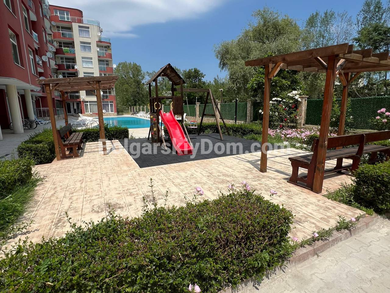 Комплекс Глобал Вилл расположен в западной, коммуникативной части Солнечного Берега, всего в 300 метрах от песчаной пляжной полосы. Отличная локация делает этот объект подходящим как для сезонного отдыха, так и для круглогодичного проживания: в непосредственной близости находится вся необходимая инфраструктура: магазины, рестораны, автобусные остановки, аптека и медицинский центр. На территории комплекса есть открытый бассейн для взрослых и детей, зоны для релакса, барбекю, магазин и паркинг. Безопасность обеспечивается охраной и контролируемым доступом. Цена этого просторного и функционального мезонета невероятно доступна, станьте первым претендентом - звоните!
