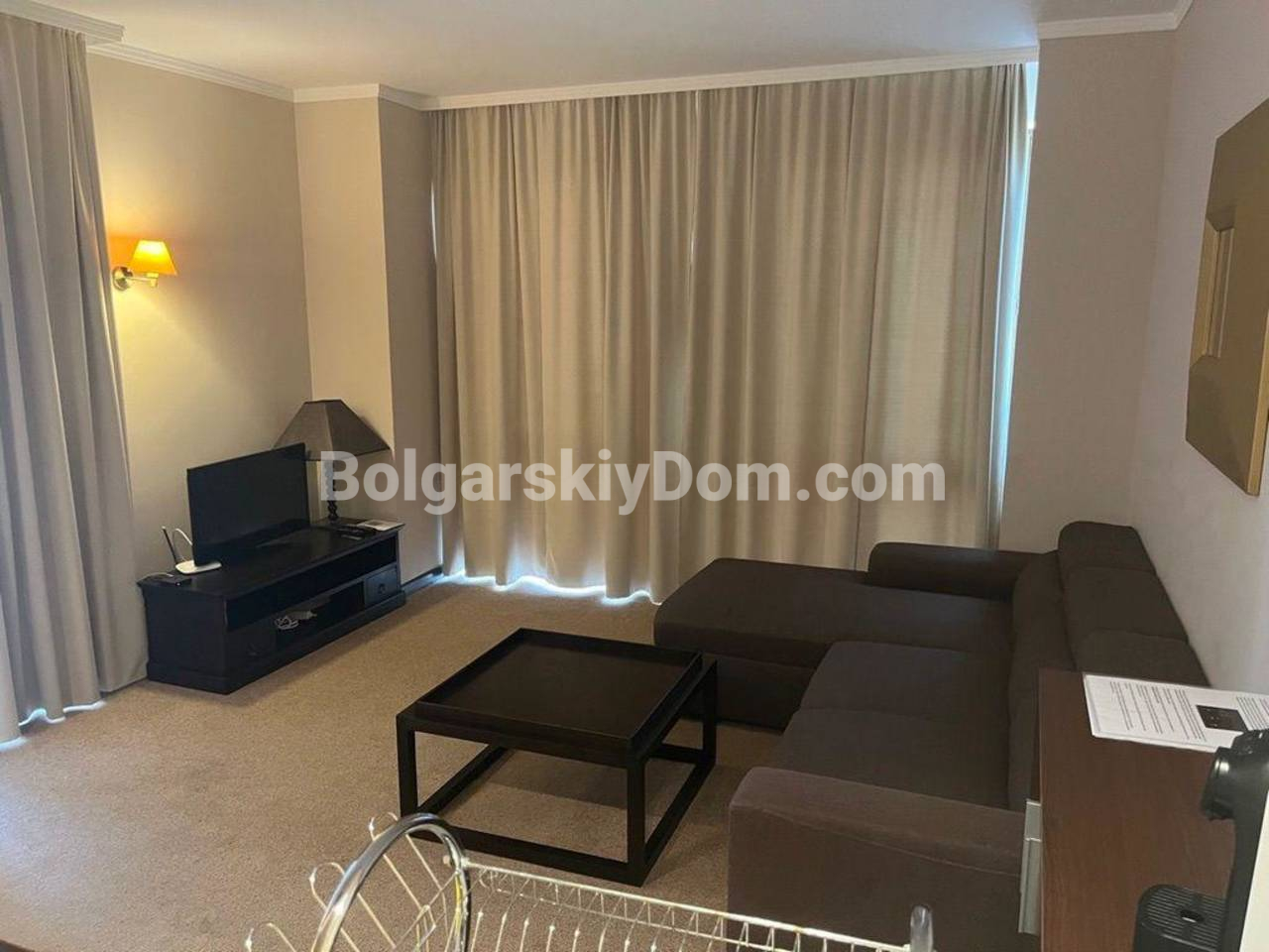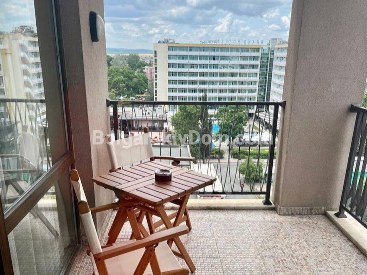 Используйте шанс приобрести просторный апартамент в самом сердце курорта по сниженной цене! Предлагается к продаже двухкомнатная квартира (с 1 спальней) площадью 73,63 кв.м. в престижном комплексе Роял Бич Барсело на Солнечном Берегу. Апартамент расположен на 4-м этаже и продается полностью обставленным и оборудованным для немедленного использования, включая кондиционер, полный набор кухонной техники (керамическая плита, духовка, микроволновая печь, холодильник) и посуду. Планировка включает спальню с двуспальной кроватью, гостиную с раскладным диваном, кухню-столовую, ванную комнату с ванной и просторный балкон с видом на дорогу. Акционная стоимость, звоните!
