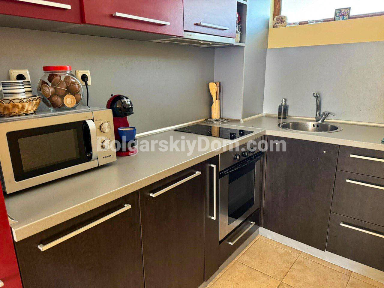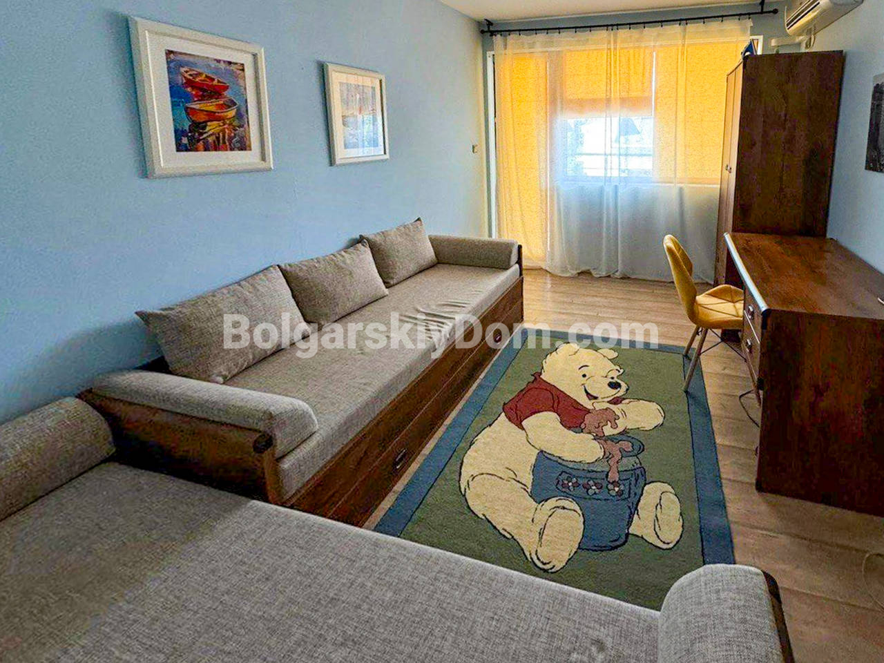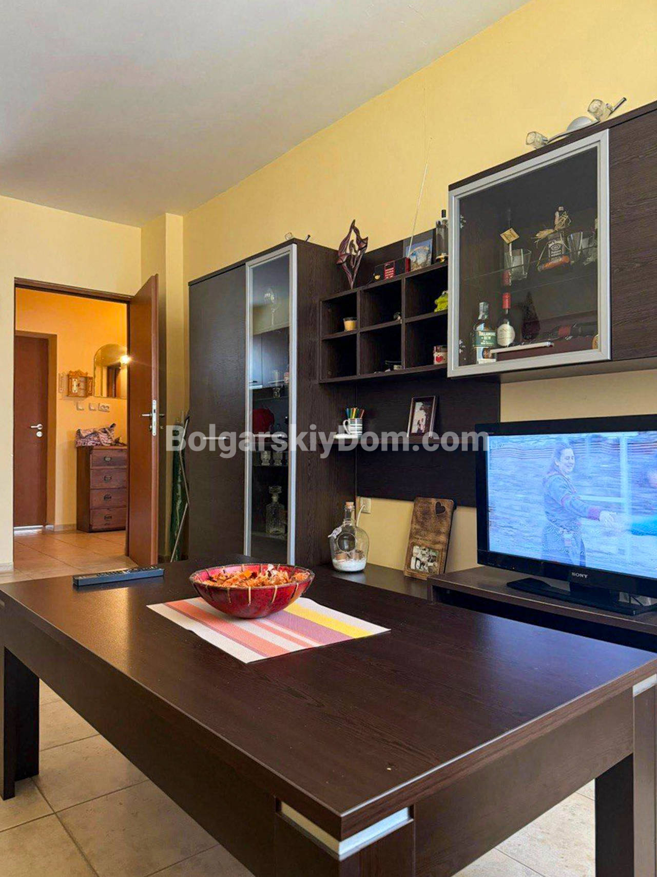 Обратите внимание на выгодное предложение в самом сердце Солнечного Берега! Новинка - просторная двухкомнатная квартира площадью 64 кв.м. в комплексе Вилла София, расположенном в районе Чайка. Апартамент находится на 5-м этаже шестиэтажного здания и продается полностью меблированным, что делает его готовым к долгосрочной аренде или комфортному проживанию. Интерьер оформлен в удобном, не перегруженном стиле, идеально подходящем для жизни у моря. Кухня, санузел, гостиная и спальня - все в полном комплекте, идеально для долгосрока!