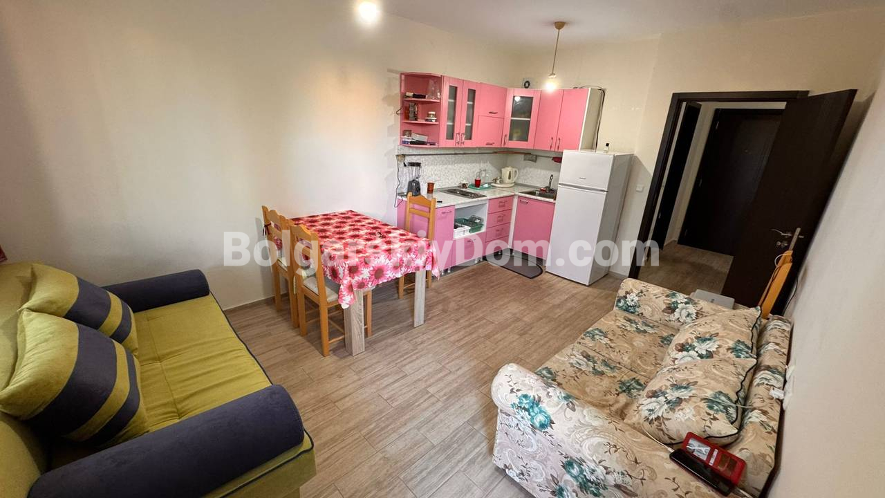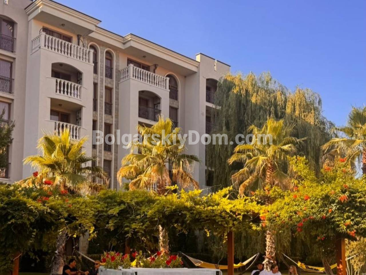 От АН Болгарский Дома - новинка каталога! Исключительно стильный и функциональный апартамент с двумя спальнями ждет вас в самом известном семейном курорте Солнечного Берега, комплексе Каскадас. Этот объект недвижимости, общей площадью 70 кв.м., расположен на втором этаже и сразу готов к заселению. Квартира отличается продуманным распределением: здесь есть просторная гостиная, объединенная с кухней и столовой, две полноценные, отдельные спальни, ванная комната и терраса. Главное преимущество этого жилья - вид на тихую парковую зону и зеленые аллеи, что гарантирует спокойствие, вдали от курортного шума. Апартамент продается полностью обставленным и оборудованным: вас ждет высококачественная мебель, полный комплект электроприборов, кондиционер и кухонная техника.