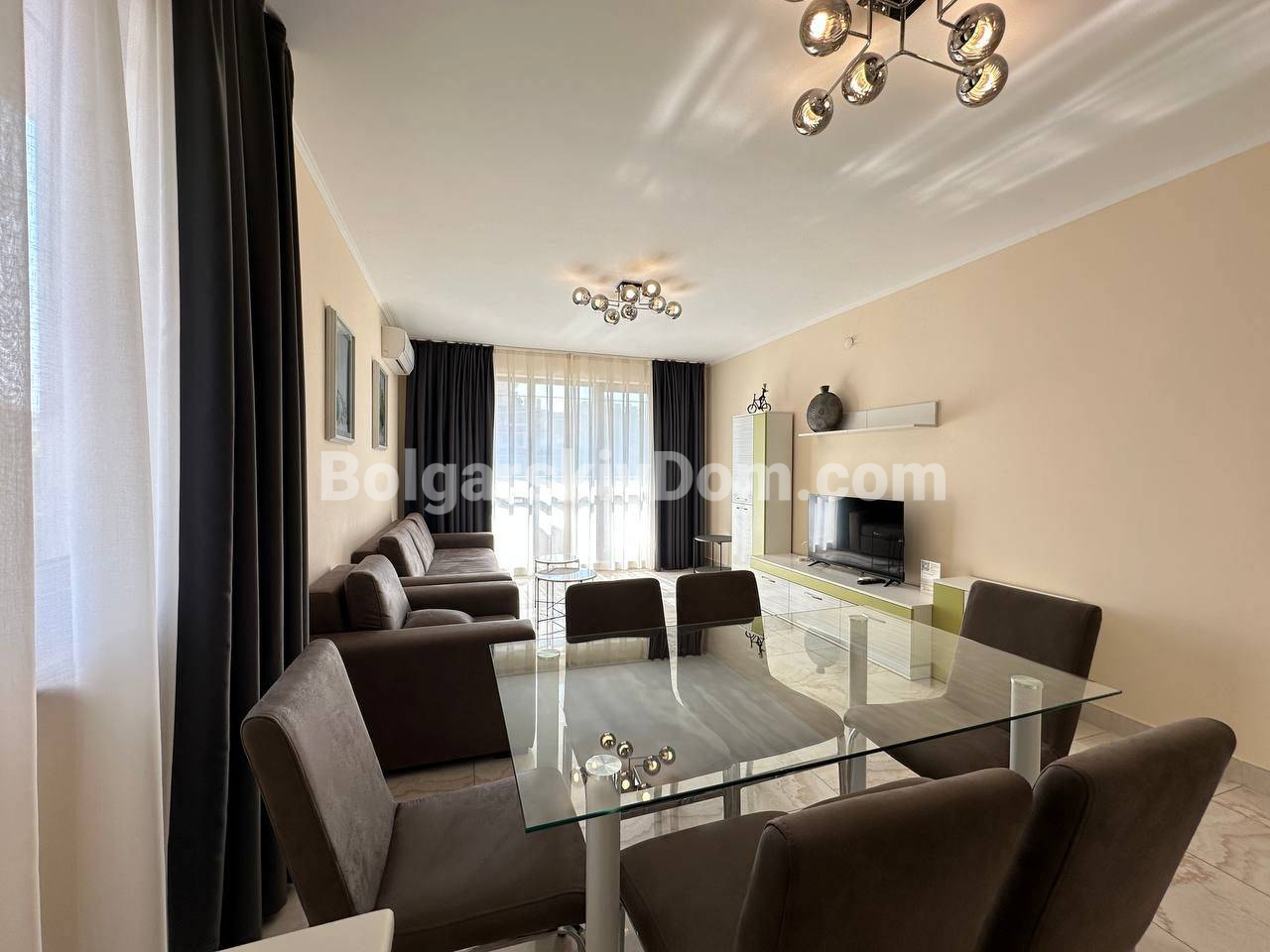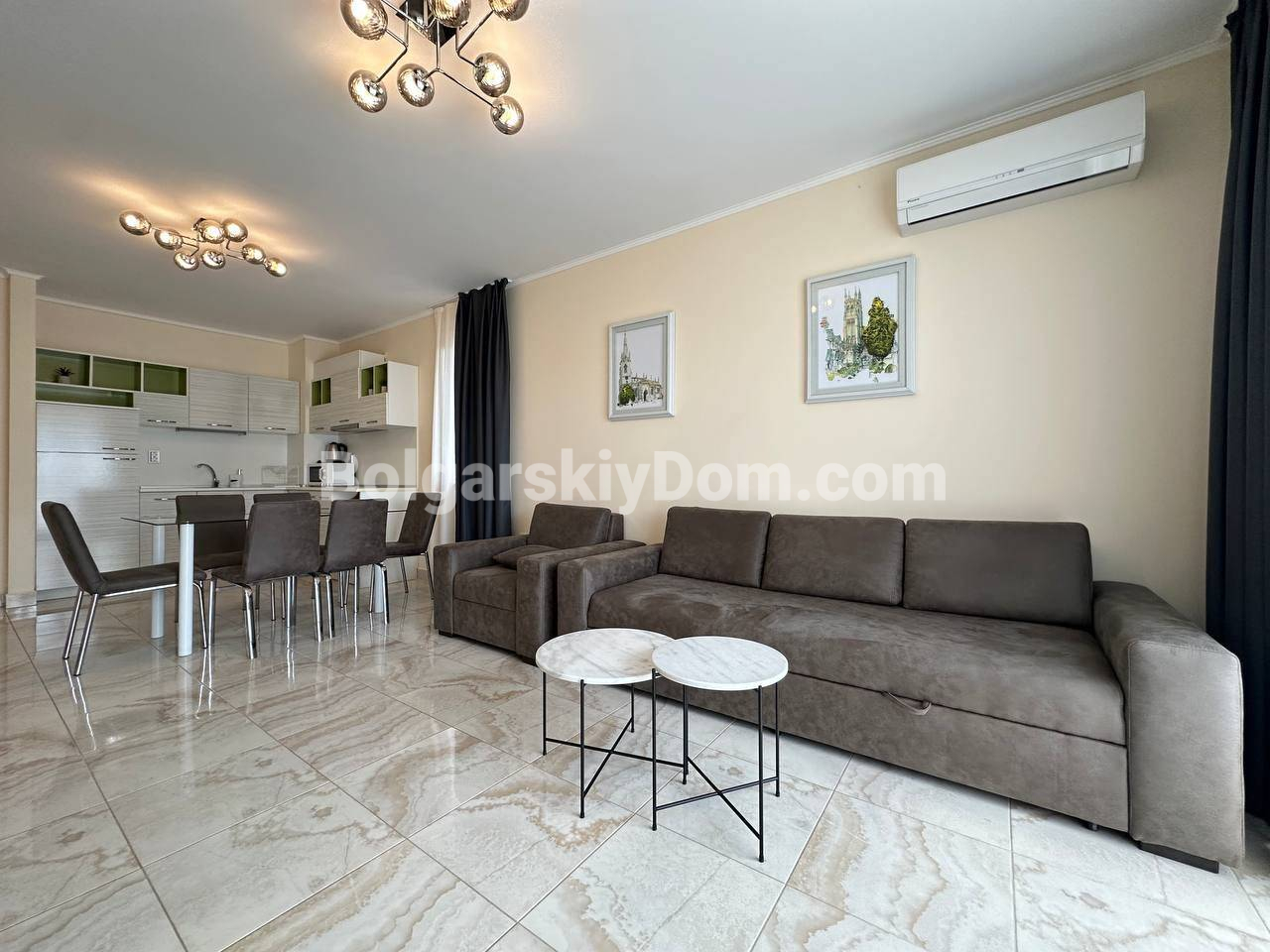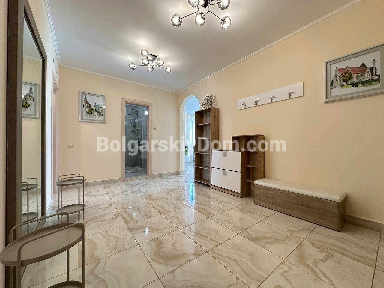 Готовы получить ключи от дизайнерской резиденции, где не нужно думать ни о чем, кроме отдыха? Перед вами специальное горячее предложение - роскошный, по-настоящему премиальный апартамент в Несебре! Это просторная четырехкомнатная квартира площадью 135 кв.м. в комплексе Посейдон, где буквально все сделано для вашего комфорта. Вы попадаете в настоящий "олл-инклюзив" недвижимости: жилье в идеальном состоянии продается с дорогостоящим дизайном, всей техникой и мебелью, а интерьер оформлен в модном, светлом формате Pinterest. Внутри вас ждет функциональное пространство: три полноценные спальни, светлая гостиная с кухней, две ванные комнаты и коридор. Особый шарм добавляют две террасы, одна из которых выходит прямо на бассейн.