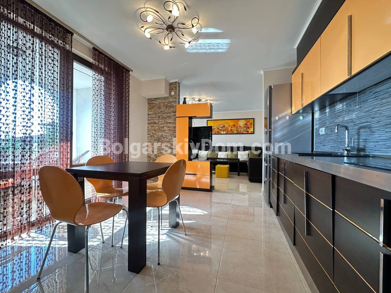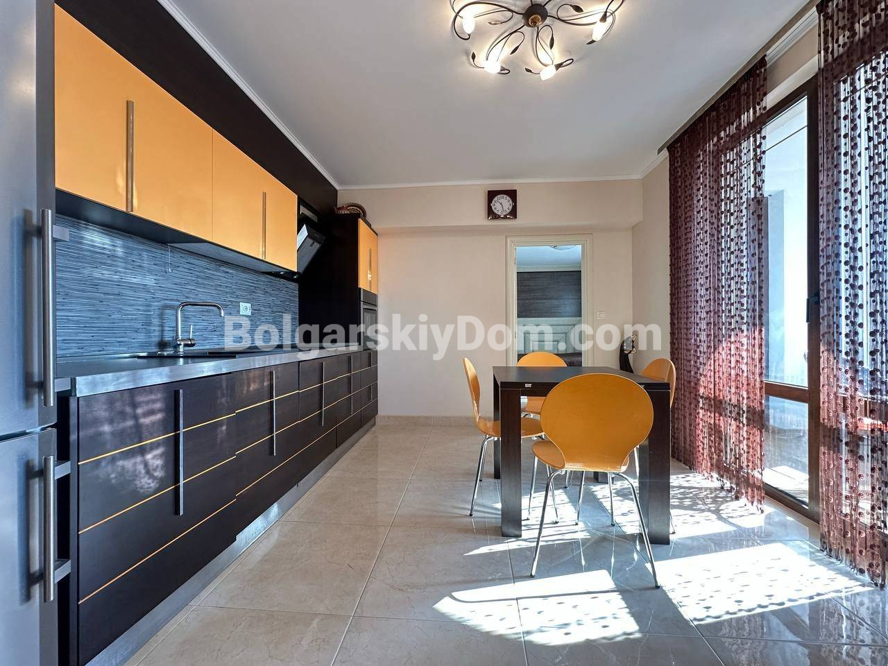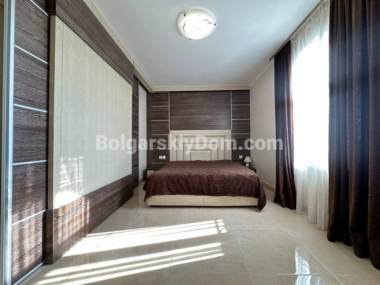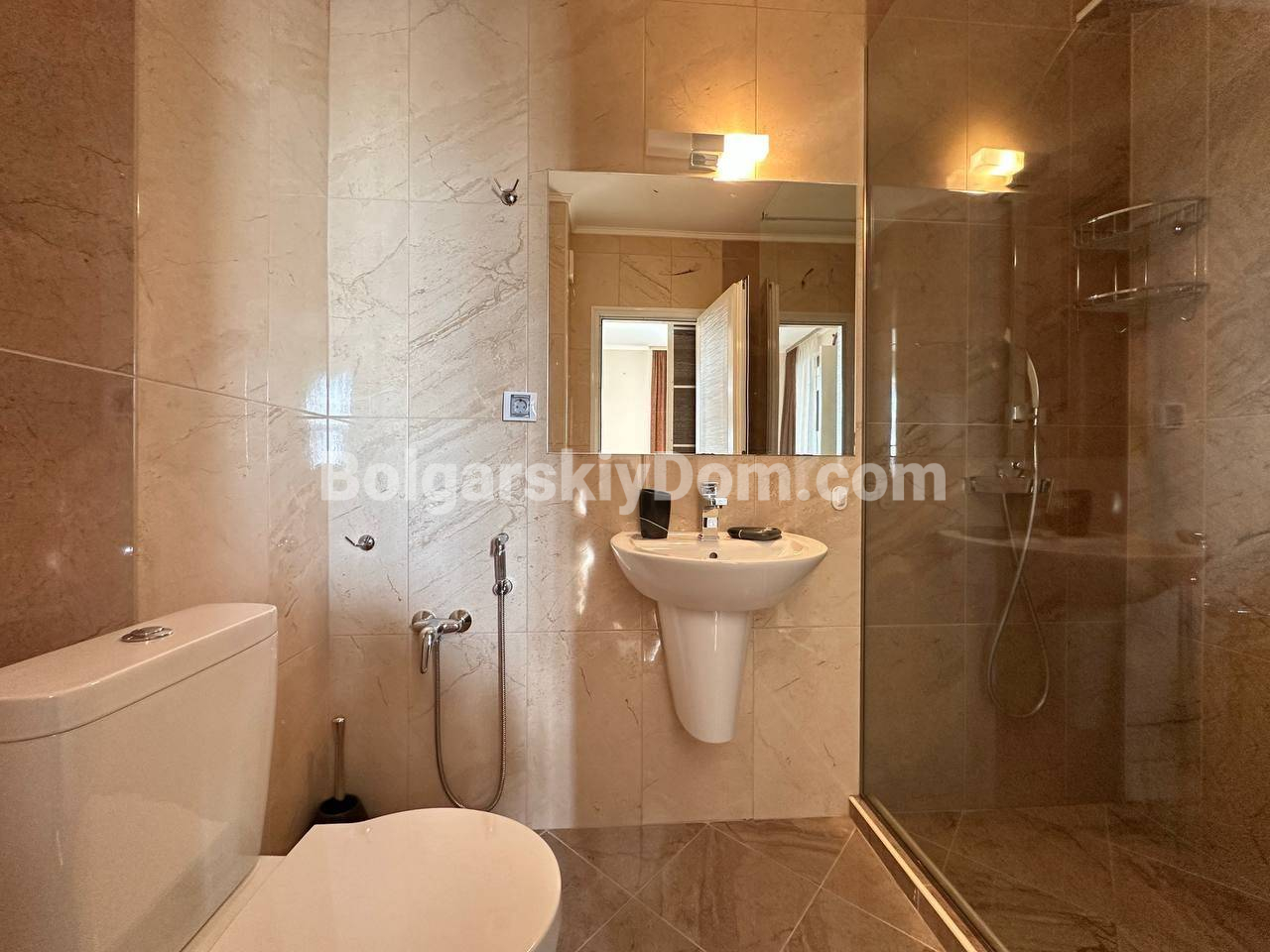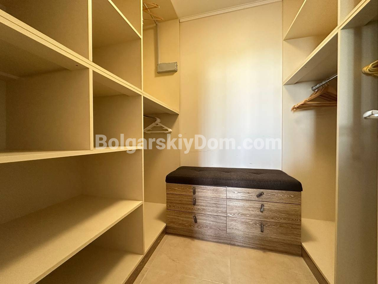 Стиль, простор и атмосфера премиум-класса у моря - все это гармонично сочетается в нашем новом предложении. Элегантный апартамент с двумя спальнями расположен на пятом этаже семиэтажного здания в комплексе Эстебан, Несебр. 129 кв. метров площади, где каждая деталь продумана для вашего комфорта и эстетического удовольствия. Современный дизайн создаёт ощущение лёгкости и пространства. Большая гостиная визуально разделена с кухней и обеденной зоной, формируя сердце дома — место, где приятно проводить вечера с семьёй и друзьями. Две изолированные спальни обеспечивают максимальную приватность, каждая — со своей гардеробной. Из гостиной и спален открываются выходы на две уютные террасы. В апартаменте два полностью оборудованных санузла со стеклянными душевыми. Благодаря планировке на две стороны, в квартире всегда много естественного света и свежего морского воздуха.