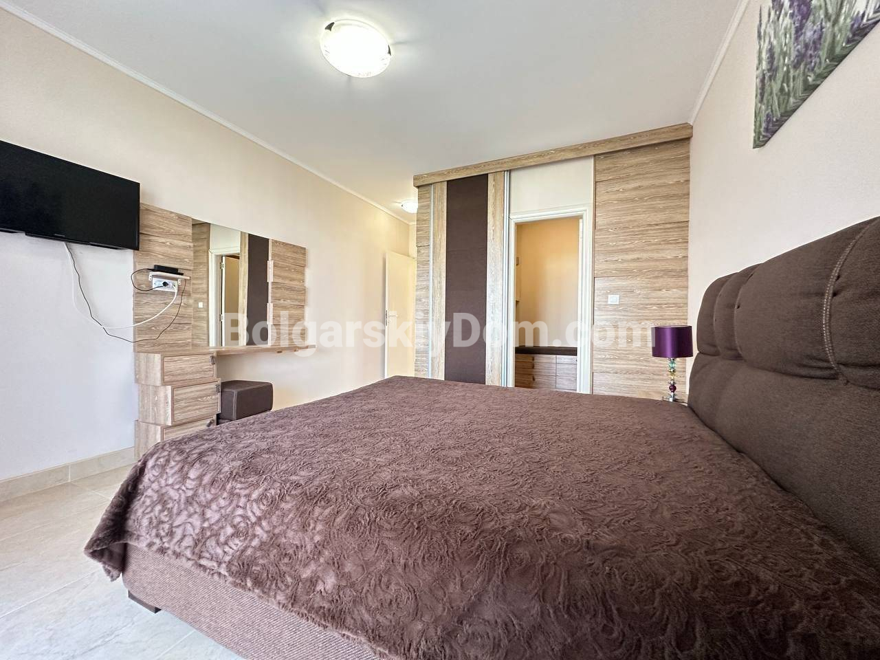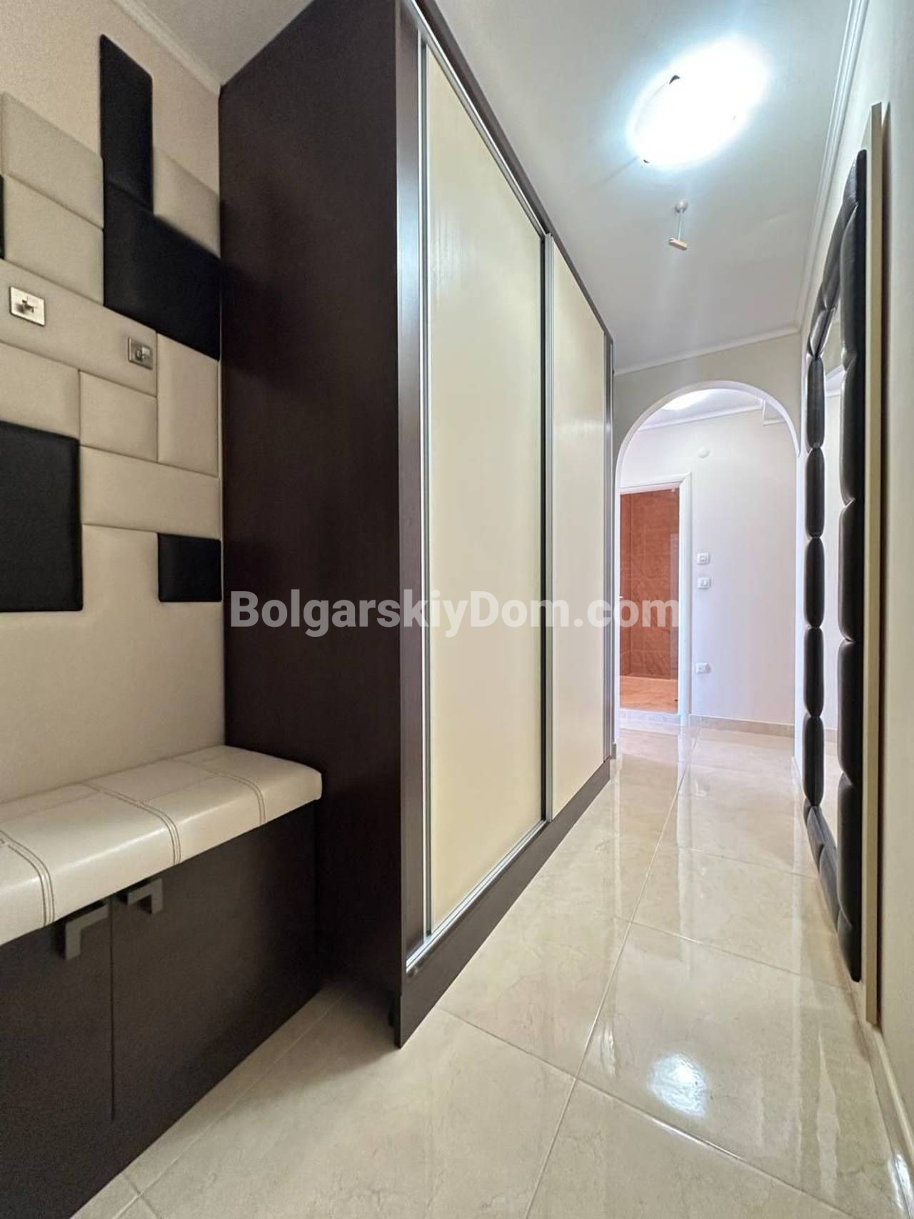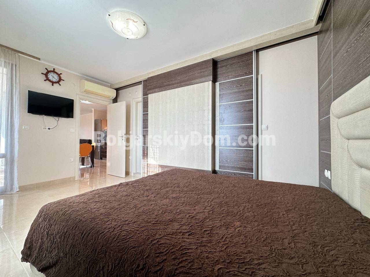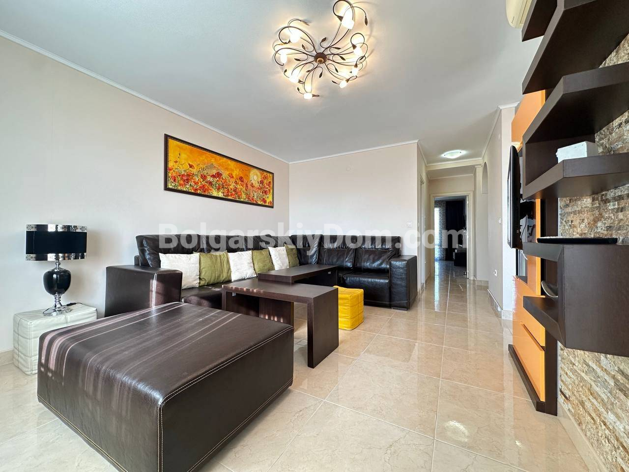 Стиль, простор и атмосфера премиум-класса у моря - все это гармонично сочетается в нашем новом предложении. Элегантный апартамент с двумя спальнями расположен на пятом этаже семиэтажного здания в комплексе Эстебан, Несебр. 129 кв. метров площади, где каждая деталь продумана для вашего комфорта и эстетического удовольствия. Современный дизайн создаёт ощущение лёгкости и пространства. Большая гостиная визуально разделена с кухней и обеденной зоной, формируя сердце дома — место, где приятно проводить вечера с семьёй и друзьями. Две изолированные спальни обеспечивают максимальную приватность, каждая — со своей гардеробной. Из гостиной и спален открываются выходы на две уютные террасы. В апартаменте два полностью оборудованных санузла со стеклянными душевыми. Благодаря планировке на две стороны, в квартире всегда много естественного света и свежего морского воздуха.