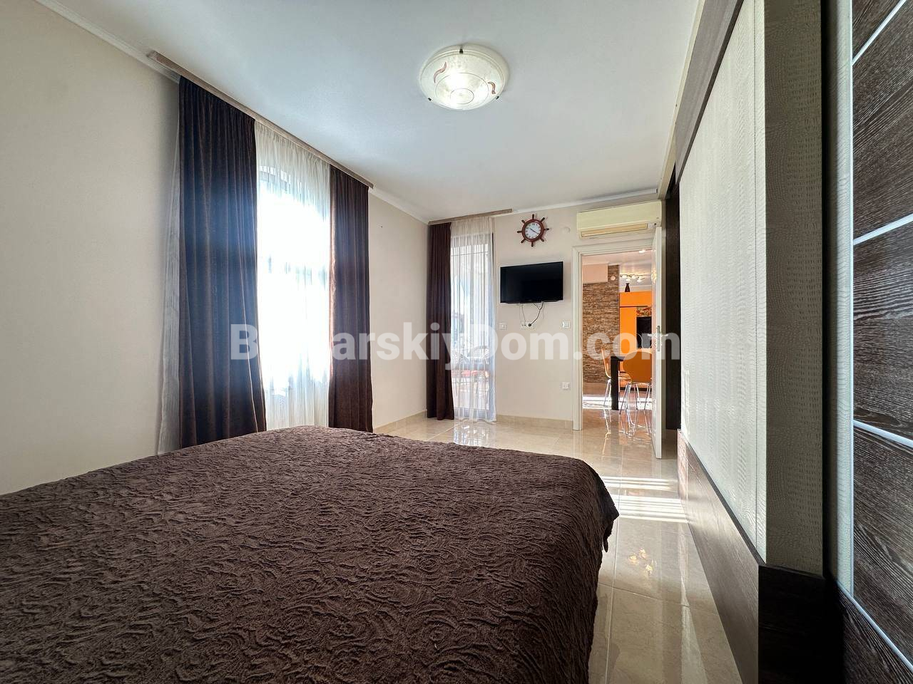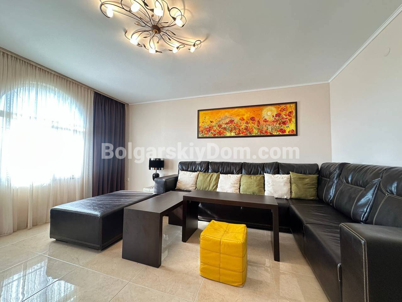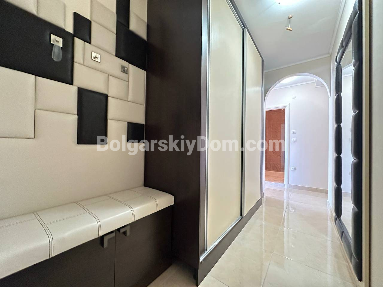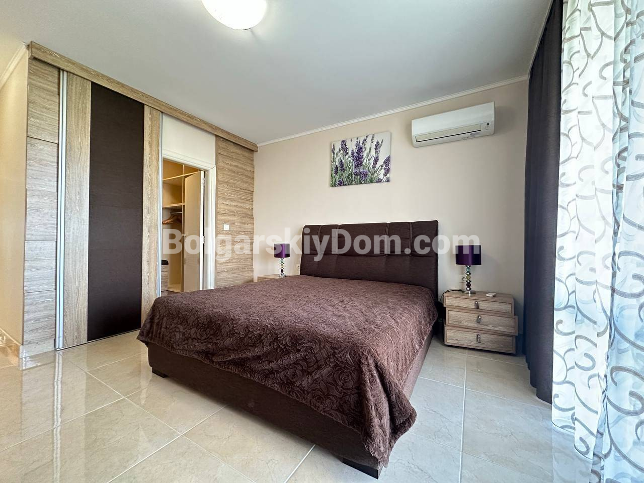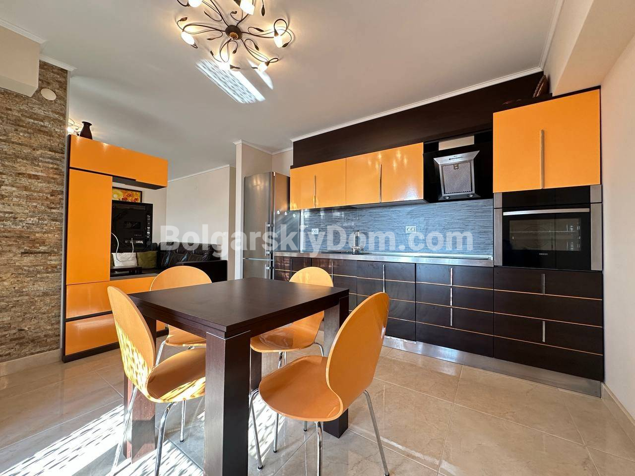Стиль, простор и атмосфера премиум-класса у моря - все это гармонично сочетается в нашем новом предложении. Элегантный апартамент с двумя спальнями расположен на пятом этаже семиэтажного здания в комплексе Эстебан, Несебр. 129 кв. метров площади, где каждая деталь продумана для вашего комфорта и эстетического удовольствия. Современный дизайн создаёт ощущение лёгкости и пространства. Большая гостиная визуально разделена с кухней и обеденной зоной, формируя сердце дома — место, где приятно проводить вечера с семьёй и друзьями. Две изолированные спальни обеспечивают максимальную приватность, каждая — со своей гардеробной. Из гостиной и спален открываются выходы на две уютные террасы. В апартаменте два полностью оборудованных санузла со стеклянными душевыми. Благодаря планировке на две стороны, в квартире всегда много естественного света и свежего морского воздуха.