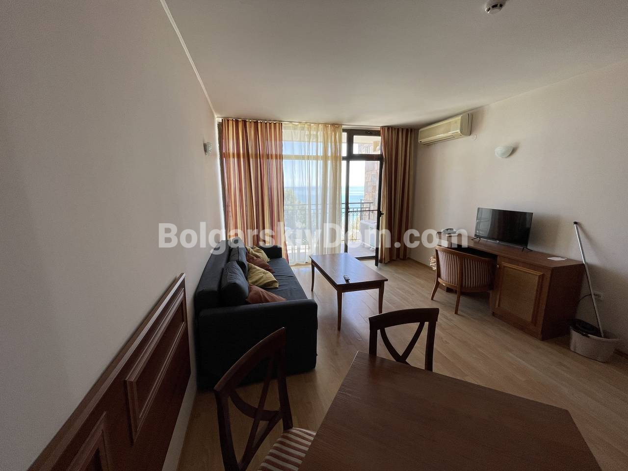 Представляем ТОП текущего каталога - двухкомнатную квартиру с фронтальным, несравненным видом на море в престижном комплексе на первой линии в Святом Власе, ЖК Тива дель мар! Просторная квартира общей площадью 79,75 кв.м. находится на пятом этаже и готова встретить новых владельцев. Войдя в квартиру, вы попадаете в функциональную прихожую, ведущую в светлую гостиную с мини-кухней и уютную спальню. Главная изюминка - большая терраса, на которую можно выйти из обеих комнат и с которой открывается захватывающая панорама моря: идеальное место для утреннего кофе или романтического ужина. Апартамент предлагается полностью меблированным, с тщательно подобранной мебелью и современной техникой.