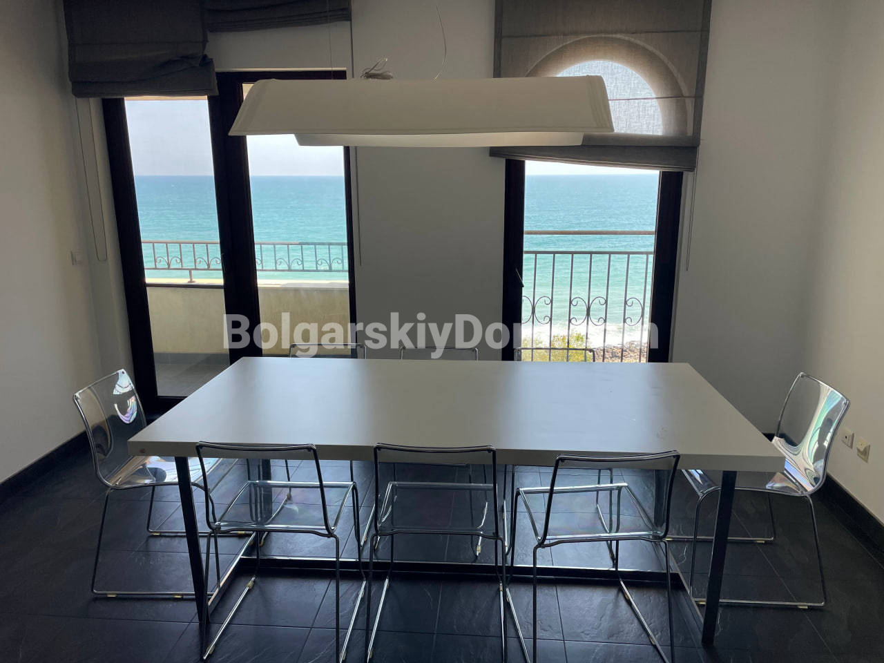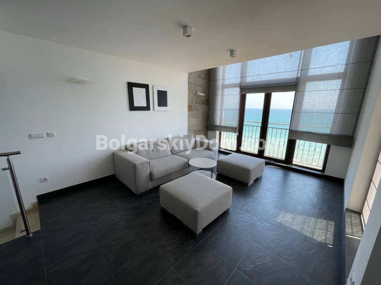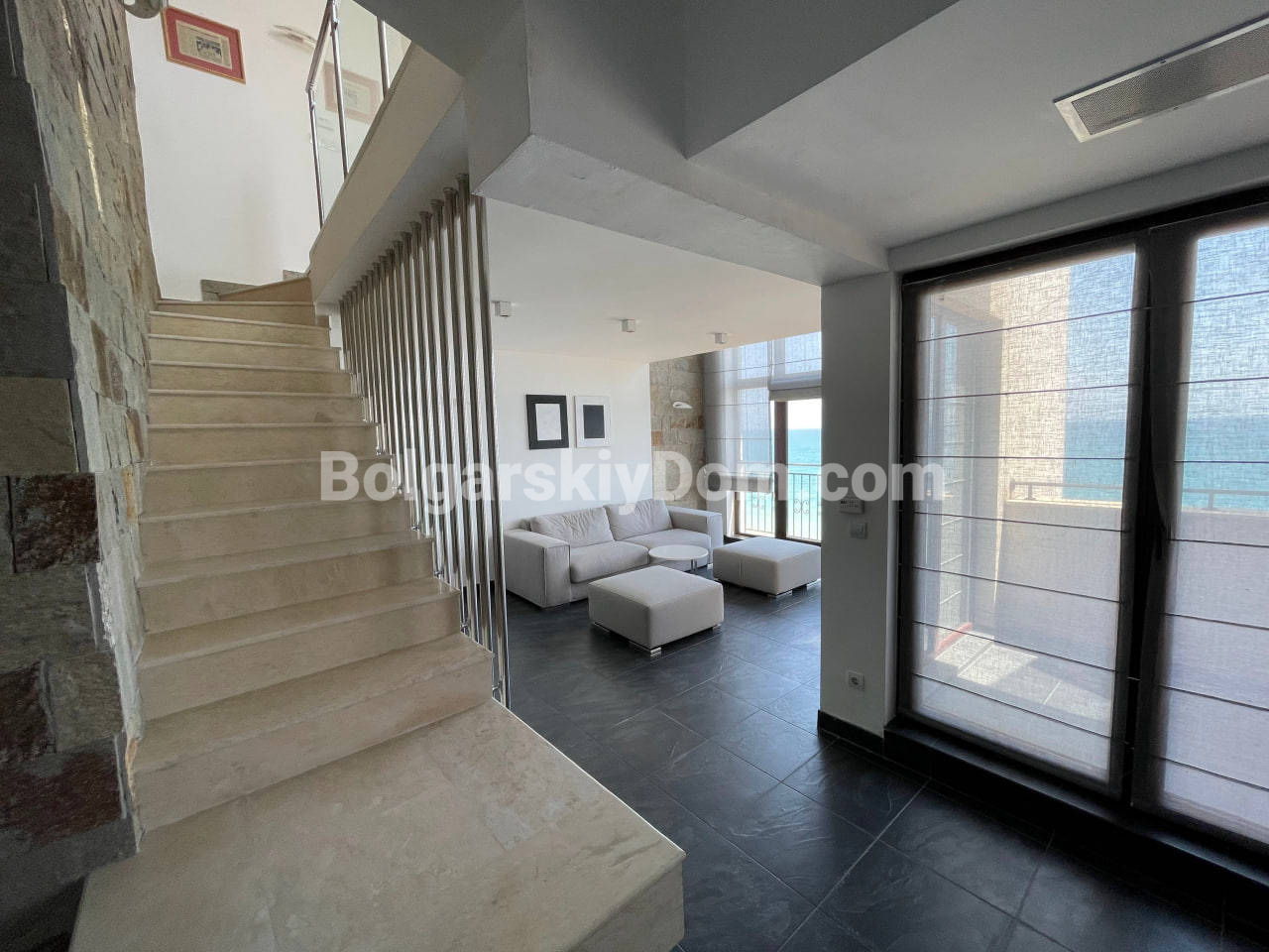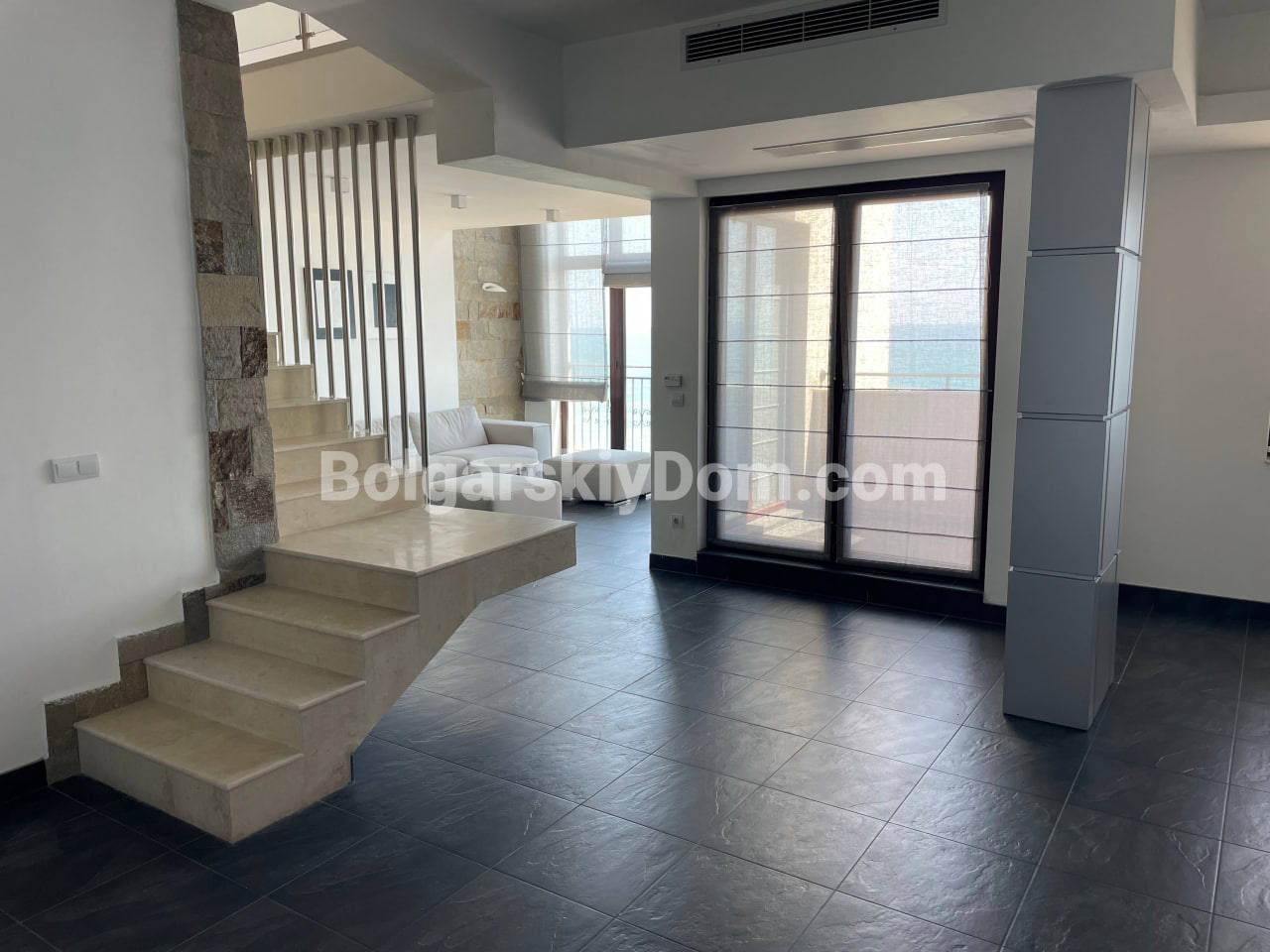 Премиум-новинка от Болгарского Дома! Перед вами исключительный, трехэтажный мезонет в закрытом комплексе Марина Кейп - это уникальная недвижимость площадью 260 кв.м., расположенная на первой линии моря в городе Ахелой! Мезонет создан для большой семьи, которая выбирает простор, приватность и панорамный вид на Черное море. Апартаменты занимают 3, 4 и 5 жилые этажи здания (доступен лифт) и продаются с имеющейся мебелью и техникой, полностью готовые как для незабываемого летнего отдыха, так и для комфортного круглогодичного проживания. Жизнь здесь распределена по трем уровням: на первом этаже расположена кухня со столовой, детская спальня, ванная комната с туалетом, кладовая и терраса. На втором этаже вас ждет просторная гостиная, туалет, а также главная спальня с собственной ванной комнатой и туалетом, и лоджия. Третий, самый впечатляющий уровень - это помещение, которое можно использовать как еще одну спальню или кабинет, с выходом на панорамную террасу на крыше, идеальную для солнечных ванн и зоны барбекю.