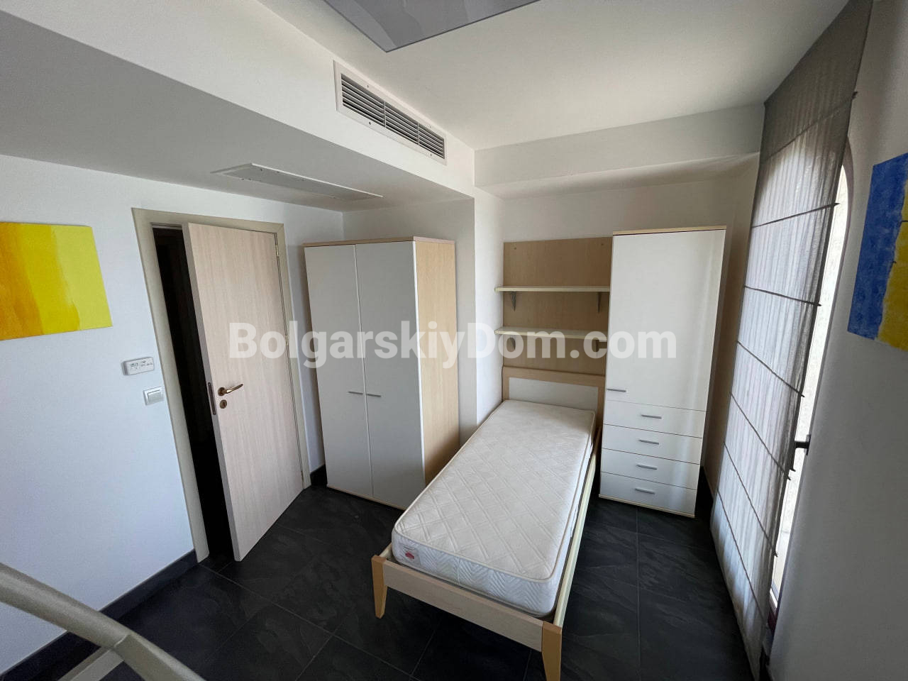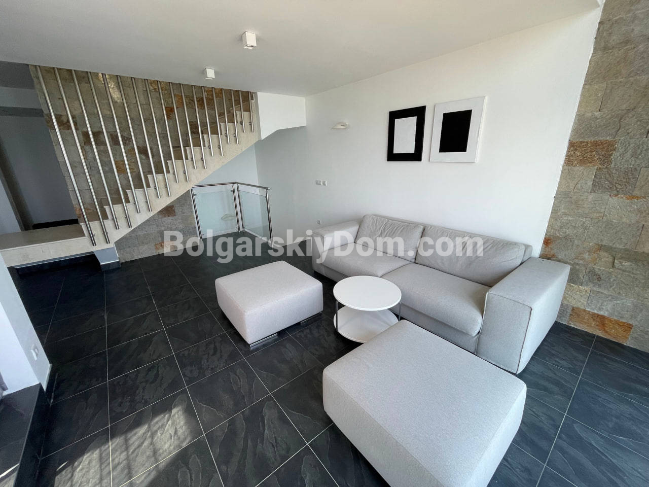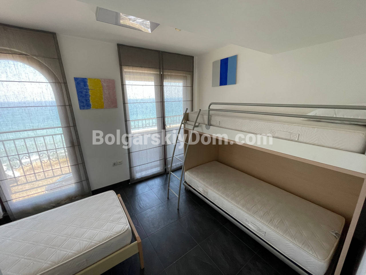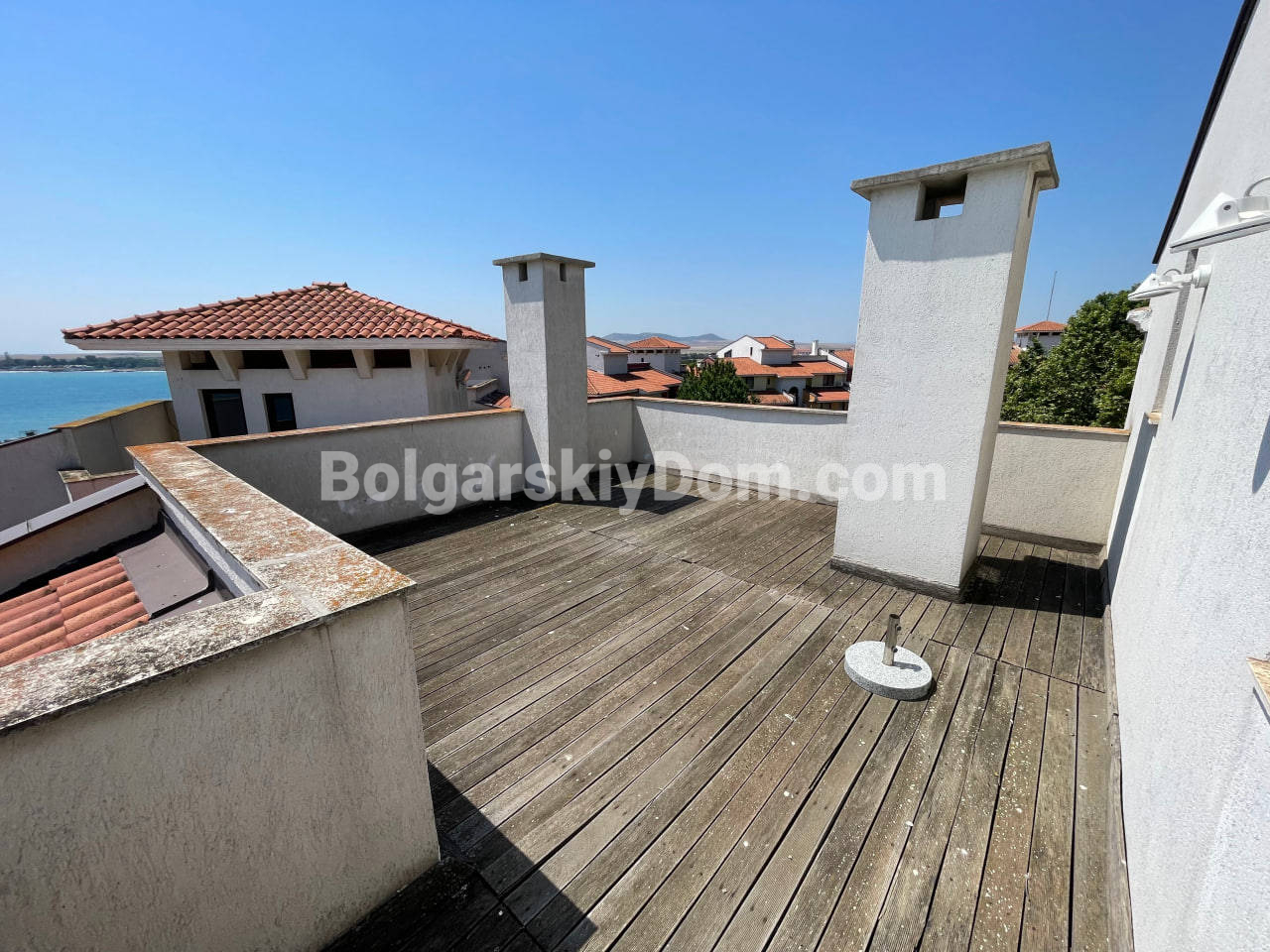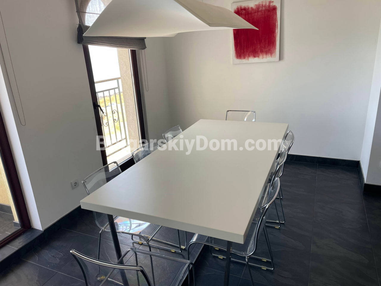 Премиум-новинка от Болгарского Дома! Перед вами исключительный, трехэтажный мезонет в закрытом комплексе Марина Кейп - это уникальная недвижимость площадью 260 кв.м., расположенная на первой линии моря в городе Ахелой! Мезонет создан для большой семьи, которая выбирает простор, приватность и панорамный вид на Черное море. Апартаменты занимают 3, 4 и 5 жилые этажи здания (доступен лифт) и продаются с имеющейся мебелью и техникой, полностью готовые как для незабываемого летнего отдыха, так и для комфортного круглогодичного проживания. Жизнь здесь распределена по трем уровням: на первом этаже расположена кухня со столовой, детская спальня, ванная комната с туалетом, кладовая и терраса. На втором этаже вас ждет просторная гостиная, туалет, а также главная спальня с собственной ванной комнатой и туалетом, и лоджия. Третий, самый впечатляющий уровень - это помещение, которое можно использовать как еще одну спальню или кабинет, с выходом на панорамную террасу на крыше, идеальную для солнечных ванн и зоны барбекю.