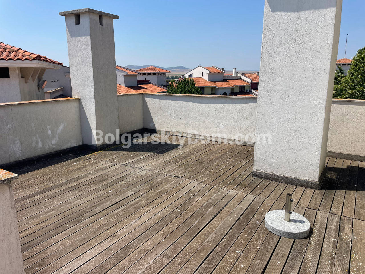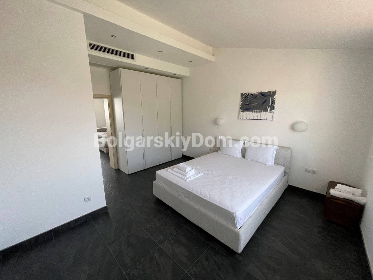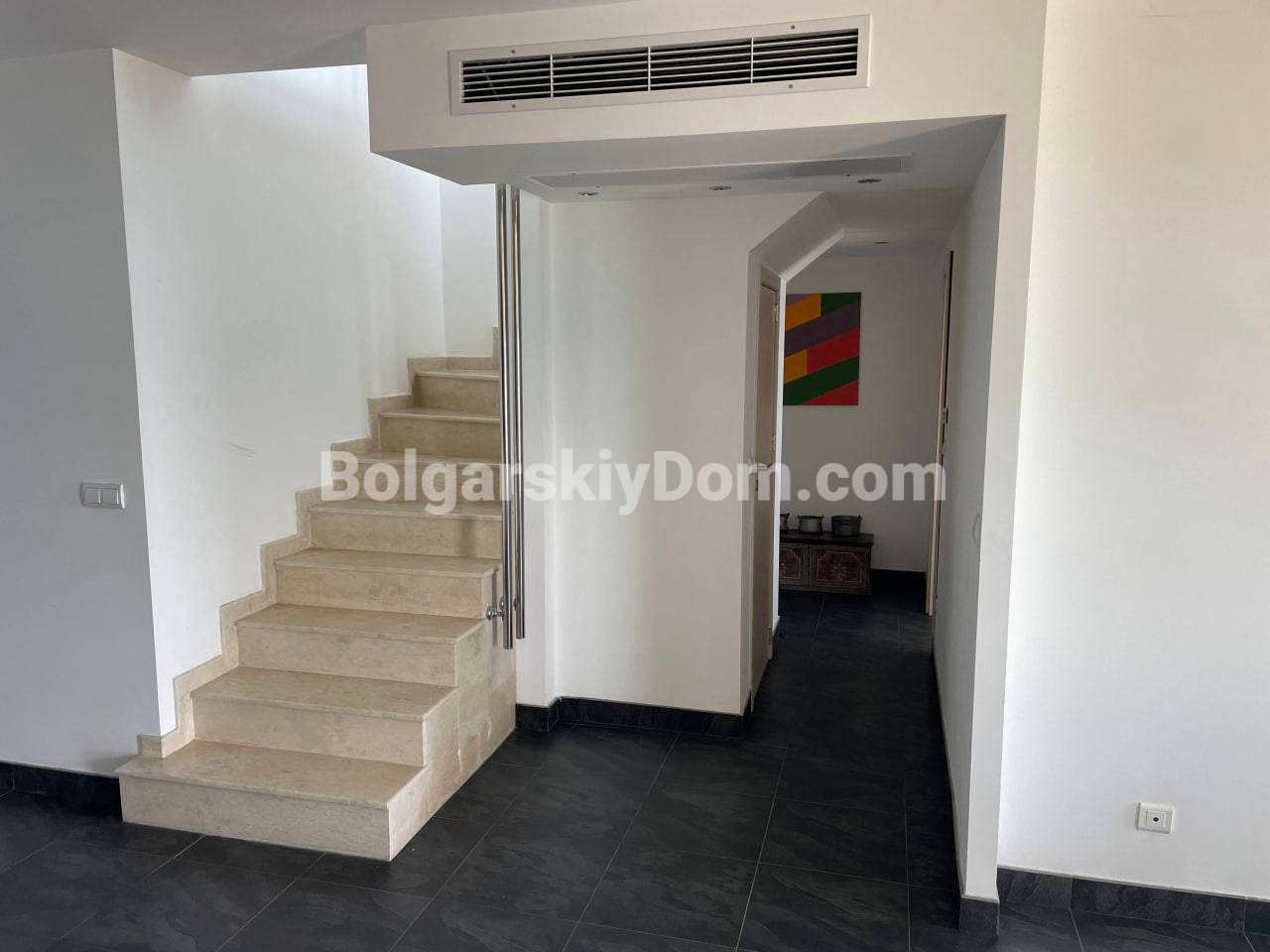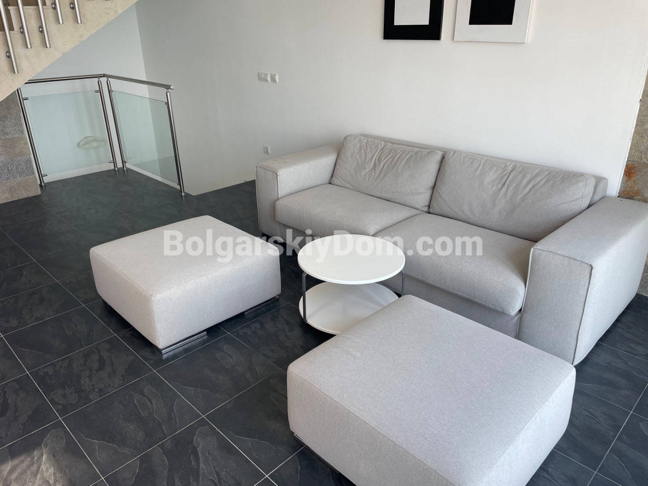 Премиум-новинка от Болгарского Дома! Перед вами исключительный, трехэтажный мезонет в закрытом комплексе Марина Кейп - это уникальная недвижимость площадью 260 кв.м., расположенная на первой линии моря в городе Ахелой! Мезонет создан для большой семьи, которая выбирает простор, приватность и панорамный вид на Черное море. Апартаменты занимают 3, 4 и 5 жилые этажи здания (доступен лифт) и продаются с имеющейся мебелью и техникой, полностью готовые как для незабываемого летнего отдыха, так и для комфортного круглогодичного проживания. Жизнь здесь распределена по трем уровням: на первом этаже расположена кухня со столовой, детская спальня, ванная комната с туалетом, кладовая и терраса. На втором этаже вас ждет просторная гостиная, туалет, а также главная спальня с собственной ванной комнатой и туалетом, и лоджия. Третий, самый впечатляющий уровень - это помещение, которое можно использовать как еще одну спальню или кабинет, с выходом на панорамную террасу на крыше, идеальную для солнечных ванн и зоны барбекю.