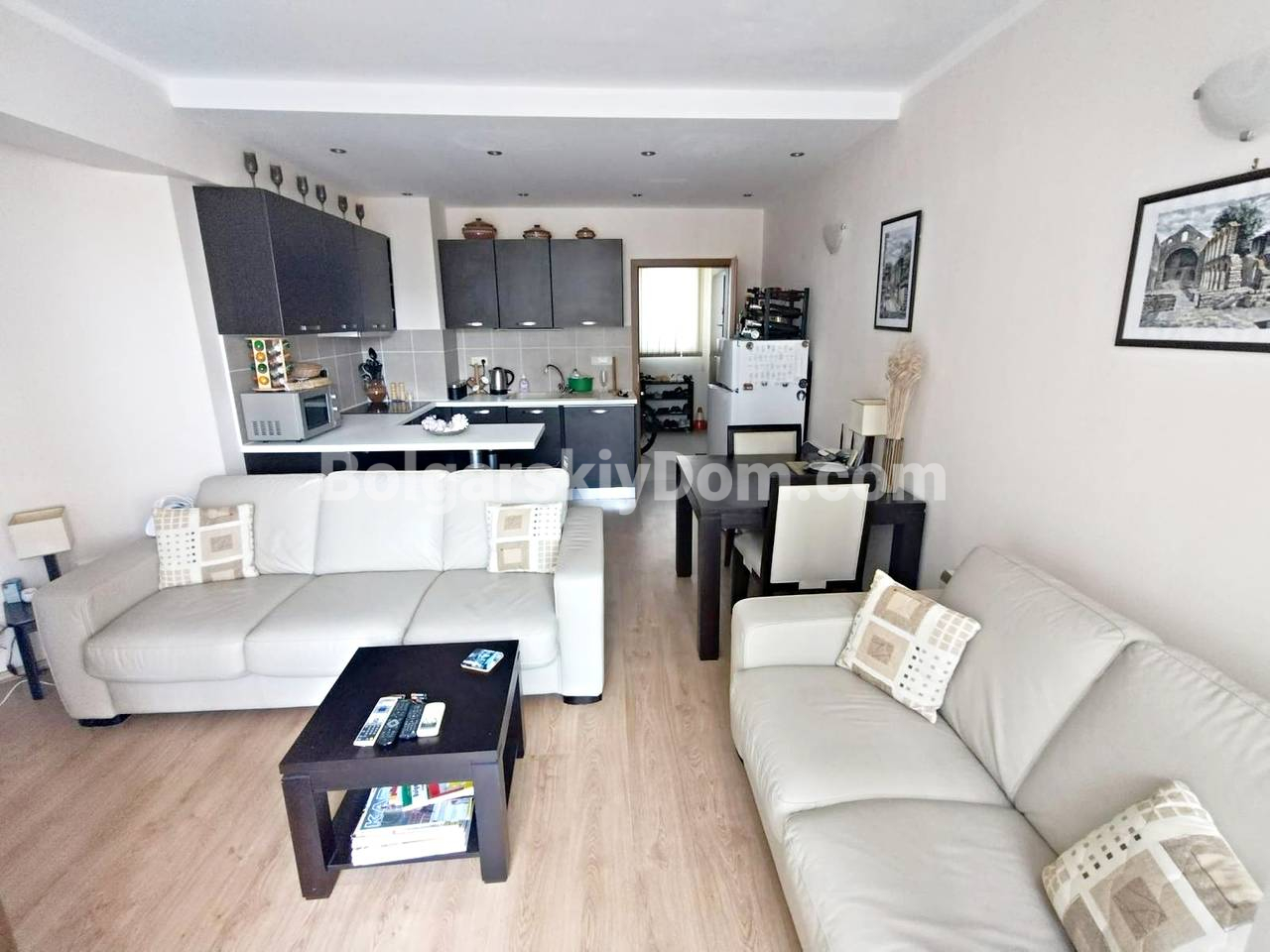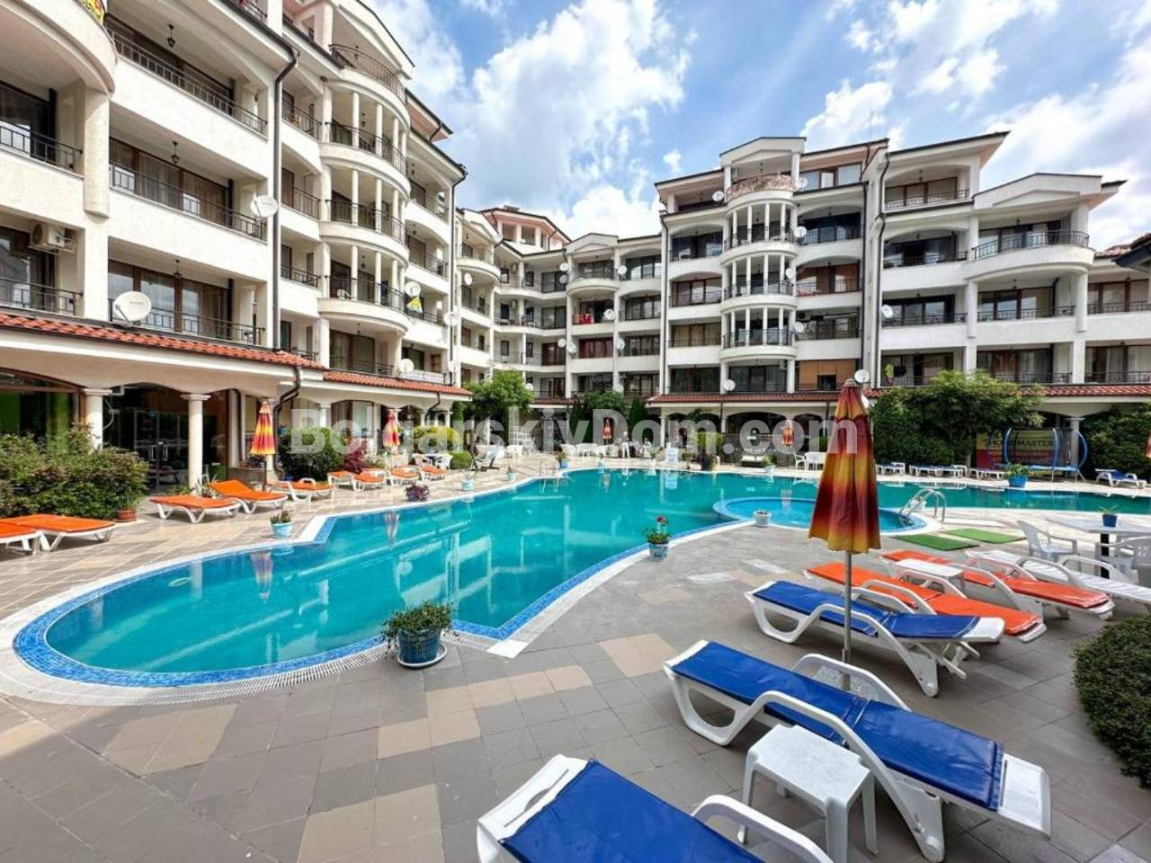 Ищете просторную квартиру с полной готовностью к заселению в центре курорта? Мы пополнили каталог отличным предложением, и это трехкомнатный апартамент общей площадью 100 кв.м. в комплексе Шато Валон на Солнечном Берегу. Квартира расположена на 3-м этаже, имеет выгодное юго-западное расположение и продается полностью меблированной, что позволяет вам сразу начать жить или сдавать ее в аренду. Планировка жилья включает просторную гостиную с кухней, две большие спальни, две террасы и две ванные комнаты, что особенно удобно для семьи. Дополнительное преимущество: на всех окнах установлены комарники (москитные сетки).
