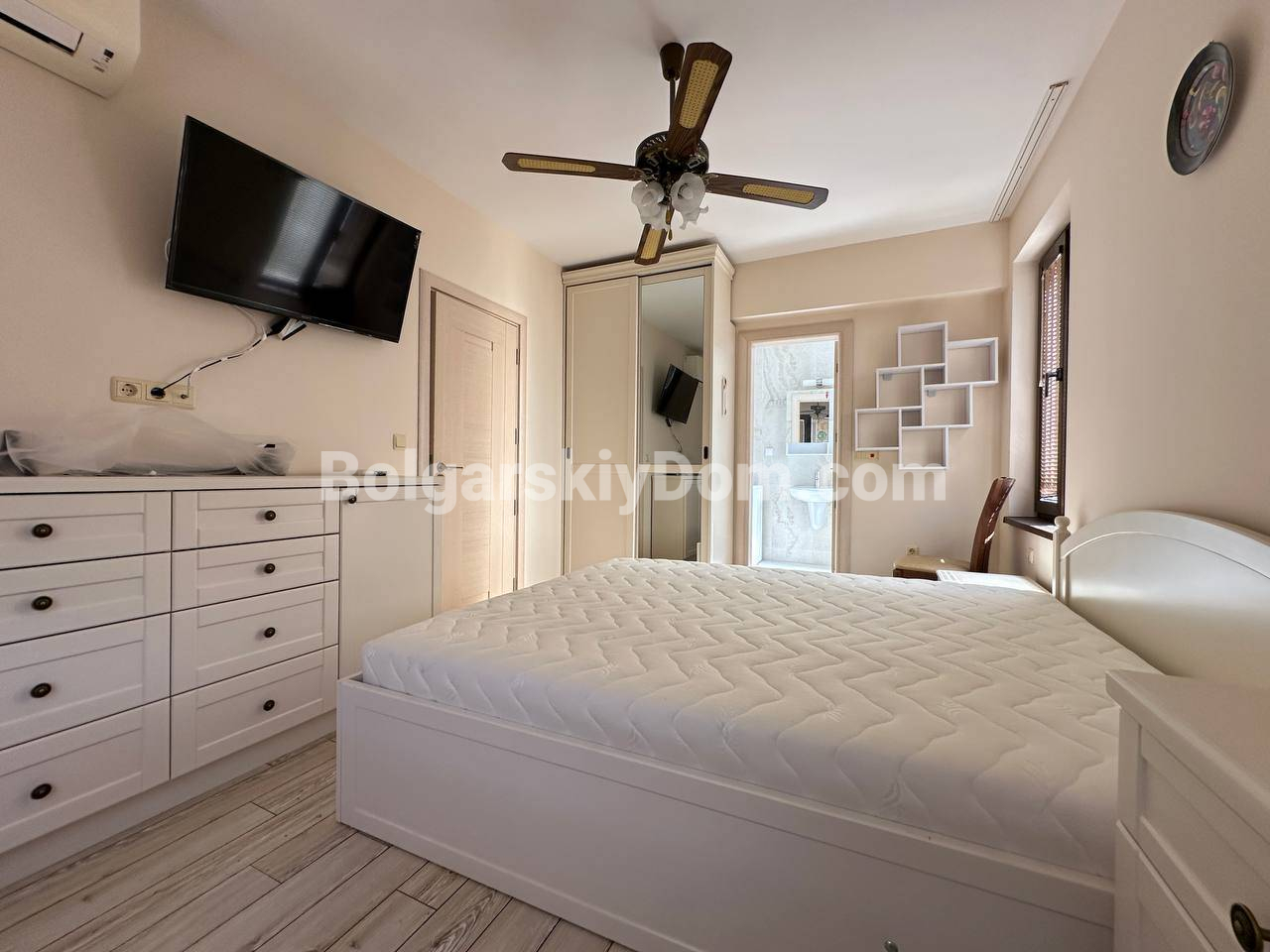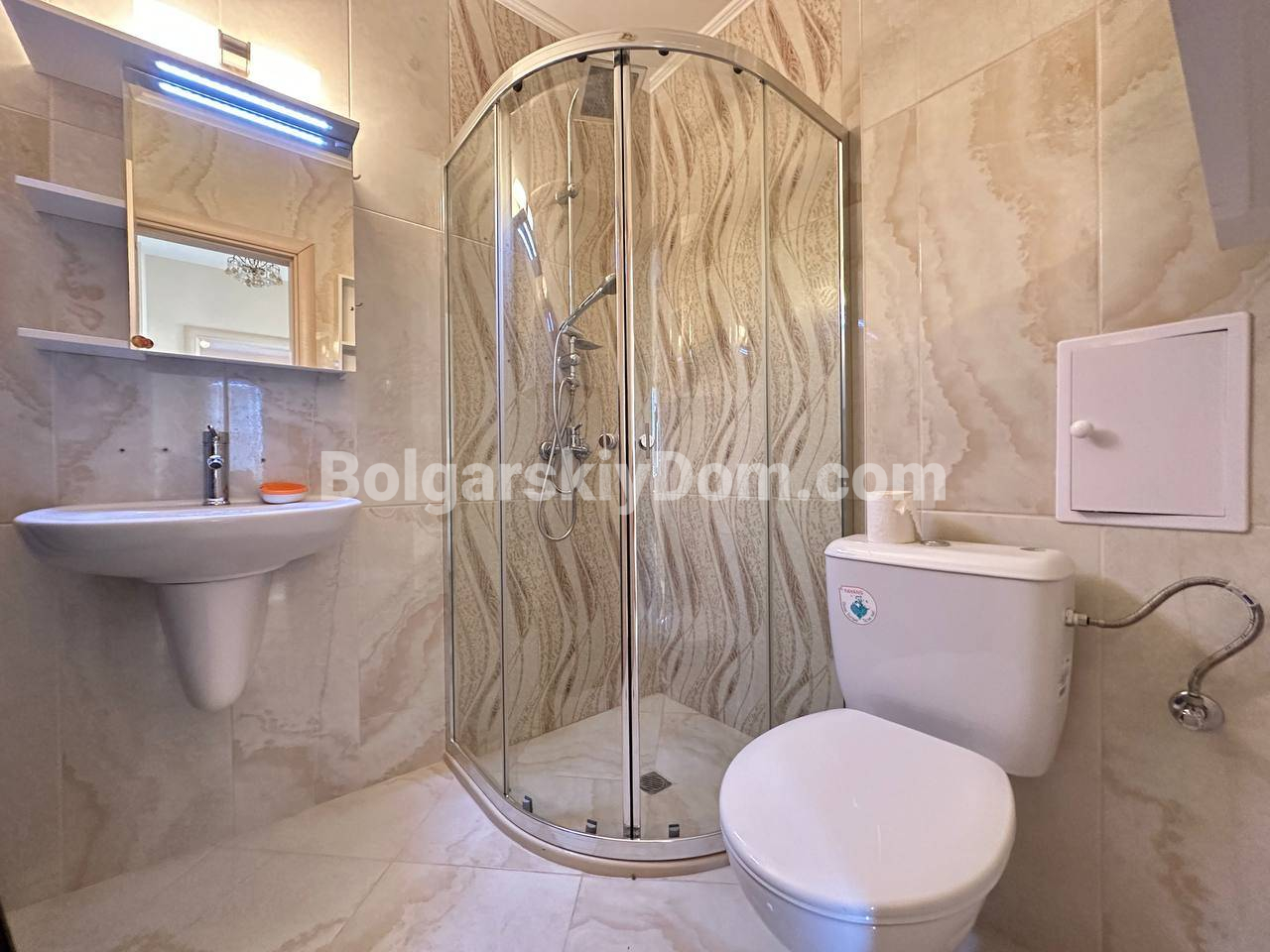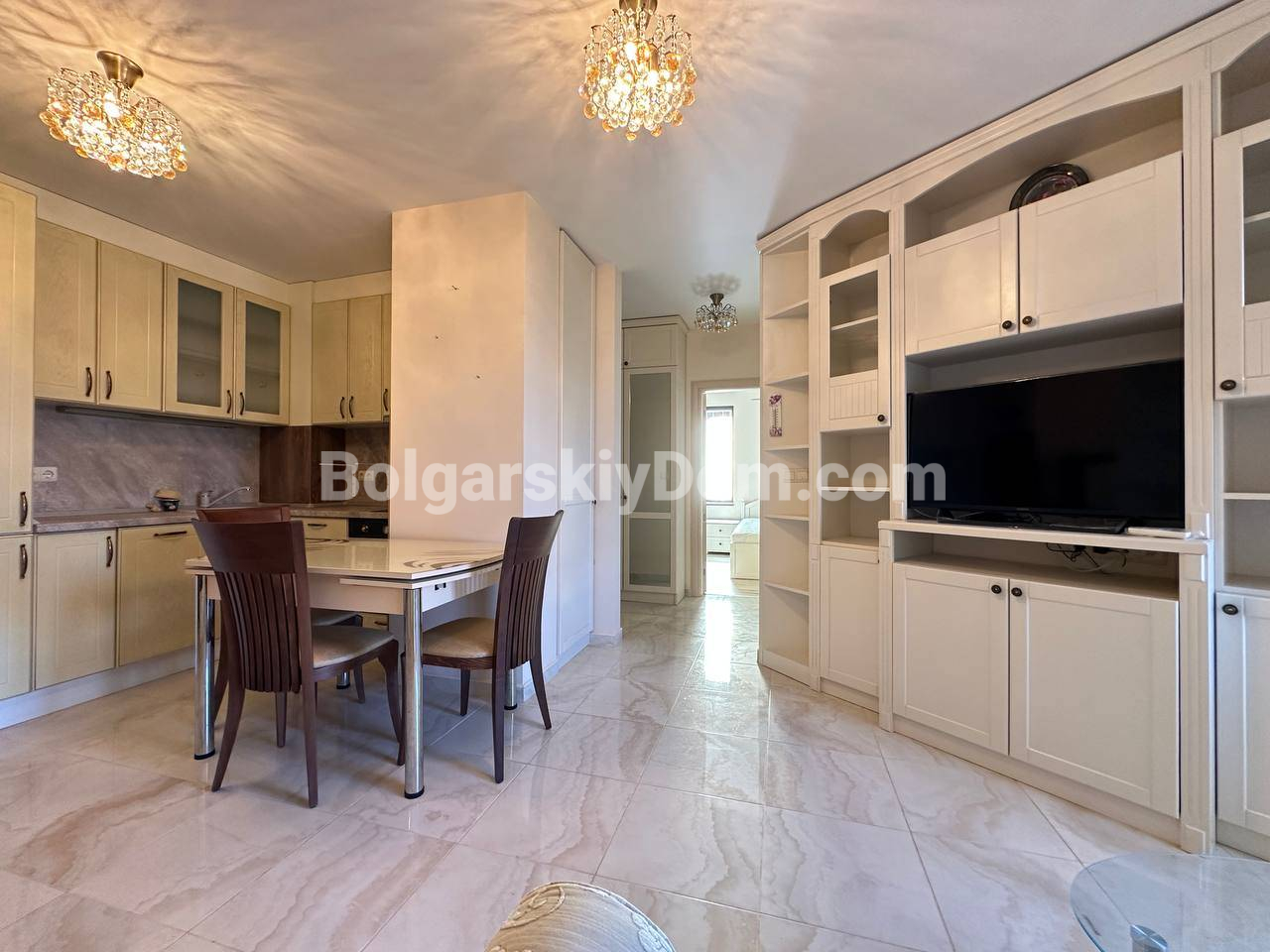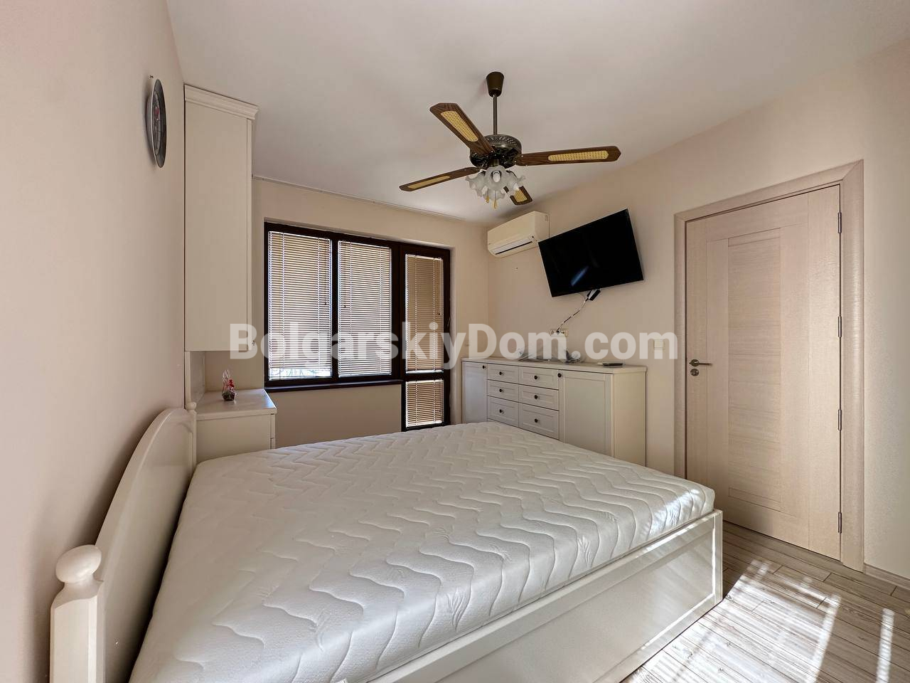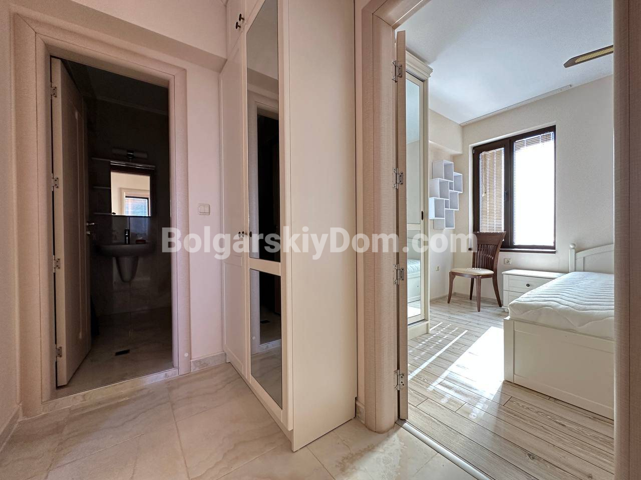 Абсолютно новая трехкомнатная квартира в премиум-комплексе в Святом Власе готова принять новых владельцев. Если вы ищете не просто апартамент для летнего отдыха, а место, где хочется жить с комфортом — это оно. Площадь — 86 кв.метров, третий этаж. Две спальни, два санузла (в одном — душевая кабина, во втором — ванна и окошко), два балкона с боковым, но очень красивым видом на море. Полностью укомплектована техникой: холодильник, посудомоечная и стиральная машины, два кондиционера. Светлый, стильный интерьер. Также имеется большой встроенный нишевый шкаф — идеально для хранения вещей. В апартаменте никто не жил, в аренде не была. В стоимость входит огромное парковочное место в подземном гараже. Лифт до уровня паркинга — максимум удобства.