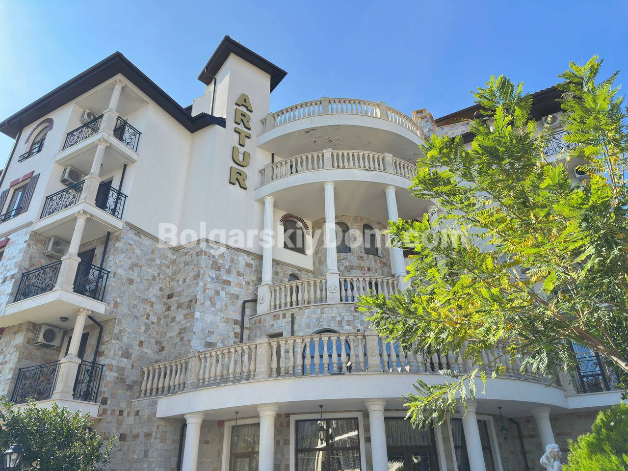Артур - один из самых элегантных жилых комплексов Святого Власа. Архитектура в европейском стиле с элементами неоклассики, ухоженные аллеи, фонтаны, арки, изящные декоративные мостики и статуи в греческом стиле. Территория закрыта и охраняется, создавая атмосферу приватности и уюта. В распоряжении жильцов: два бассейна с зонами отдыха, джакузи под открытым небом SPA-центр, фитнес-зал, ресторан, кафе, детская площадка, зимний сад и библиотека. Район — развитый, но спокойный: рядом магазины, рестораны, аптека, автобусная остановка и пляж в пешей доступности - до него всего 250 метров. Звоните — мы покажем, и вы влюбитесь!