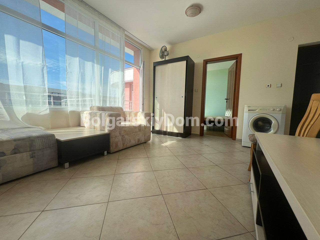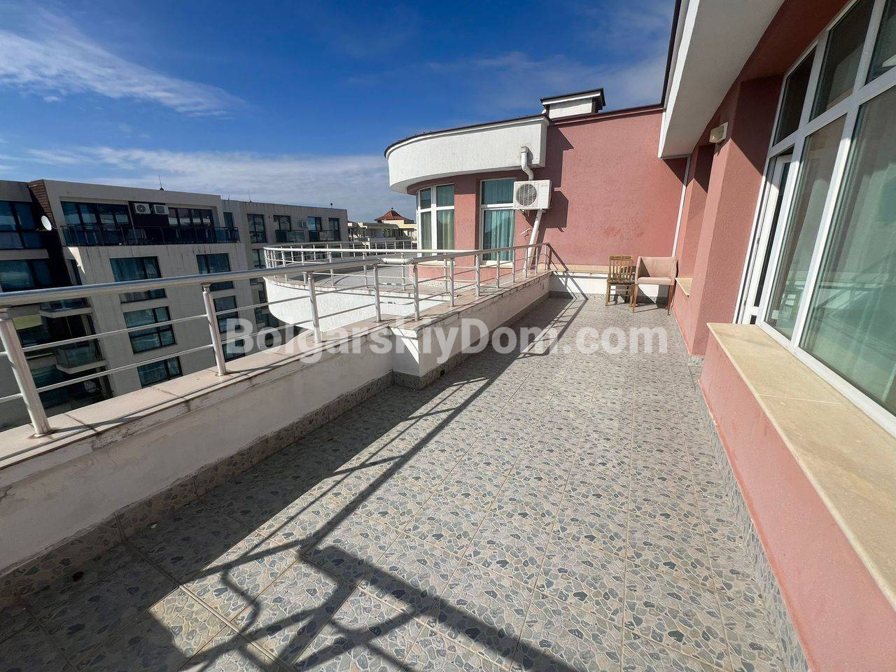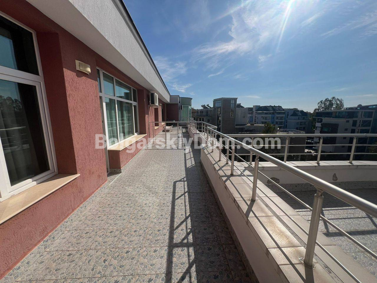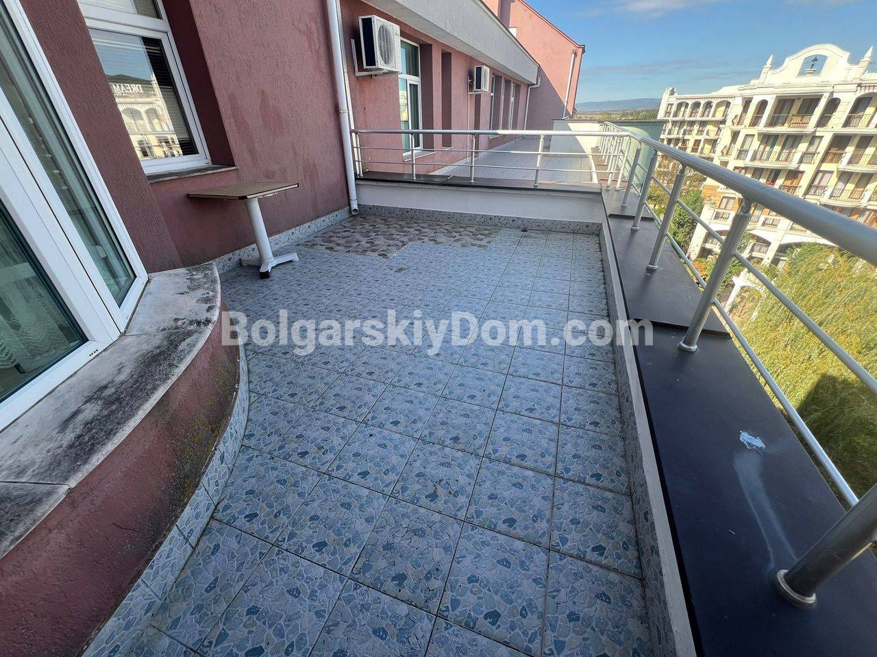 Комплекс Пироп Сити находится в тихом центре Солнечного Берега, всего в 350-500 метрах от пляжа. Это шестиэтажное здание с лифтом, расположенное в районе с развитой инфраструктурой, рядом с парком и благоустроенными зонами отдыха. На территории к услугам жильцов: открытый бассейн с детской зоной, детская площадка, закрытая охраняемая территория и парковка. Супермаркет Lidl находится всего в 5 минутах пешком. Годовая такса обслуживания составляет 12 евро за кв.м., что является выгодным условием для такого центрального расположения.