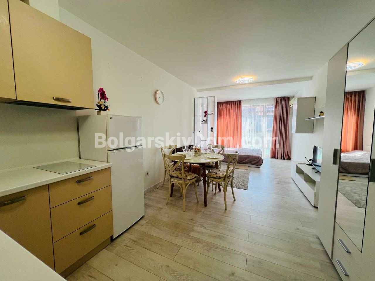 Пополнение каталога АН Болгарский Дом! Идеальная студия в Святом Власе — после ремонта и с видом на бассейн! Предлагается просторная студия площадью 54 кв.м. в жилом комплексе Морски Фар . Апартамент расположен на 5 этаже и находится в одной из самых престижных локаций курорта - между знаменитой Юртой и Диневи в Святом Власе. Это идеальный вариант для немедленного заселения: студия продается после ремонта и оснащена новой современной мебелью. С балкона открывается приятный вид на бассейн. До моря всего 200 метров!
