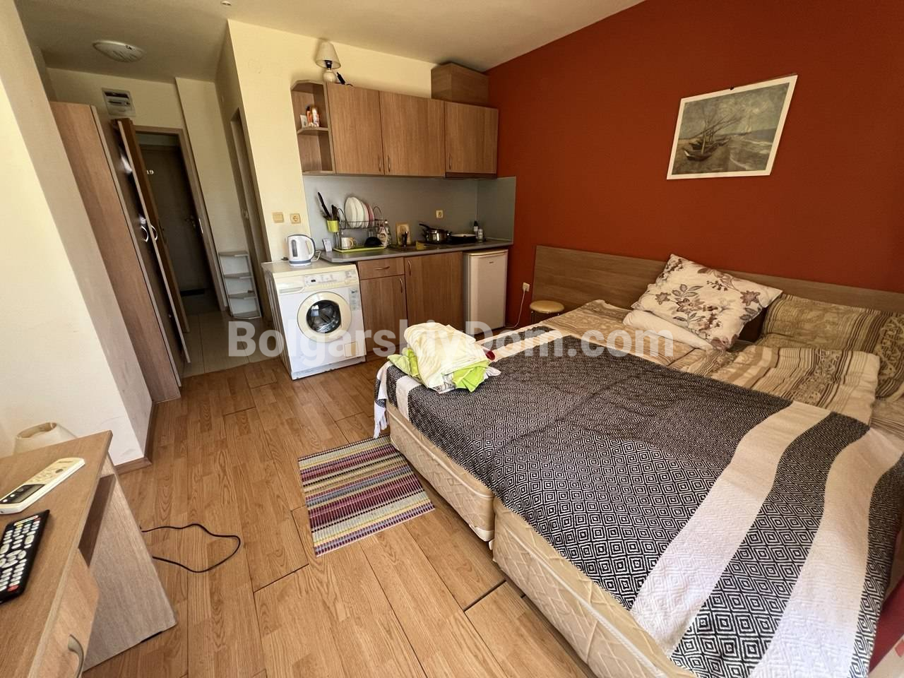 Срочное предложение от АН Болгарский Дом! Уютная студия с полной меблировкой в самом зеленом районе! Предлагается компактная и комфортная студия площадью 30 кв.м. в комплексе Афродита 1. Главное преимущество этого объекта - полное меблирование и домашняя атмосфера. Жилая площадь объединяет спальню с большим двуспальным местом, кухонный уголок и небольшую обеденную часть. Кухня оборудована всей необходимой техникой, включая стиральную машину. Интерьер в теплых оттенках выглядит очень уютно и светло, несмотря на стандартность решения. Готовы к показам, звоните!