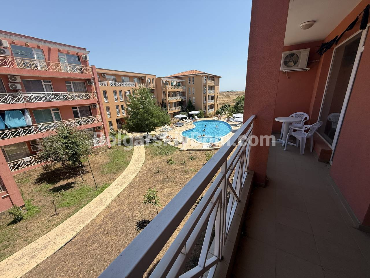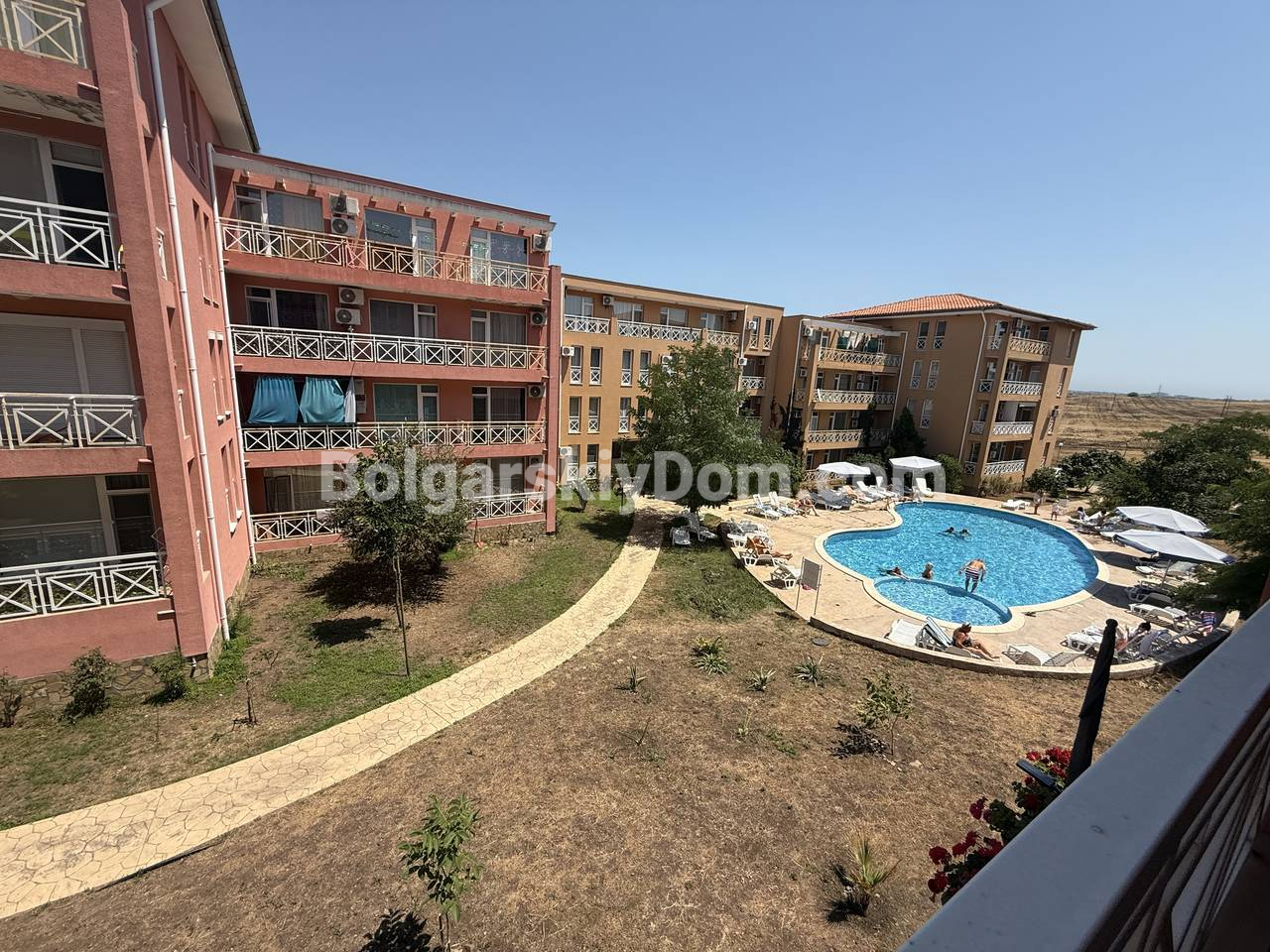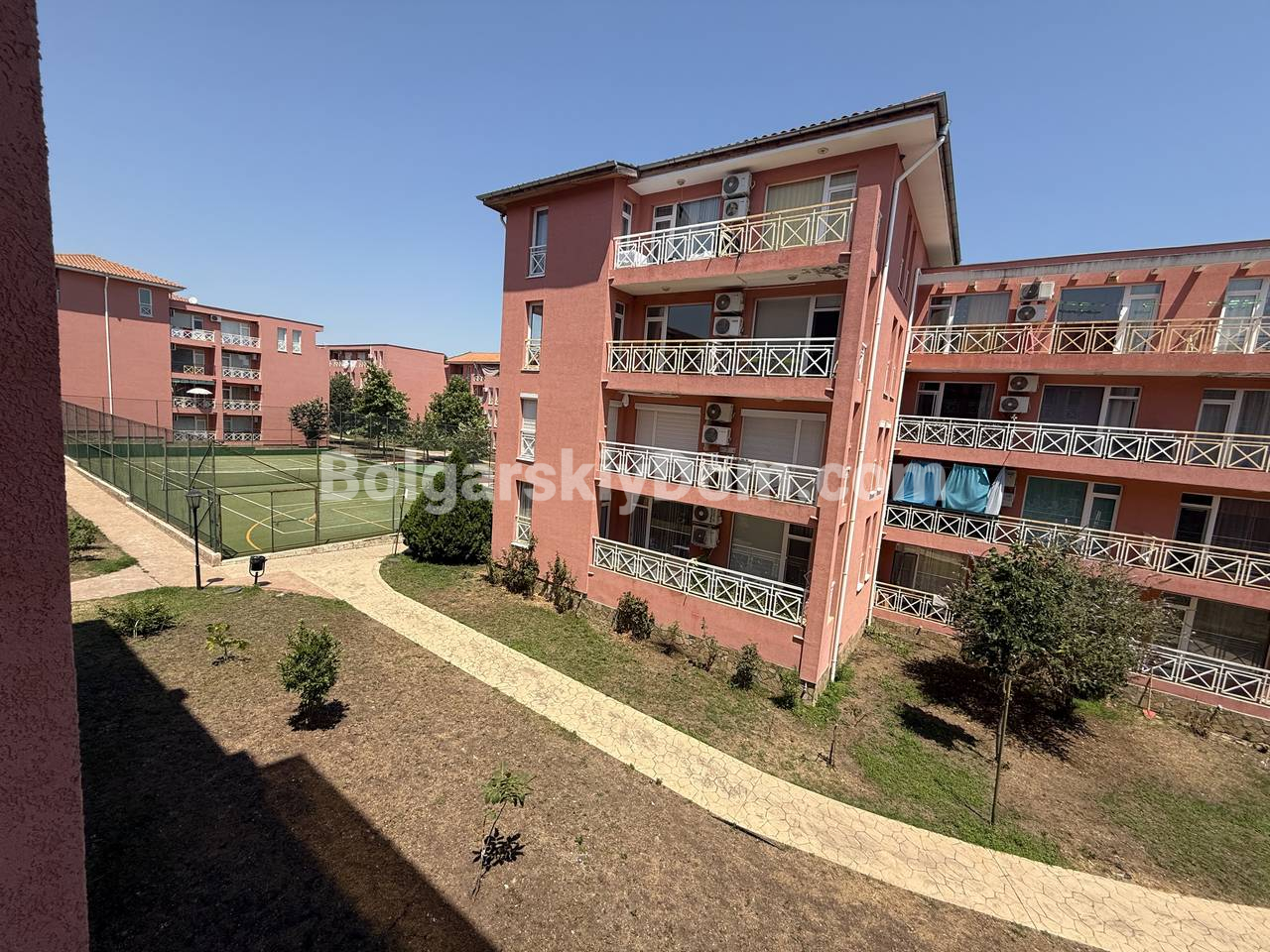 Территория комплекса Санни Дей 6 — словно маленький оазис: несколько бассейнов для взрослых и детей, бар и ресторан, теннисный корт, детская площадка, магазин и ухоженные аллеи в зелени и цветах. Комплекс находится под круглогодичным управлением и охраной, с видеонаблюдением, уборкой и техническим обслуживанием. Здесь безопасно, красиво и спокойно. До центра курорта - всего 4 км, до прекрасного Черного моря - около 5 км.