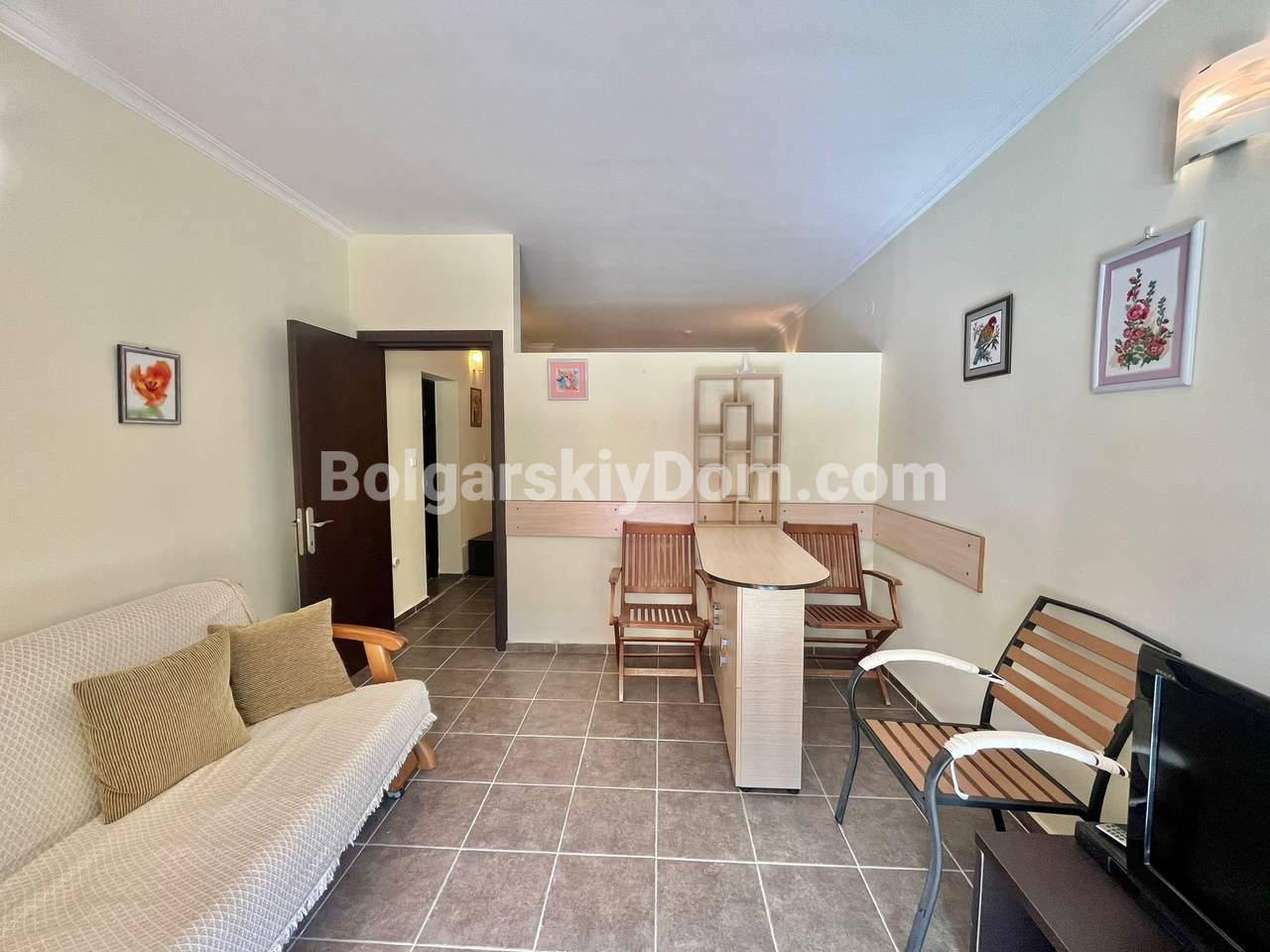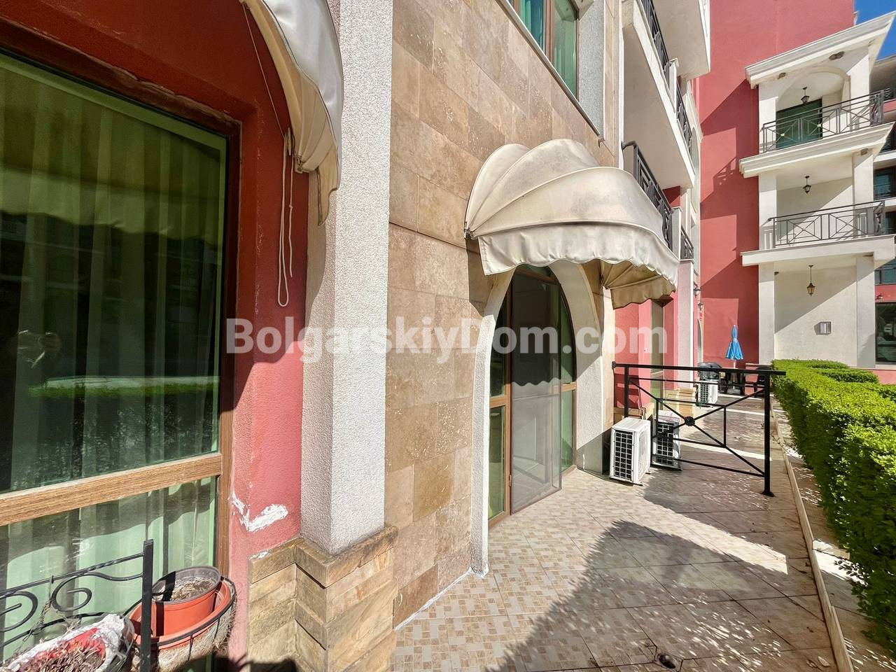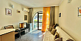 Представляем вашему вниманию нестандартную и просторную студию-двушку с капитальным зонированием в комплексе Сент Георг Плаза - отличное предложение по хорошей стоимости в Святом Власе. Этот апартамент квадратурой 55 кв.м. расположен в активно развивающейся части курорта и по функционалу приравнивается к полноценной двухкомнатной квартире, поскольку спальная зона отделена капитальной стеной. Планировка включает солнечную гостиную, отдельную спальню, ванную комнату с туалетом, прачечную и очаровательное арочное окно, добавляющее интерьеру особого шарма. В квартире отсутствует кухонный блок, при этом она полностью меблирована и готова к заселению.