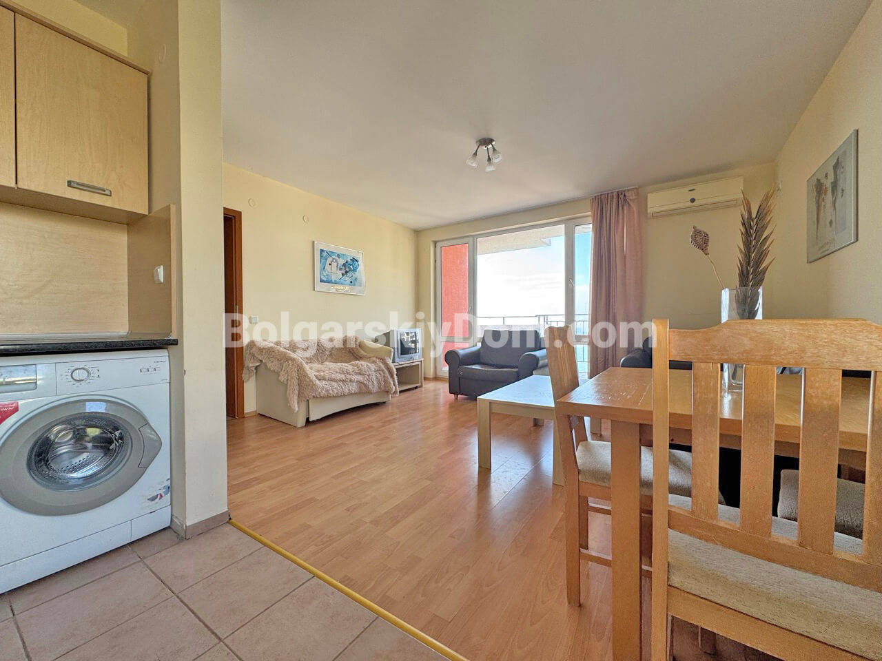 В поисках стоящей недвижимости? Обратите внимание на просторную двухкомнатную квартиру с невероятным панорамным видом на море всего в 50 метрах от пляжа! Этот ликвидный апартамент находится в жилом комплексе Марина Вью Форт Бич, расположенном на первой линии между престижным Святым Власом и курортом Елените. Квартира площадью 74 кв.м. находится на третьем этаже и продается полностью меблированной, а также оснащенной всей бытовой техникой. Планировка квартиры включает прихожую, просторную гостиную, совмещенную с кухней и столовой зоной, уютную спальню, ванную комнату с туалетом и большую террасу. С террасы открывается захватывающий вид на морскую гладь, который станет вашим ежедневным вдохновением. Комплекс введен в эксплуатацию (Акт 16) и имеет низкие коммунальные тарифы.