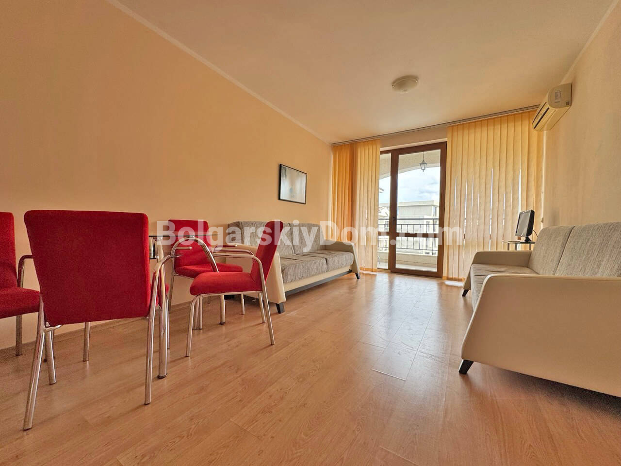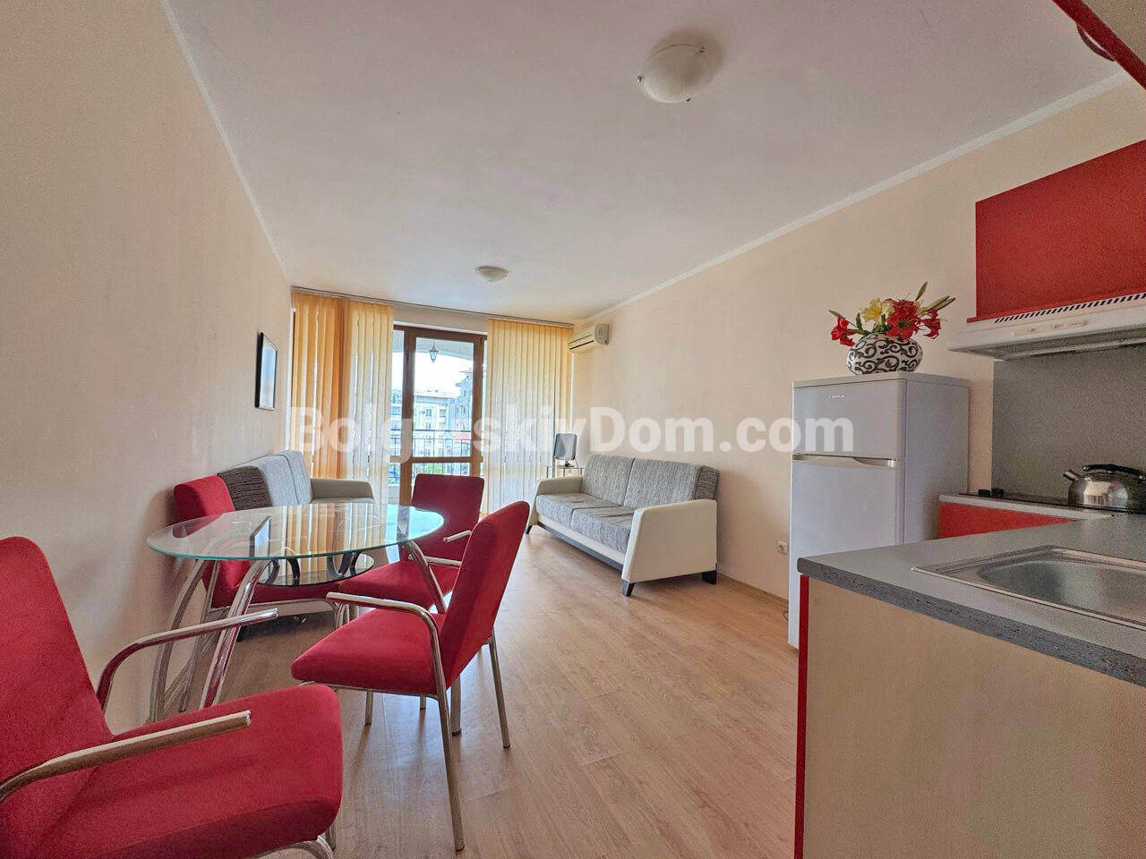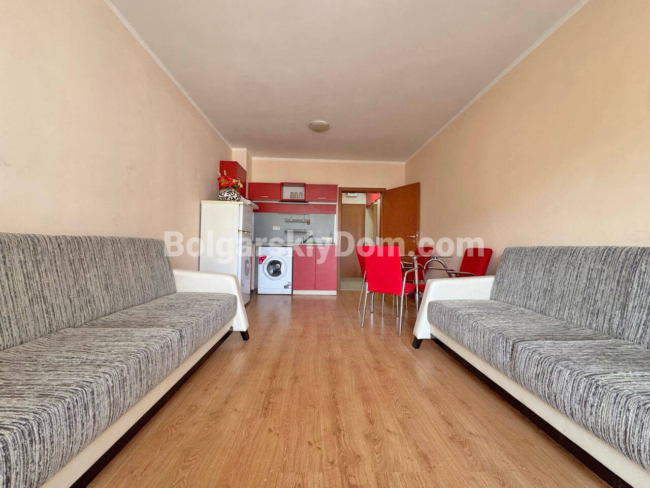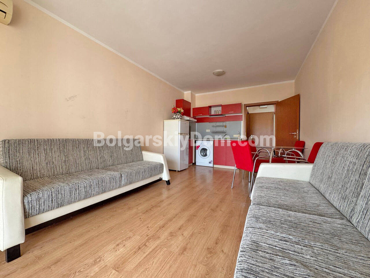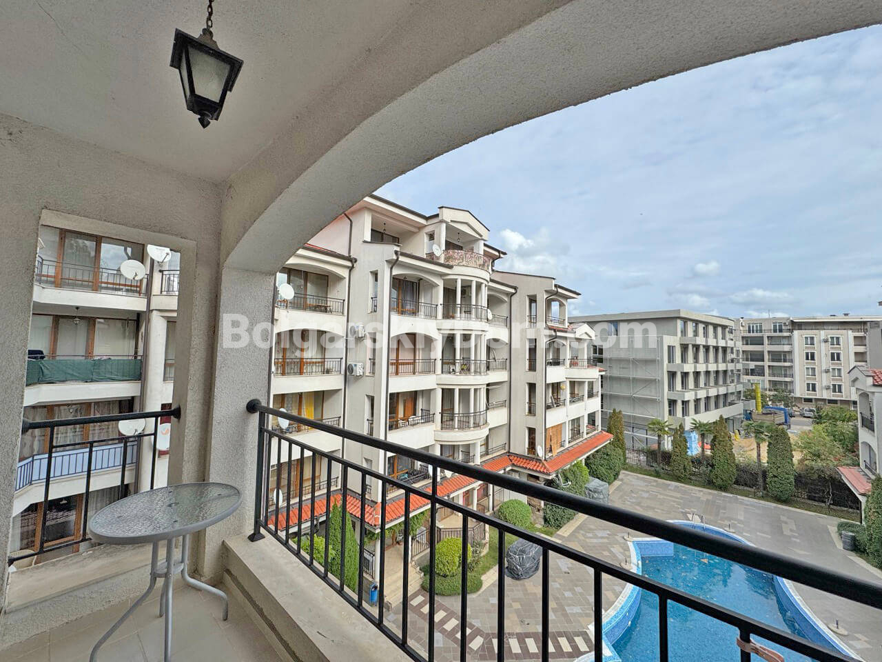 Новинка в хорошем бюджете! В нашем каталоге - просторная студия площадью 43 кв.м. с прекрасным видом на бассейн в современном комплексе Шато Валон на Солнечном Берегу. Этот апартамент находится на третьем этаже, полностью меблирован и пребывает в отличном состоянии - можно сразу заезжать или сдавать в аренду. Планировка включает прихожую, большую комнату с выделенной кухонной зоной, ванную комнату и уютный балкон с видом на зеленую территорию. Это идеальный, ликвидный вариант для комфортного отдыха или выгодной инвестиции!