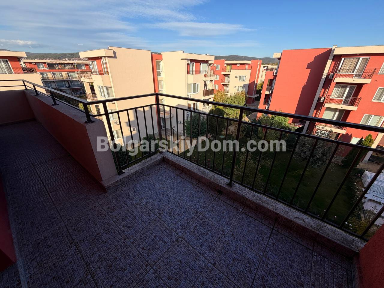 Отличное предложение для большой семьи! Представляем трехкомнатную квартиру площадью 66 кв.м. в огромном семейном комплексе Холидей Форт Клуб на Солнечном Берегу. Этот апартамент находится на 4 этаже, полностью меблирован и оснащен бытовой техникой, то есть готов к заселению прямо сейчас! Планировка включает гостиную с кухонной зоной, две отдельные спальни, ванную комнату и большой балкон с видом на зеленую территорию комплекса.