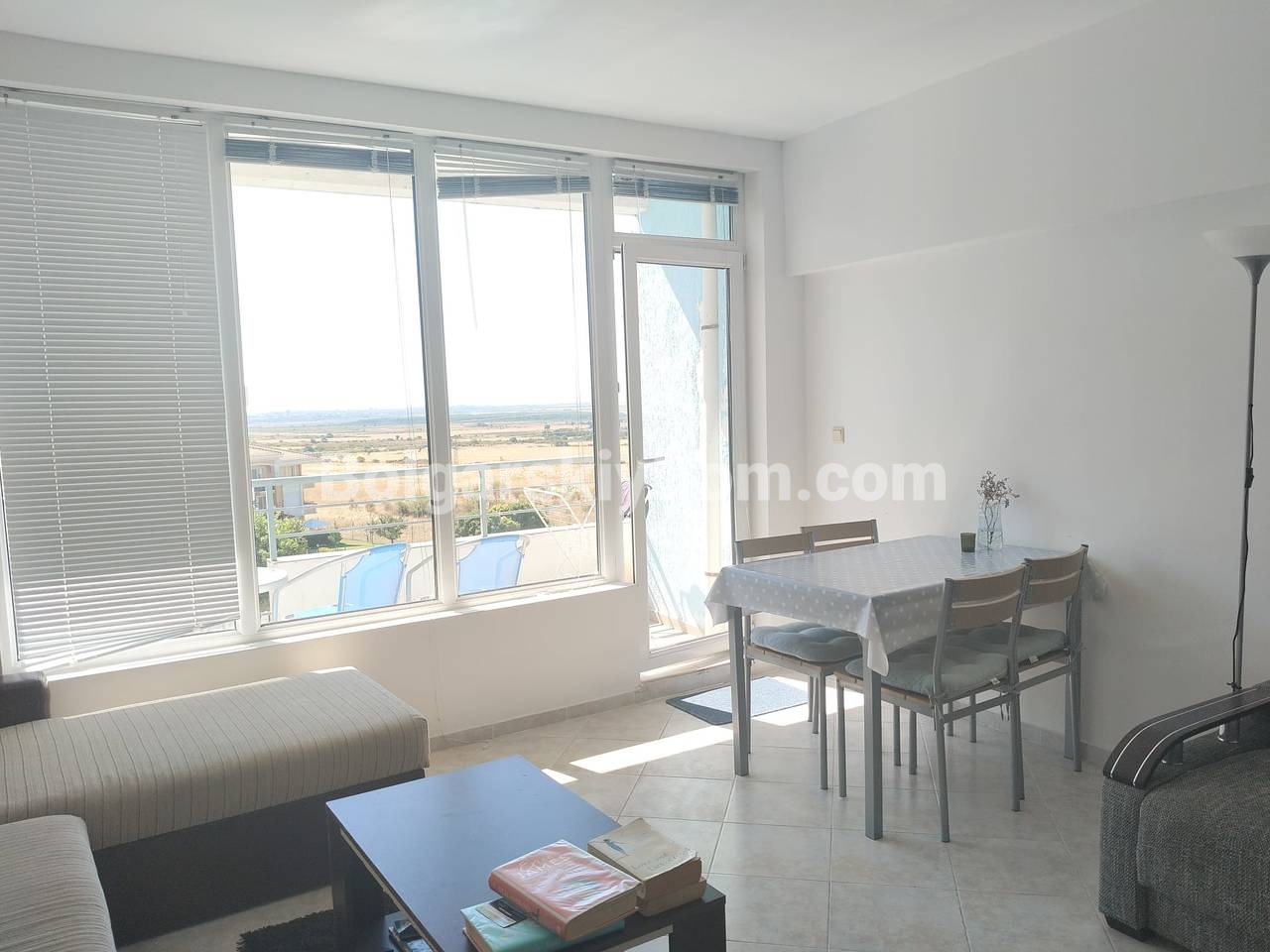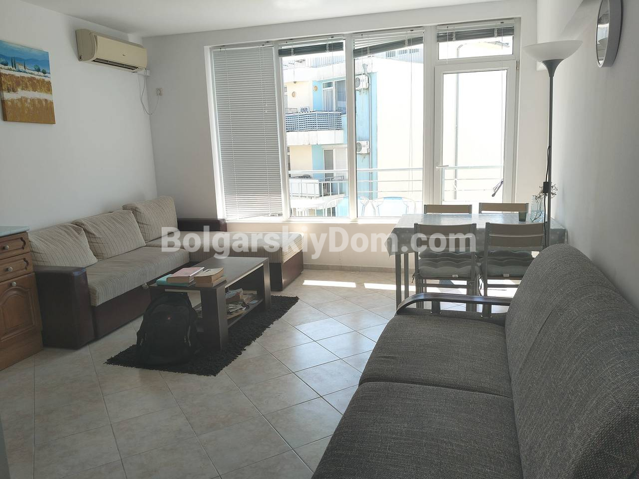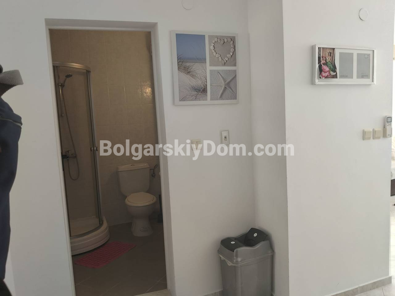 Комфорт и спокойствие каждый день воплотила в себе эта двухкомнатная квартира в комплексе у подножия Балканских гор. Апартамент площадью 66 кв. метров расположен на втором этаже современного здания с лифтом. Дом введён в эксплуатацию (есть АКТ 16) — можно заселяться сразу. Планировка предусматривает прихожую, светлую гостиную с кухней и обеденной зоной, уютную спальню, ванную комнату с душевой кабиной и две солнечные террасы. Квартира полностью меблирована и оборудована техникой. Она может прекрасно послужить для круглогодичного проживания, летнего отдыха либо в качестве инвестиции с гарантированным доходом от аренды.