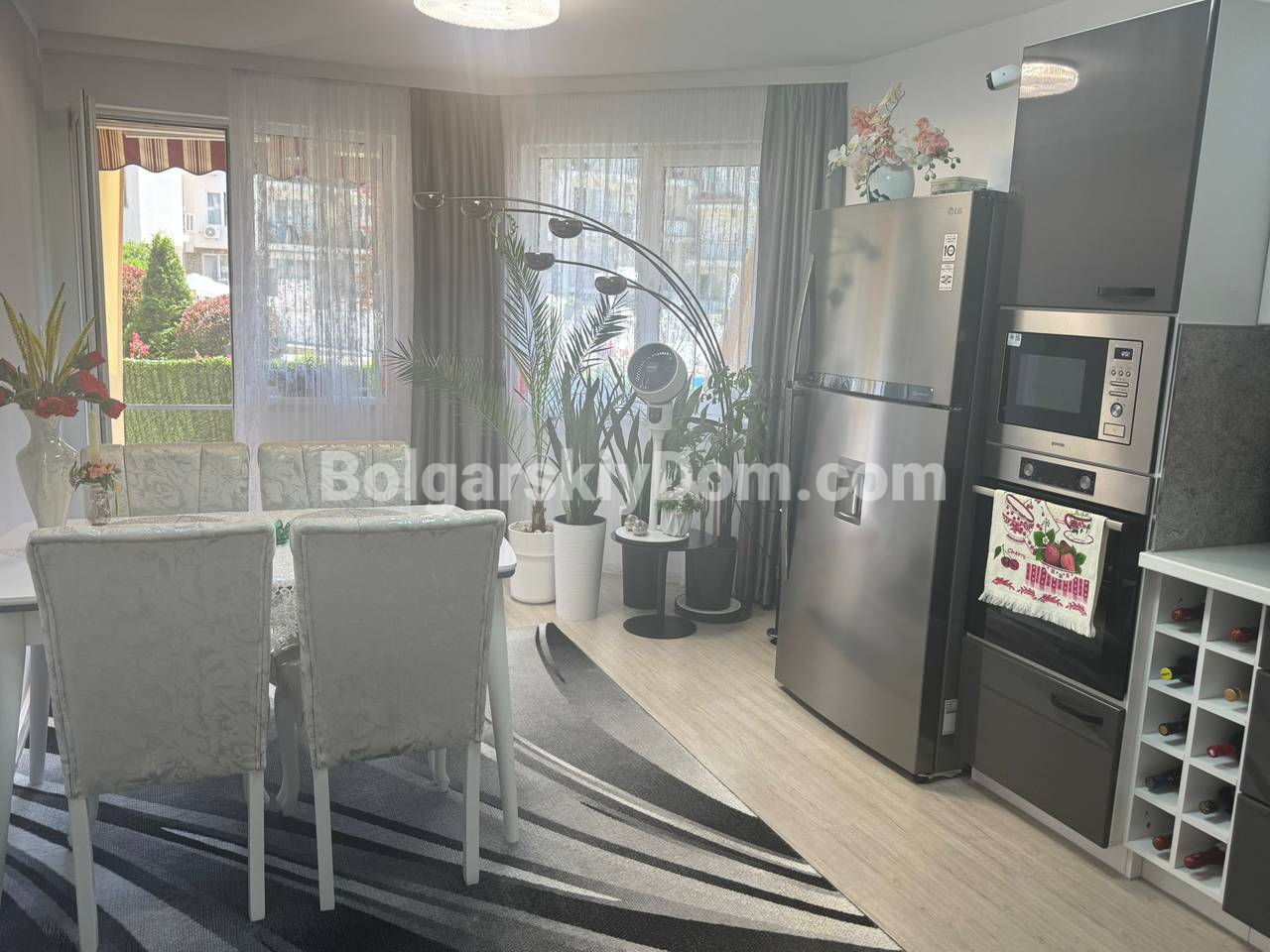 Отличное предложение в Святом Власе от Болгарского Дома! Представляем трехкомнатный апартамент площадью 77 кв. м. в отличном жилом состоянии в комплексе Долфин Бэй. Квартира расположена на первом этаже пятиэтажного здания и продается с чистовым ремонтом и стандартным набором мебели, то есть она сразу готова к заселению.