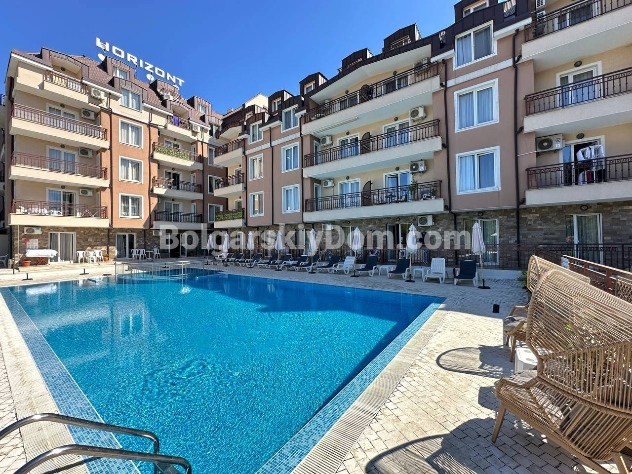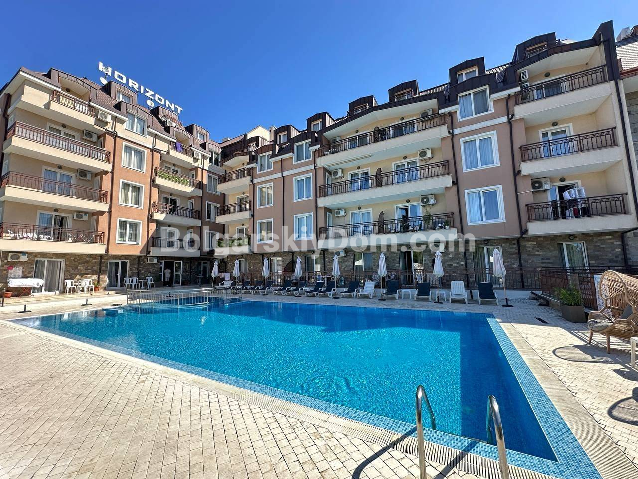 Комплекс Горизонт находится в зелёном и спокойном районе Зора, всего в 300 метрах от моря, где начинается красивейшая набережная. Рядом — супермаркет, кафе, пара полезных магазинчиков. В 2,5 километрах в одну сторону - центр города Святой Влас с его оживленной круглогодичной инфраструктурой. Приблизительно столько же в другую сторону - и вы в сердце Солнечного берега. Идеальное место как для сезонного отдыха, так и для комфортной жизни круглый год.