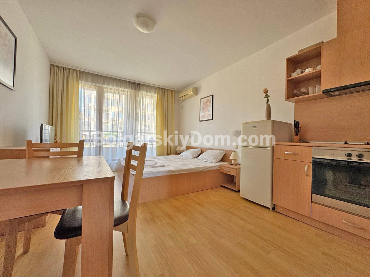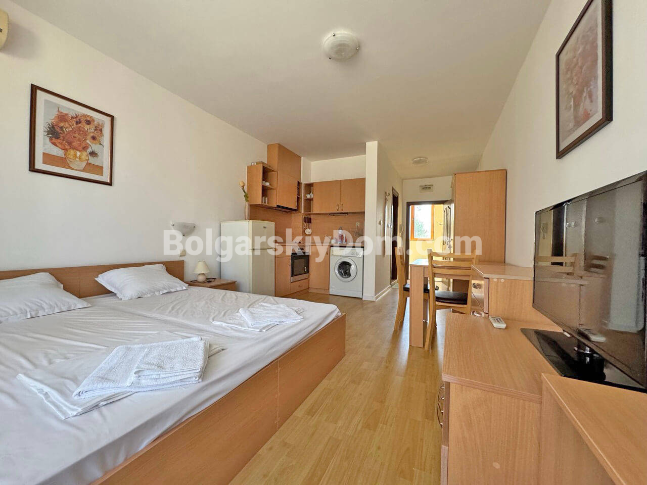 В Болгарском Доме новинка! В нашем каталоге - исключительная, большая студия площадью 48 кв.м. с видом на бассейн в комплексе Панорама Бей, Святой Влас. Светлый, уютный уголок, расположенный в топовой локации - прямо между районом Юрта и знаменитой яхт-мариной Диневи. Студия находится на 2-м этаже и полностью готова к немедленному заселению: она продуманно меблирована и укомплектована всей бытовой техникой. Вам не придется тратить время и силы на обустройство. Комплекс имеет Акт 16 и расположен рядом со всей постоянно работающей инфраструктурой (магазины, рестораны).
