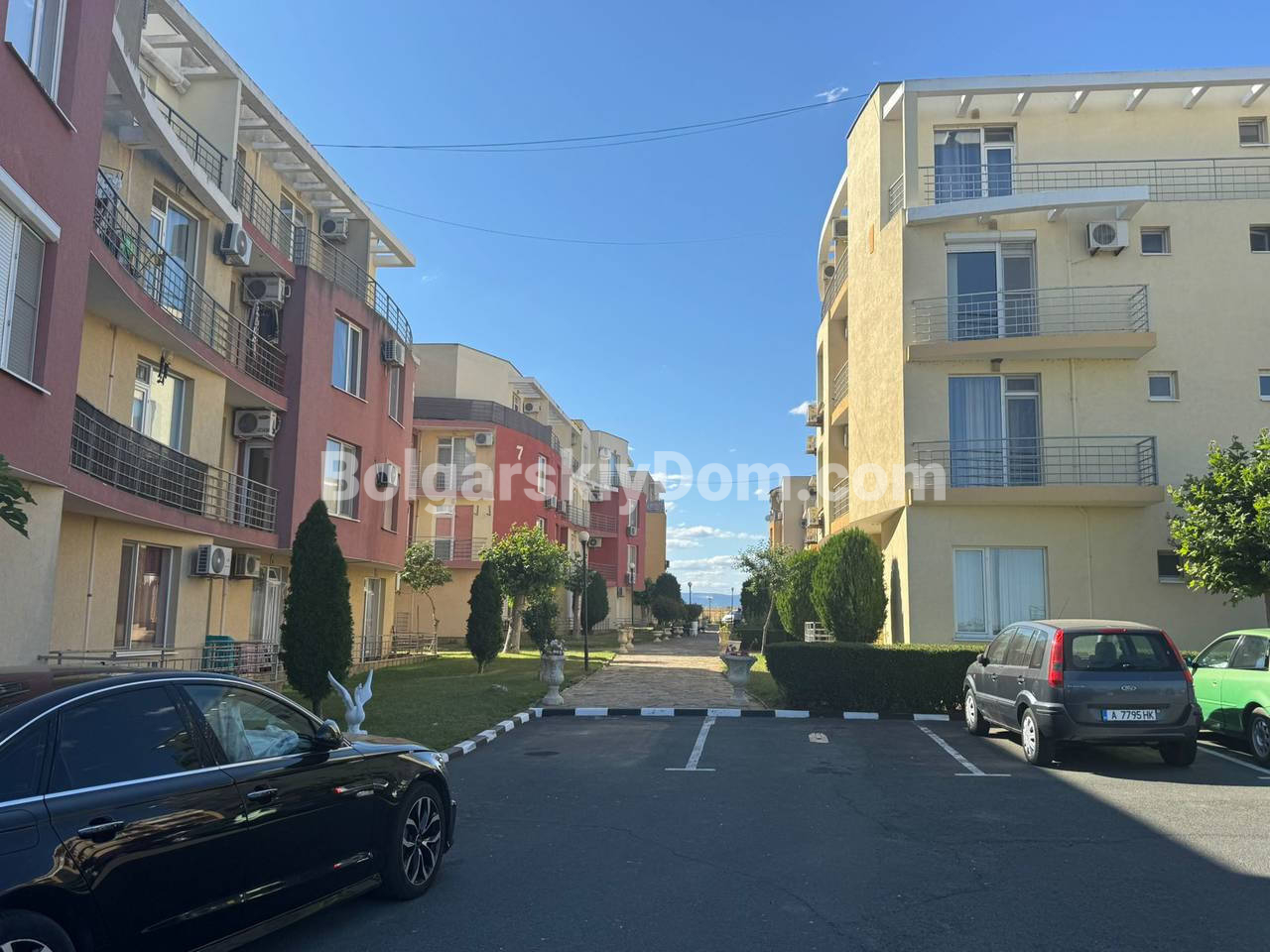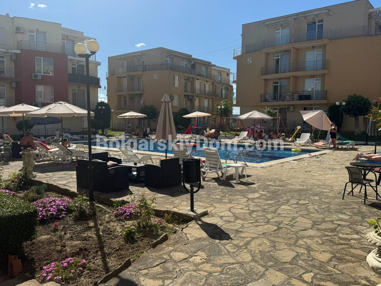 Санни Дей 5 расположен в пригороде Солнечного Берега, при этом до моря всего 4 километра. ЖК имеет контролируемый доступ, а его территория идеально обустроена для комфорта: большой бассейн с лежаками и зонтиками в центре, детская площадка, закрытая парковка для владельцев, а также ухоженные аллеи для прогулок. В 4 км от комплекса, на Солнечном Берегу, есть абсолютно вся инфраструктура: от супермаркетов и ресторанов до школ, клубов, казино и баз фруктов. Ежегодная такса составляет 580 евро. Это самый доступный путь к владению недвижимостью на побережье!