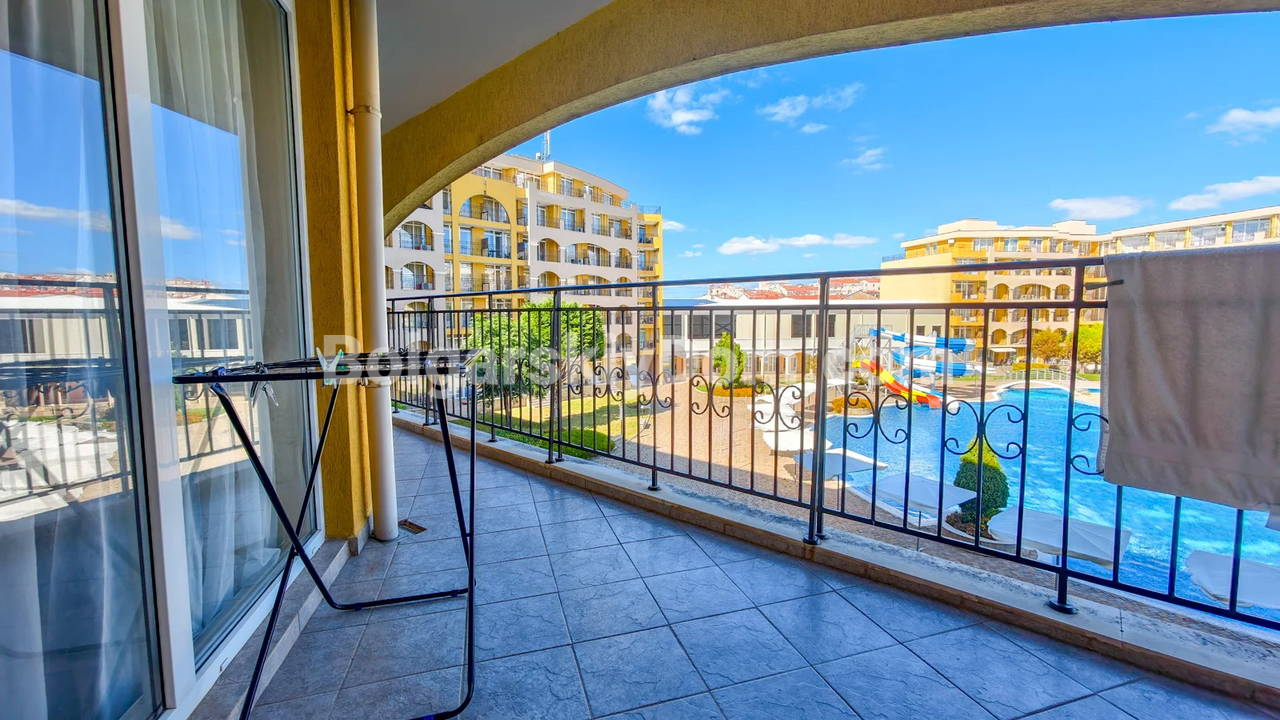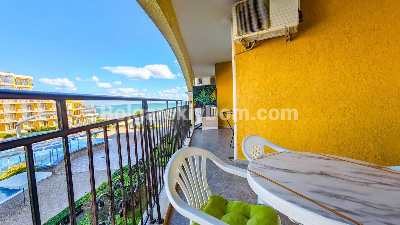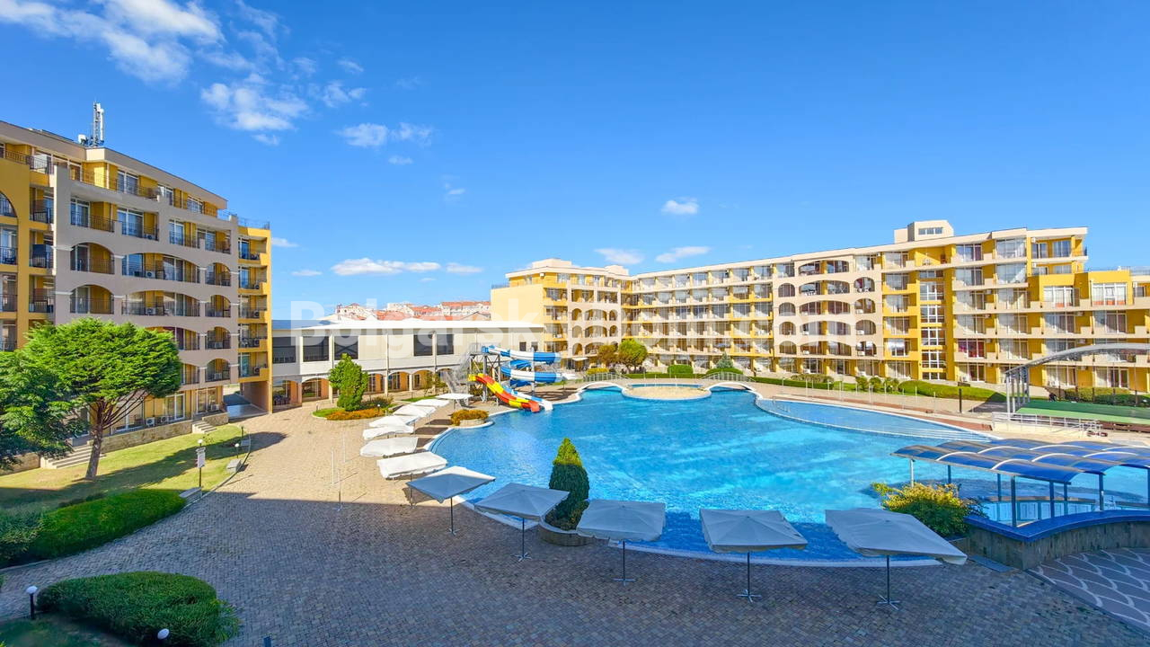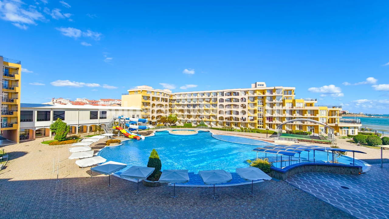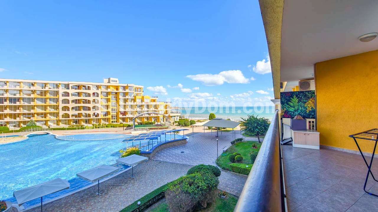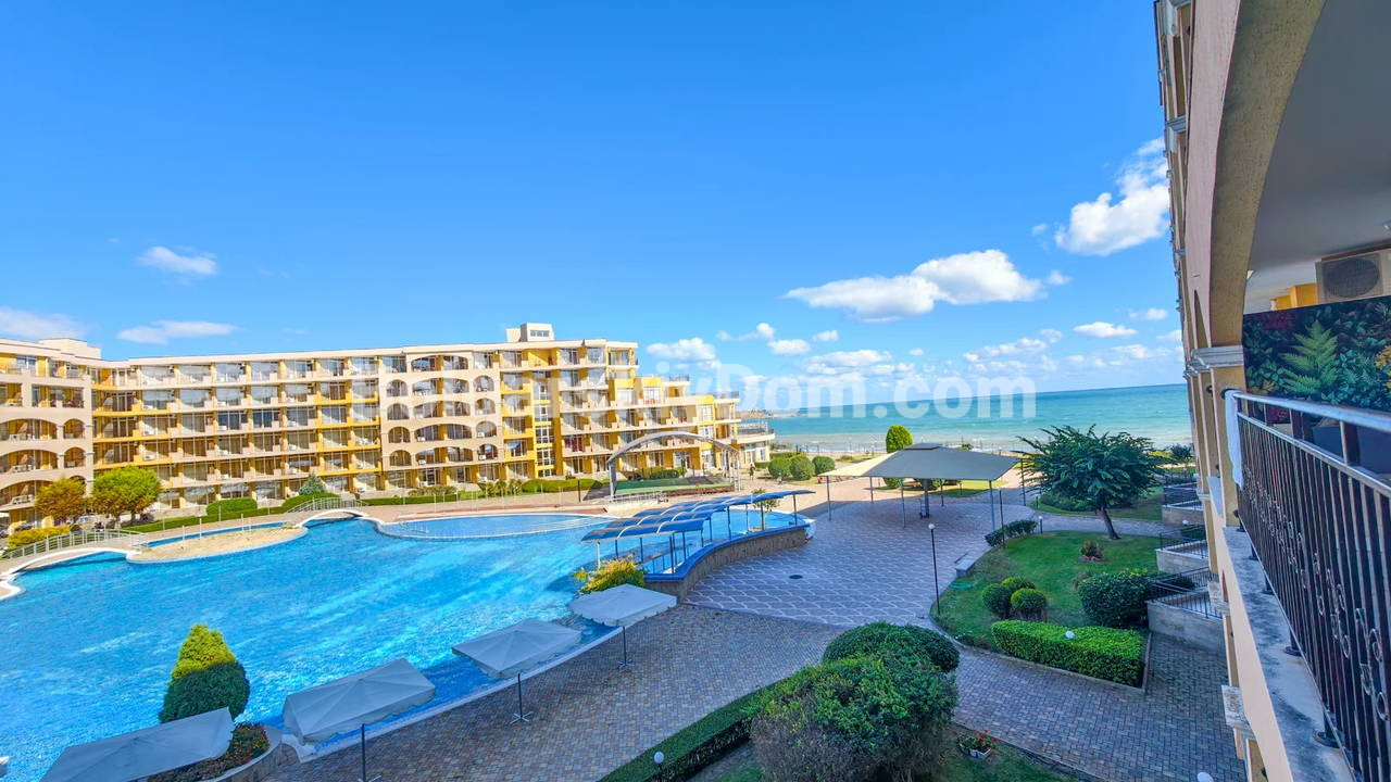 Топ-пополнение в каталоге видовых объектов! Агентство Болгарский Дом представляет просторную двухкомнатную квартиру площадью 72 кв.м. с невероятно красивым видом на море и большой бассейн! Этот апартамент находится на 2 этаже здания с лифтом в комплексе Мидия Гранд Резорт. Квартира полностью укомплектована всей необходимой мебелью и техникой, находится в отличном состоянии и готова к немедленному заселению. Планировка идеальна: прихожая, просторная гостиная с кухонной зоной, спальня, которая имеет дополнительный бонус - собственную гардеробную, ванная комната и большой балкон.