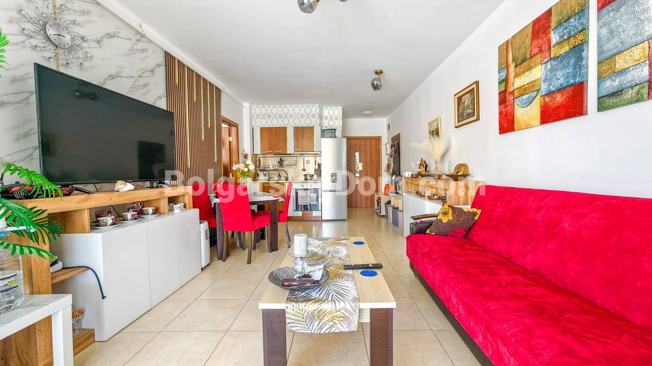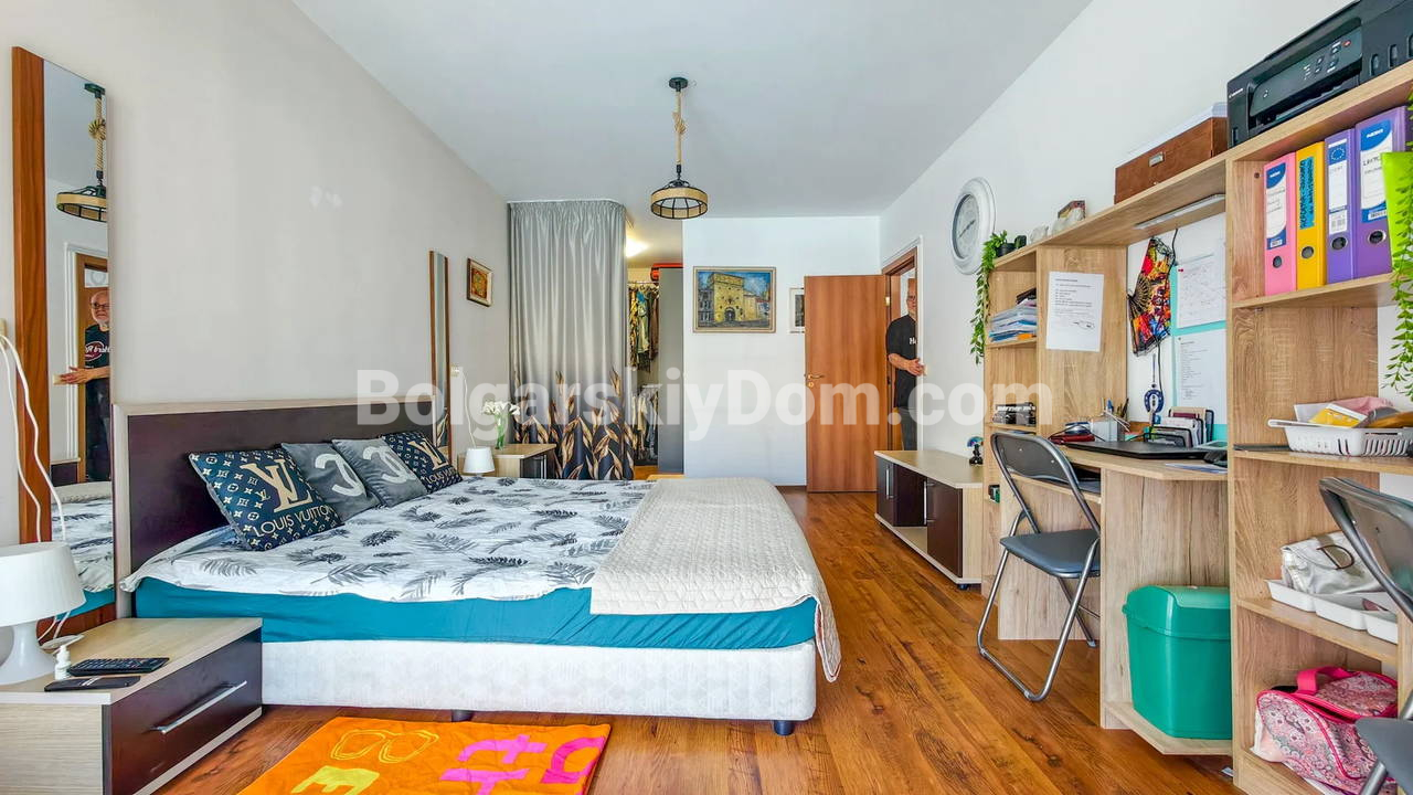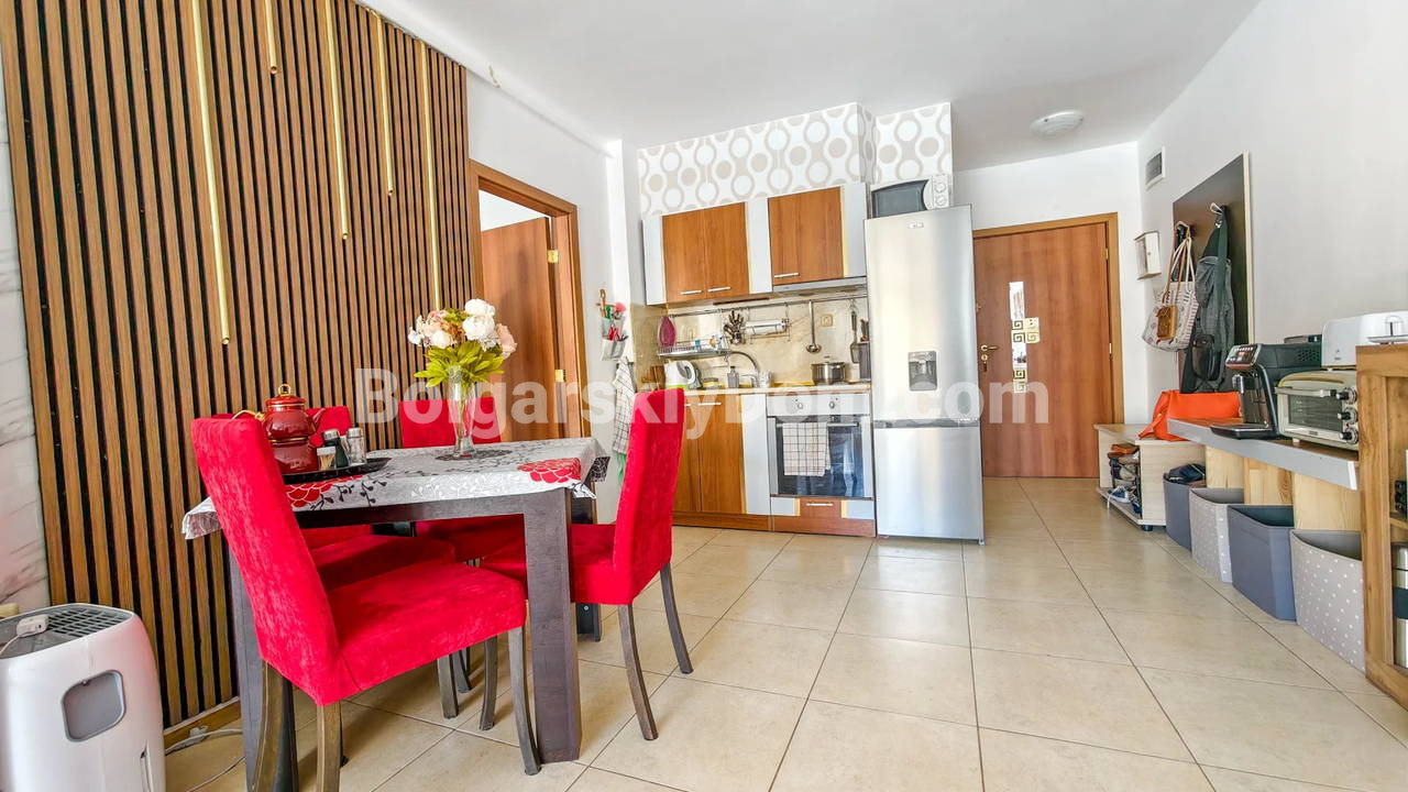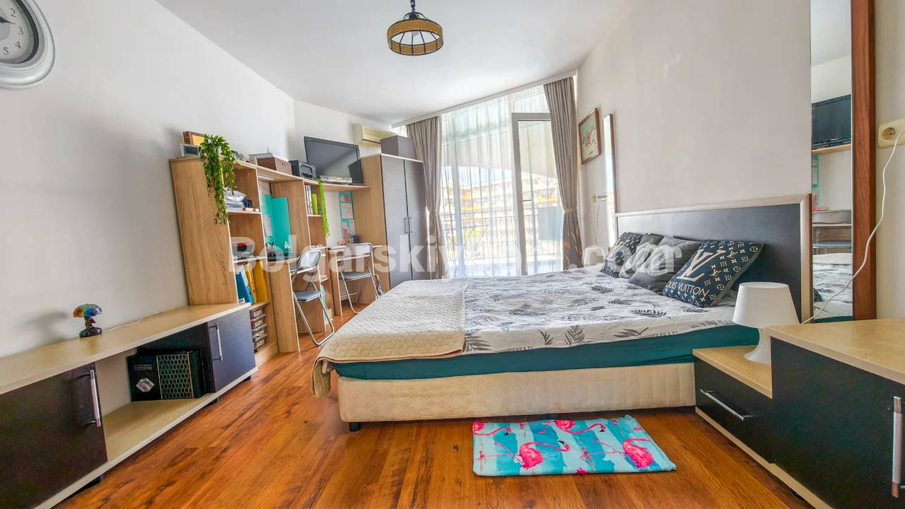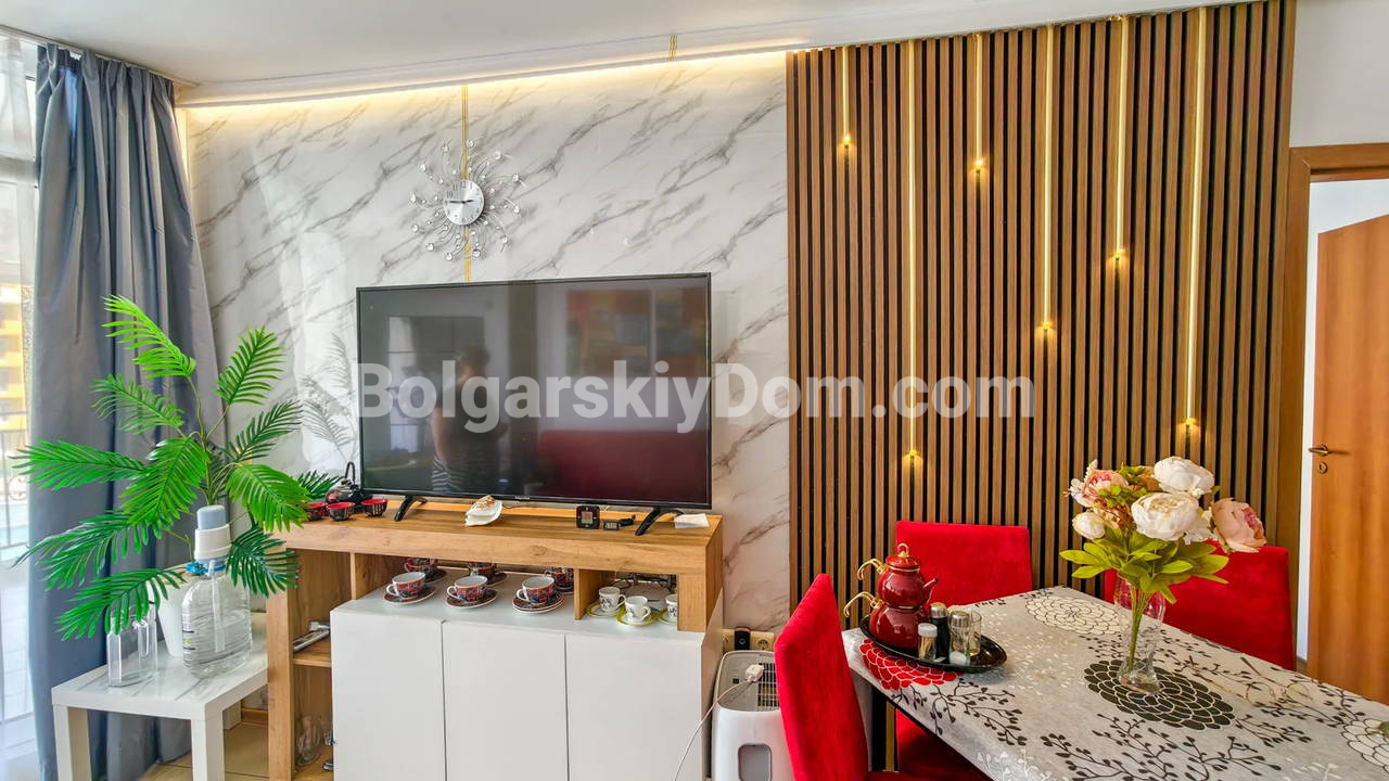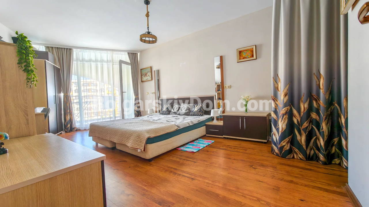 Топ-пополнение в каталоге видовых объектов! Агентство Болгарский Дом представляет просторную двухкомнатную квартиру площадью 72 кв.м. с невероятно красивым видом на море и большой бассейн! Этот апартамент находится на 2 этаже здания с лифтом в комплексе Мидия Гранд Резорт. Квартира полностью укомплектована всей необходимой мебелью и техникой, находится в отличном состоянии и готова к немедленному заселению. Планировка идеальна: прихожая, просторная гостиная с кухонной зоной, спальня, которая имеет дополнительный бонус - собственную гардеробную, ванная комната и большой балкон.