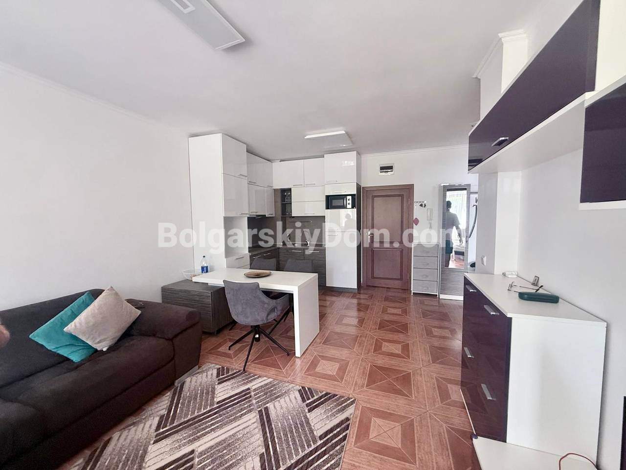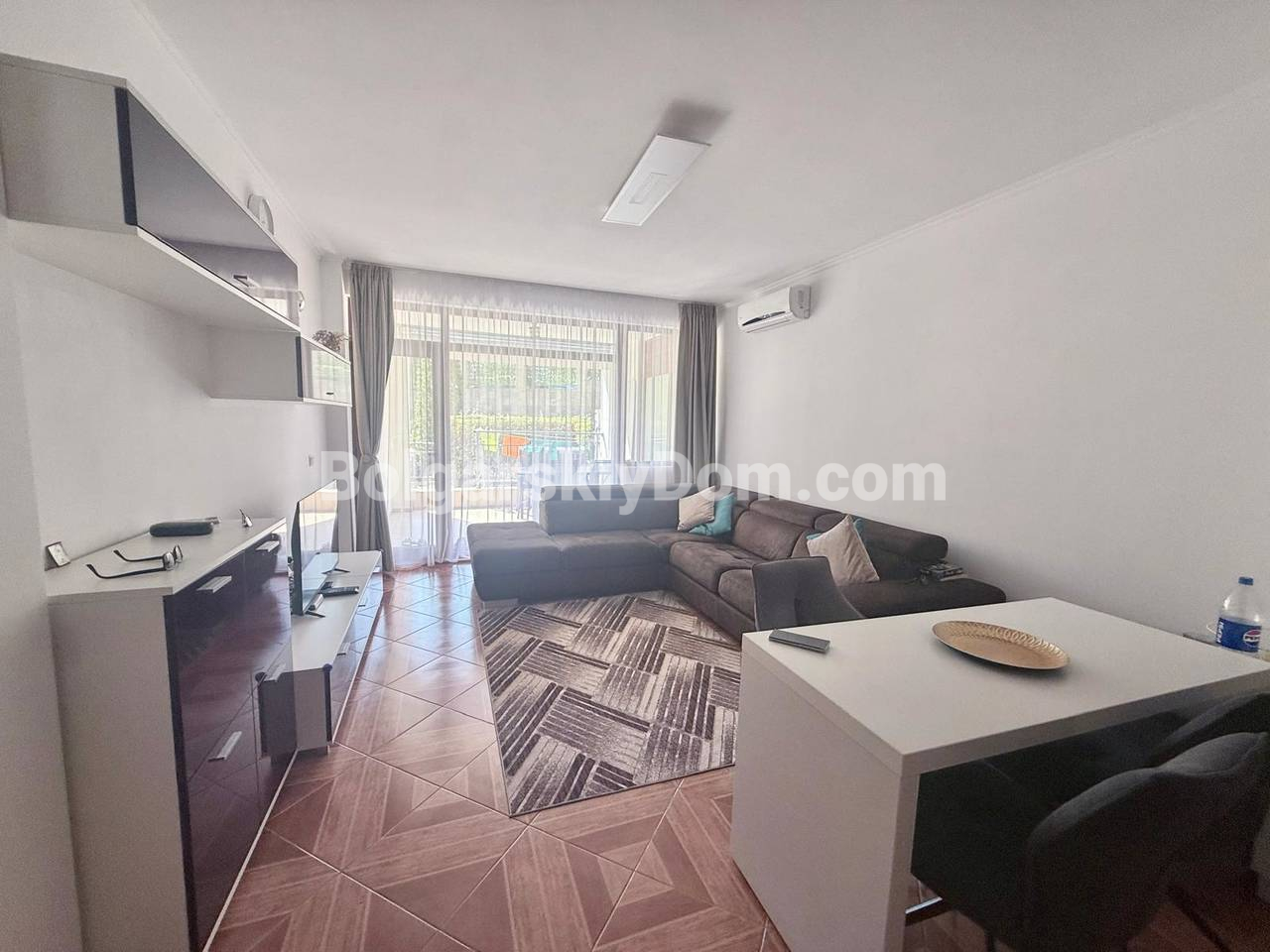 Агентство Болгарский Дом предлагает эксклюзивную двухкомнатную квартиру площадью 65 кв.м. на первом этаже с южной ориентацией в Святом Власе. Это жилье полностью оборудовано для немедленного круглогодичного проживания или сдачи в аренду. Планировка идеальна: просторный коридор, гостиная с новой, полностью оборудованной Г-образной кухней (включая большой холодильник и кофемашину), роскошный диван-кровать, а также современная спальня с большим шкафом. В квартире два плазменных телевизора и два кондиционера, а также ванная комната со стиральной машиной и 80-литровым бойлером. Также апартамент располагает просторным балконом с дополнительным выходом в зеленую зону и прозрачной шторой для защиты от ветра.