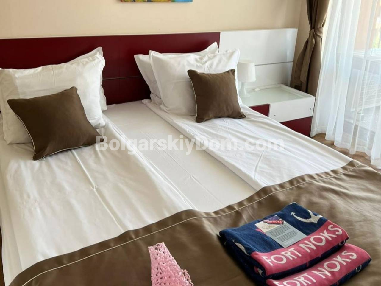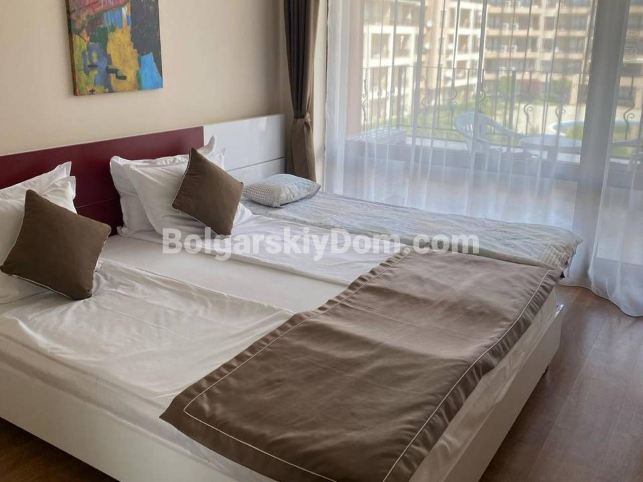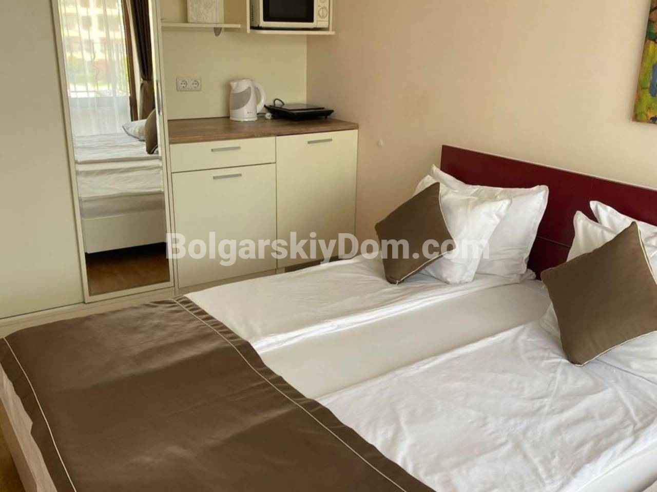 Агентство Болгарский Дом представляет эксклюзивный лот на первой линии: уютная студия в апарт-комплексе Премьер Форт Бич. Этот апартамент - идеальное решение для быстрого старта в арендный бизнес, так как он полностью меблирован и готов к заселению. Светлый интерьер в спокойных тонах создает приятную атмосферу для отдыха: здесь есть удобная двуспальная кровать, функциональная мини-кухня с микроволновой печью, а также современная ванная комната с душевой кабиной. С балкона открывается приятный вид на внутренний двор комплекса, где можно наслаждаться утренним кофе. Метраж 39 кв.м., до моря минута ходьбы.