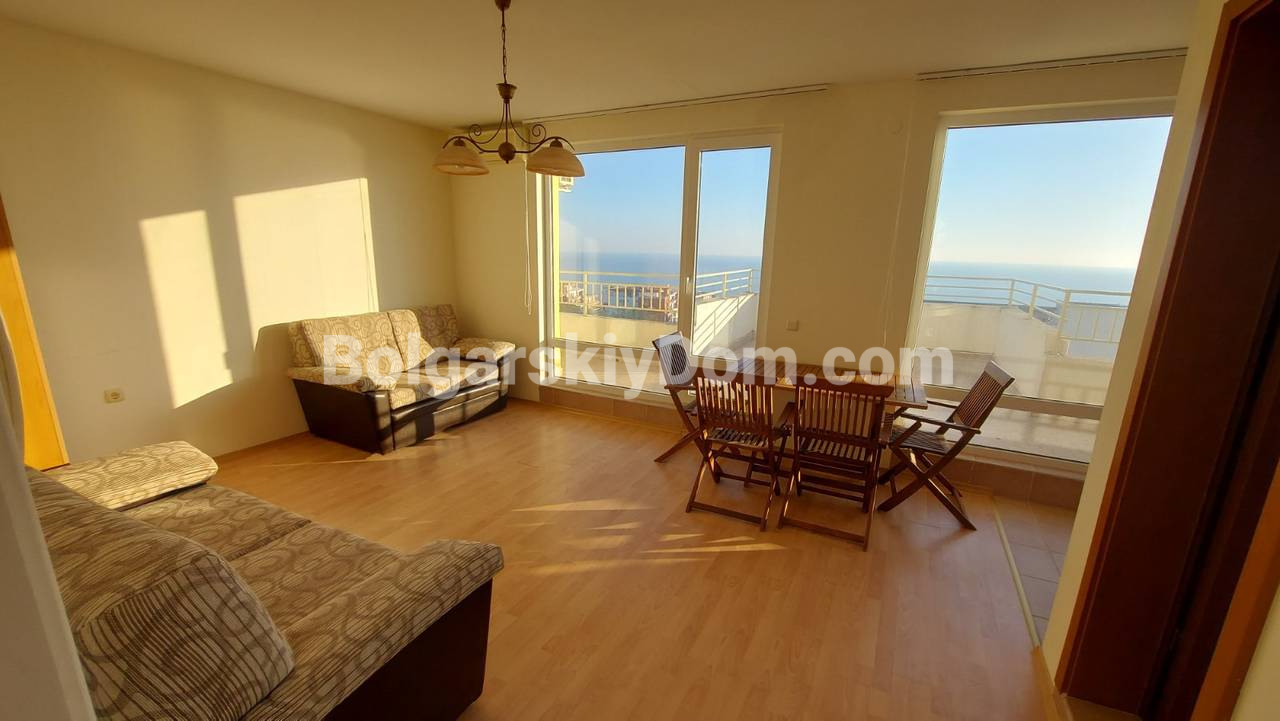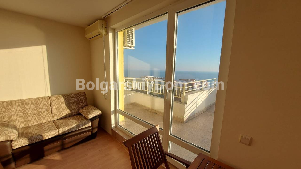 Ищете видовый апарт по хорошей цене? Наши агенты уже готовы предложить вам отличную квартиру-студию площадью 63 кв.м. в престижном комплексе Краун Форт Клуб в Святом Власе! Этот апартамент находится на пятом этаже (не последнем), что гарантирует вам панорамный вид на море прямо с террасы. Квартира полностью меблирована и готова к немедленному использованию, будь то для личного проживания или выгодной сдачи в аренду. Планировка включает прихожую, гостиную с кухней и спальной зоной и ванную комнату с душевой кабиной.