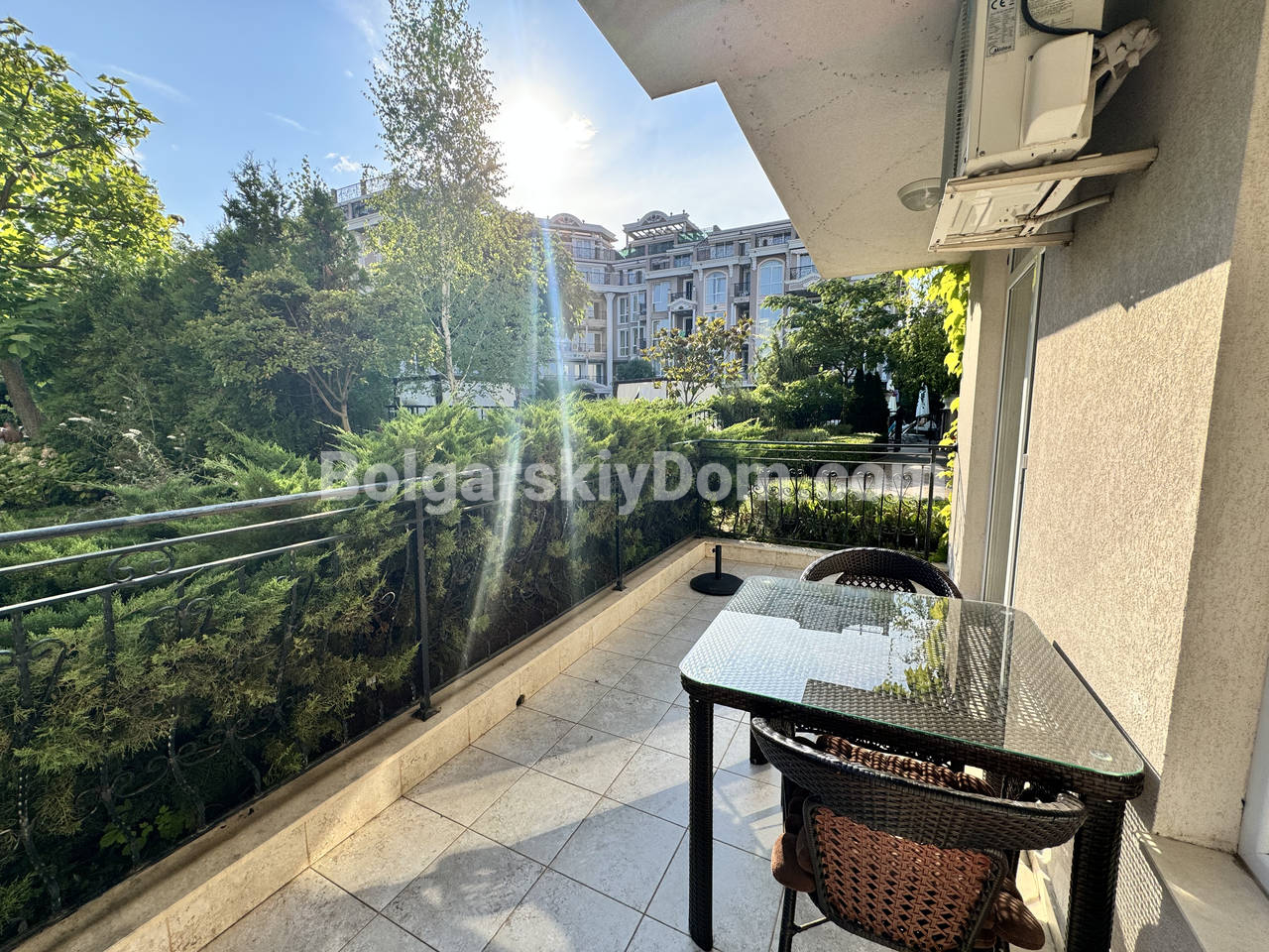 Жилой комплекс Даун Парк находится в очень удобной части курорта Солнечный Берег, всего в 10 минутах ходьбы от центра и 500 метров от моря. Комплекс имеет отличную инфраструктуру: большой бассейн для взрослых с пул-баром, детский бассейн, джакузи, ресторан с красивым видом, магазин и охраняемая парковка. Здесь предоставляются услуги обслуживания и охраны, а годовая такса составляет 18 евро за кв.м.