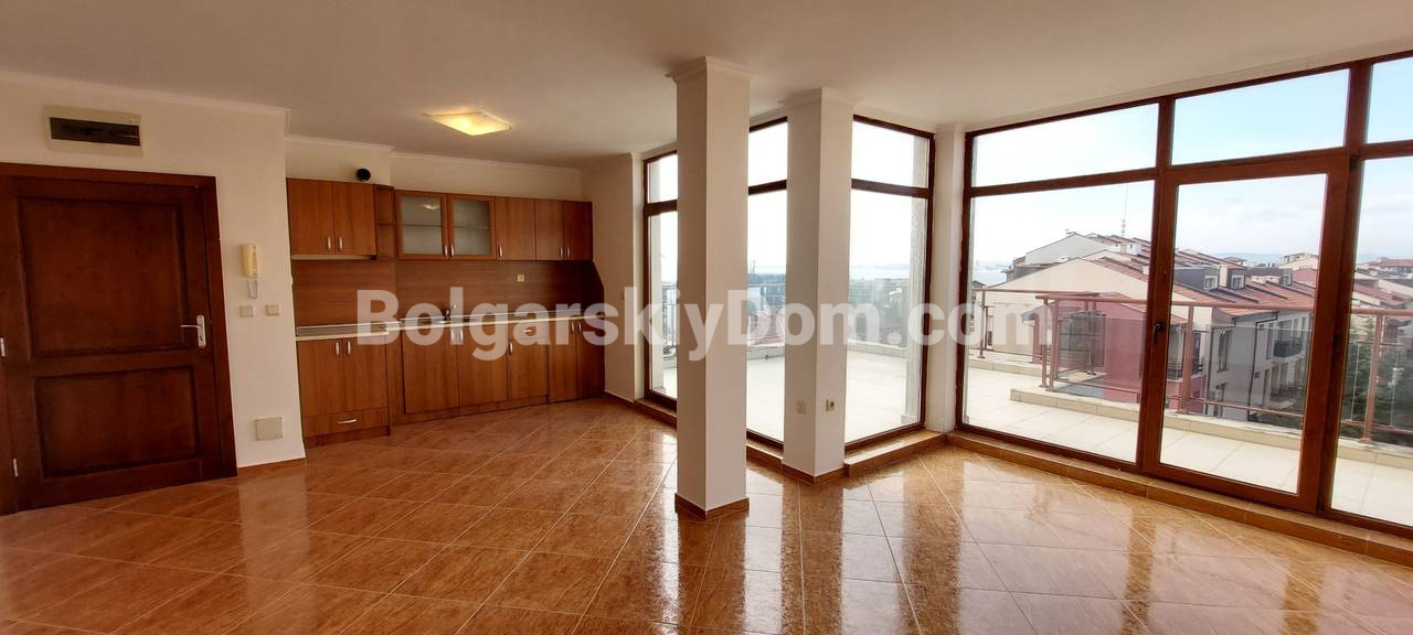 Агентство Болгарский Дом вновь обращает ваше внимание на впечатляющий лот в жилом комплексе Хелиос в Святом Власе! Это просторнейшая трехкомнатная квартира площадью 142,48 кв.м., расположенная на 7-м этаже, откуда открывается захватывающий панорамный вид на море. Апартамент полностью готов к проживанию: здесь выполнена чистовая отделка, установлена встроенная кухня и оборудована ванная комната. Планировка уникальна и удобна для большой семьи: коридор, две изолированные спальни, гостиная с кухней и, что невероятно ценно, три отдельные террасы для отдыха и любования пейзажами.