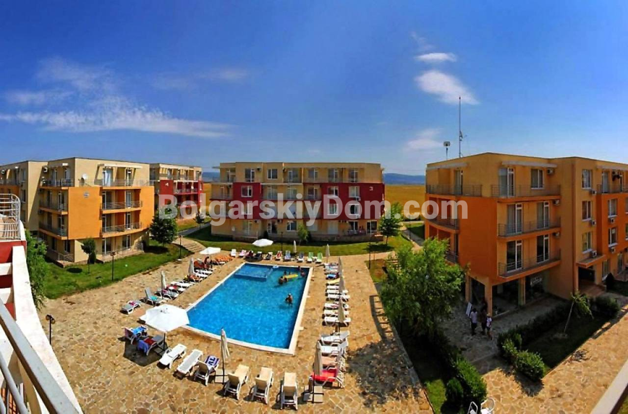 Комплекс Санни Дей 5 - это масштабный проект площадью 10 000 кв.м., состоящий из восьми современных зданий, расположенных на дороге между Солнечным берегом и поселком Тынково. До моря 4 километра, и это топ для тех, кто ориентирован на тишину и удаленность от курортной суеты. Комплекс с удобствами: бассейн с детским отделением, бар, ресторан, консьерж, летний сад, парковка и круглосуточная охрана. Акт 15, годовая такса 580 евро.
