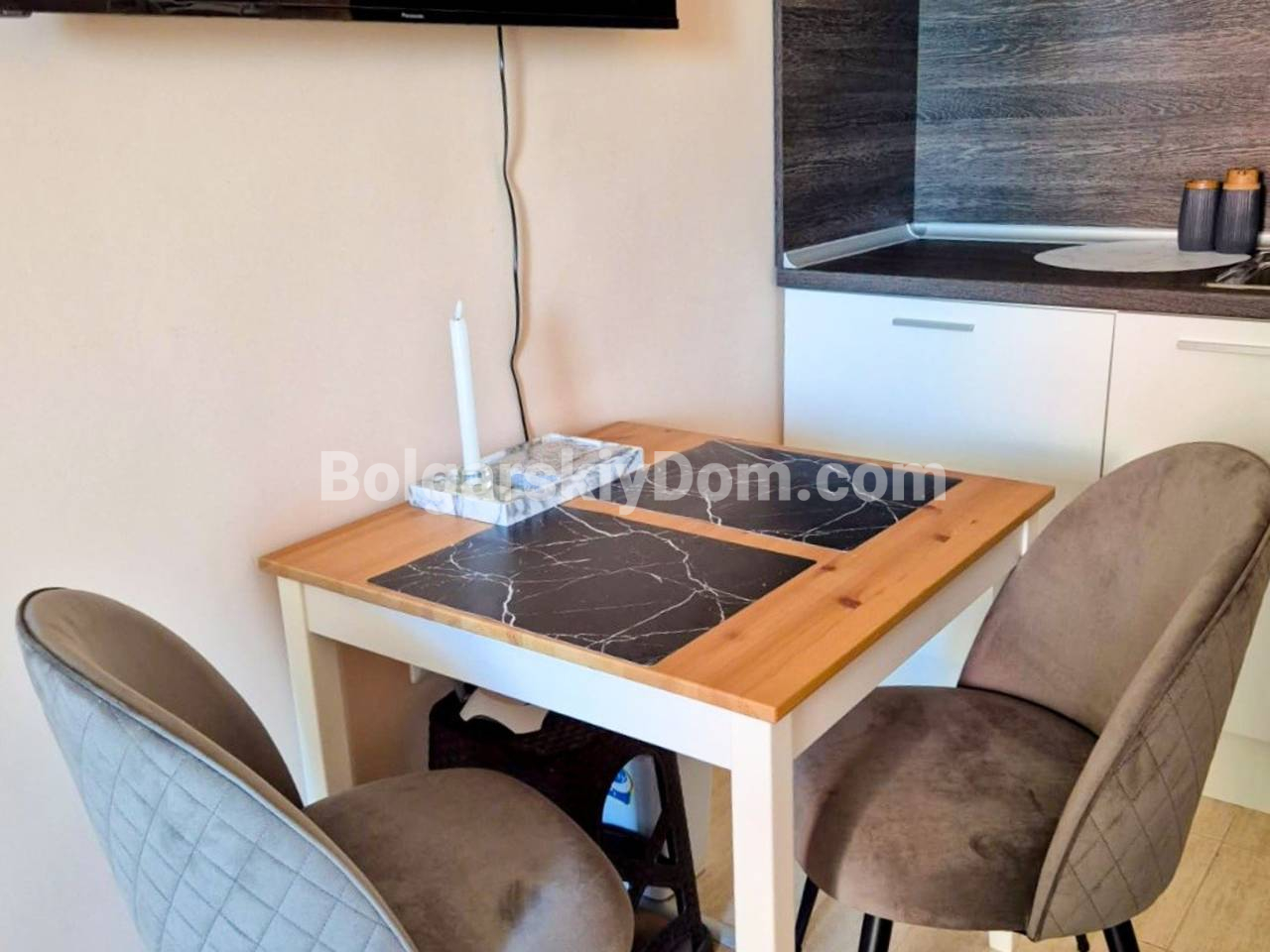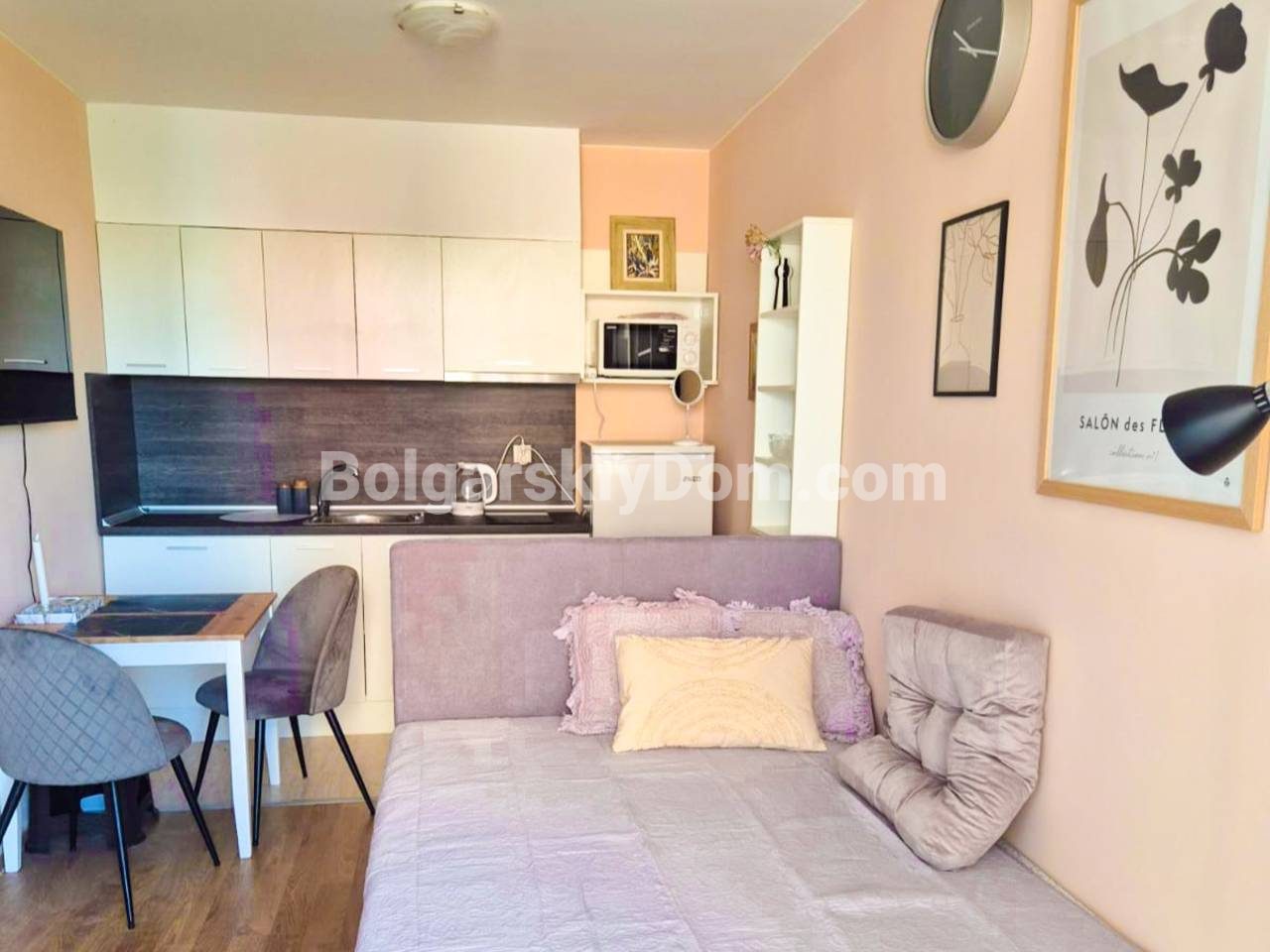 Наша команда АН Болгарский Дом нашла идеальный вариант для быстрого старта на побережье! В тихом и зеленом районе Солнечного берега продается компактная студия площадью 31 кв.м. на первом этаже. Квартира будет передана полностью меблированной и оборудованной, с довольно свежим и опрятным интерьеров. Внутреннее пространство включает функциональную зону гостиной с кухней и ванную комнату с полноценной ванной. Собственная терраса, которая обеспечивает удобный доступ к зеленой и ухоженной территории, станет отличным бонусом к и без того стоящему внимания апартаменту. Напишите нам, чтобы узнать детали!