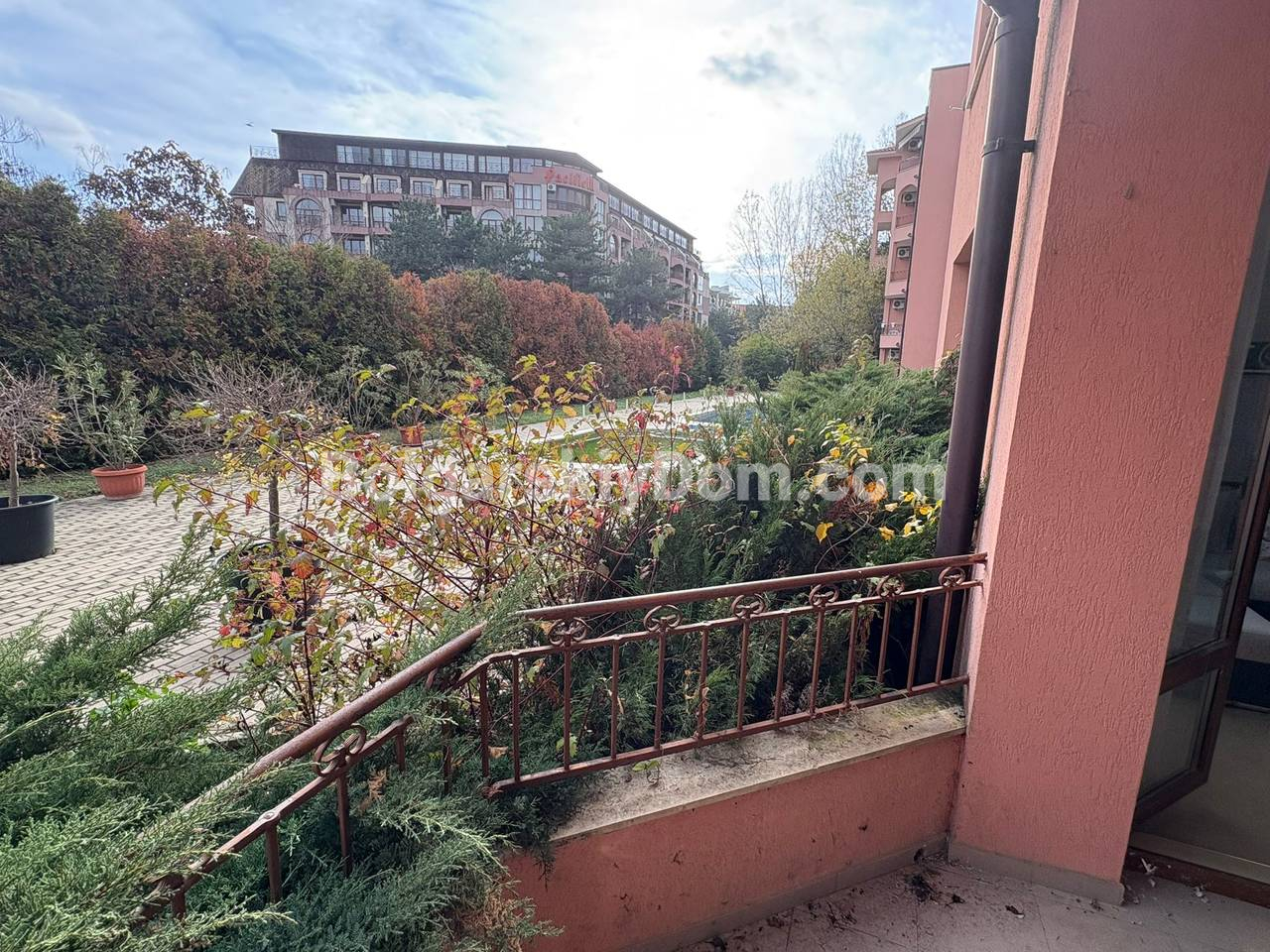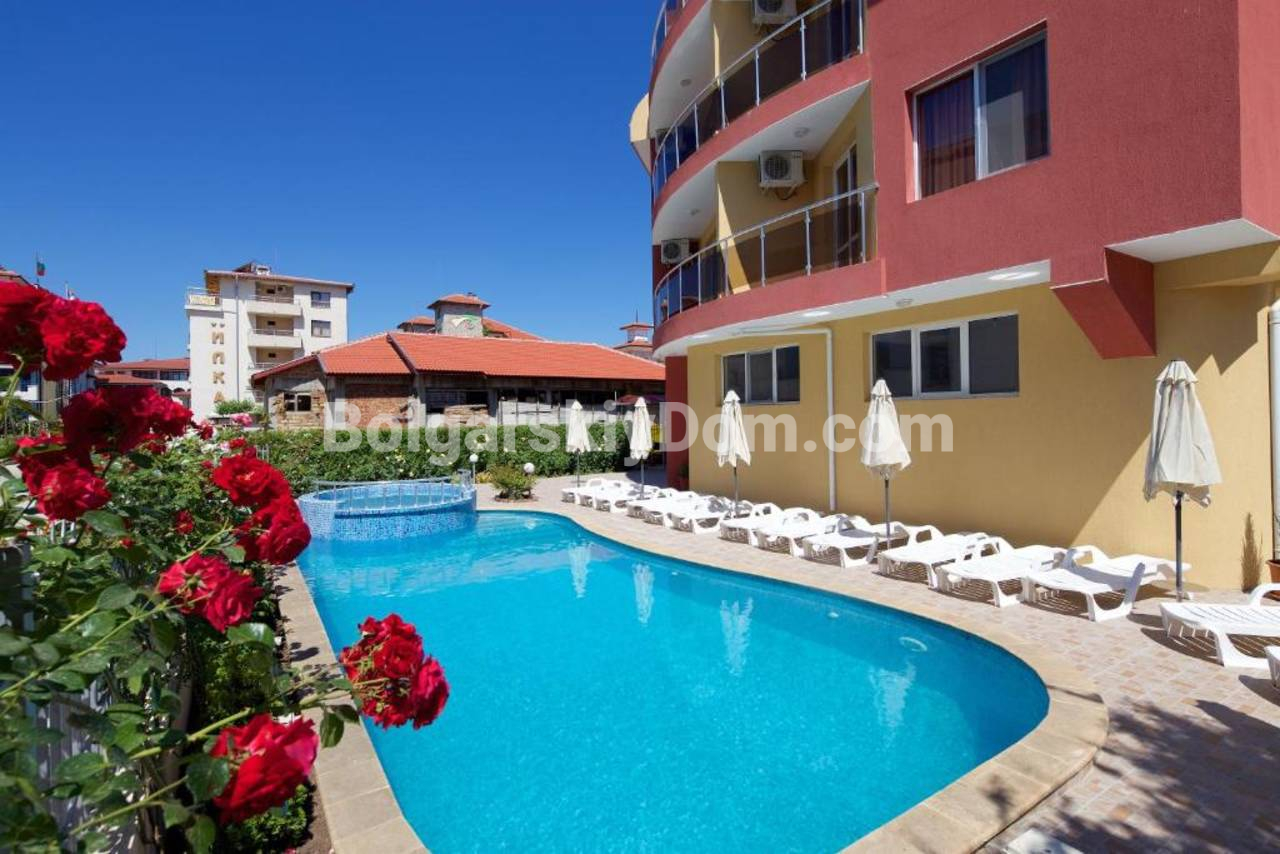 Комплекс Сан Флауер находится в северной части курорта, гарантируя спокойствие, при этом до моря и оборудованного пляжа всего 5 минут пешком. В пешей доступности также расположены аквапарк Action и вся необходимая инфраструктура для круглогодичного проживания. Комплекс сдан с Актом 16, имеет закрытую охраняемую территорию с видеонаблюдением, красивый зелёный сад, бассейн, детскую площадку и парковку. Такса зафиксирована на уровне 700 евро в год.