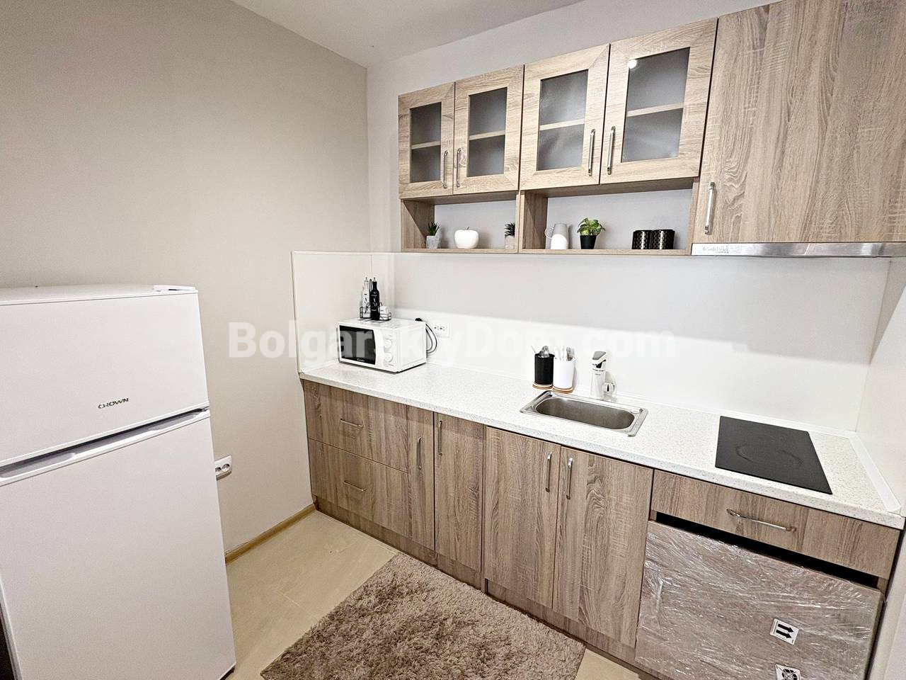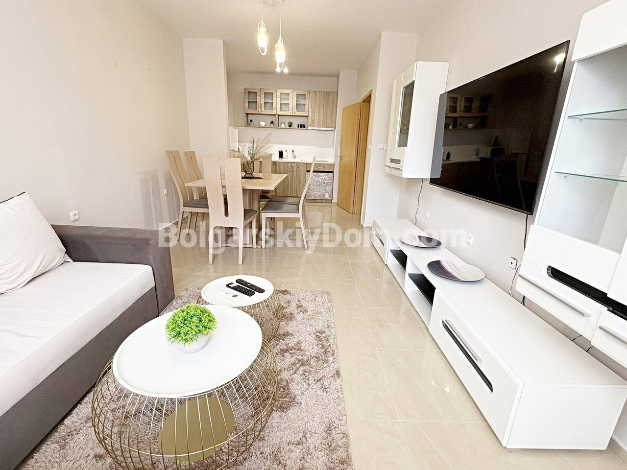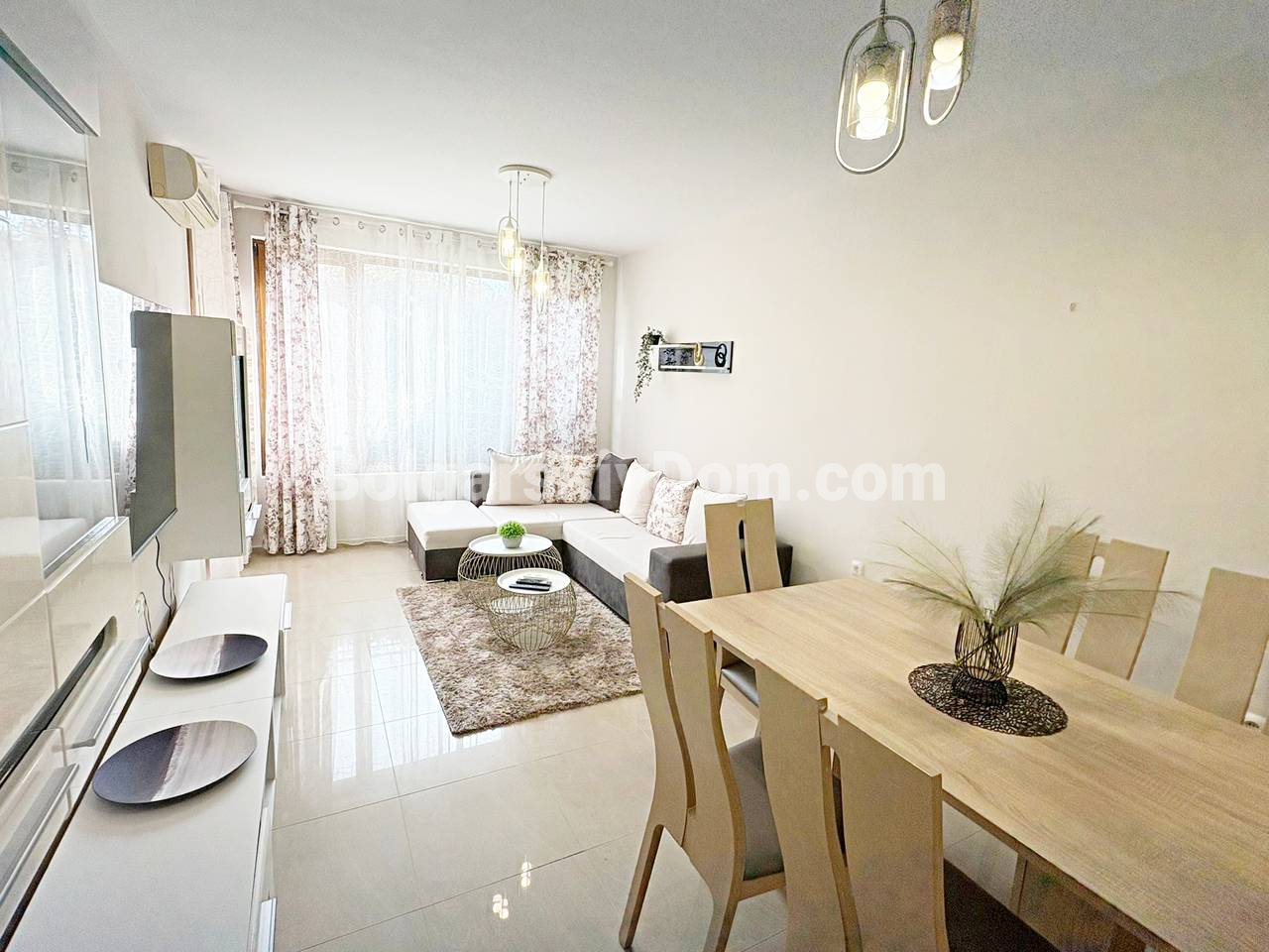 Наш новый объект - готовый апартамент в лучшей части Солнечного берега! Представляем красивую двухкомнатную квартиру площадью 62 кв.м. в уютном комплексе Сан Флауер. Апартамент расположен на высоком первом этаже, а это очень важно, поскольку обеспечивает удобный доступ для семей с детьми и людей пожилого возраста. Планировка идеальна: прихожая, большая и светлая гостиная с кухонной зоной, отдельная спальня и терраса. Квартира укомплектована всей необходимой мебелью и техникой и находится в безупречном состоянии. Это разумная покупка, не требующая никаких вложений!