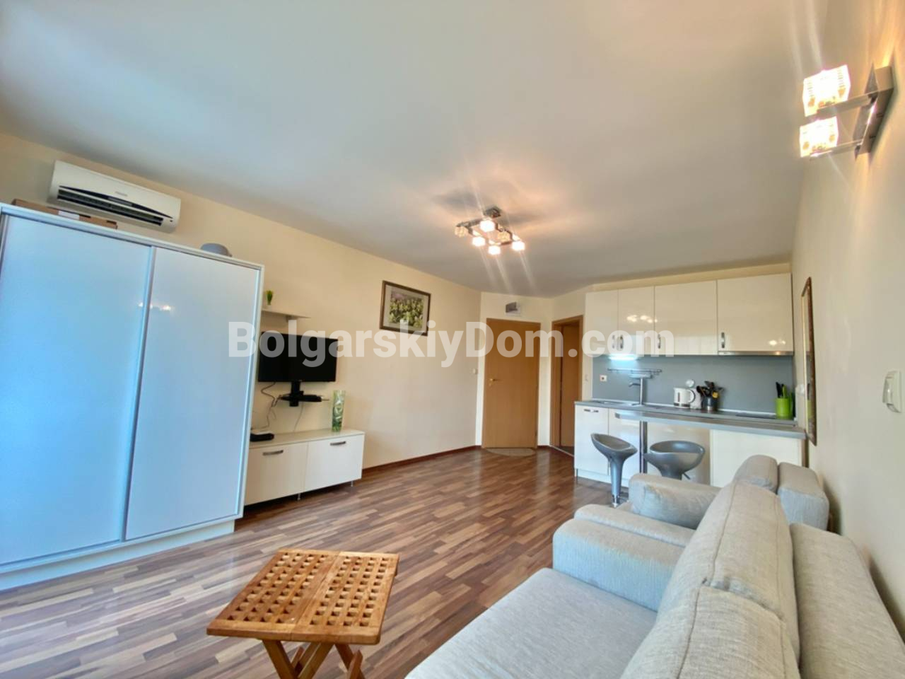 Студия для выгодной инвестиции в активной части Солнечного берега! АН Болгарский Дом представляет студию площадью 38 кв.м. в комплексе Амадеус 19. Апартамент расположен на 3 этаже и имеет удобное северо-западное изложение. Квартира продается со всей мебелью и бытовой техникой, полностью готовой к использованию - и это учитывая и без того выгодный прайс! Планировка включает гостиную с кухонным боксом и террасу, откуда открывается спокойный вид на зеленые холмы горы Стара Планина. Это функциональное пространство с комфортной зоной отдыха и лифтом в здании. Напишите агенту, чтобы забронировать просмотр!