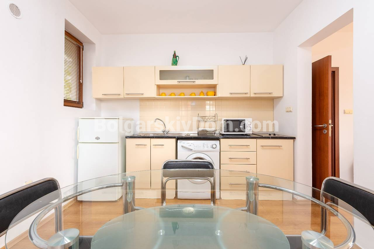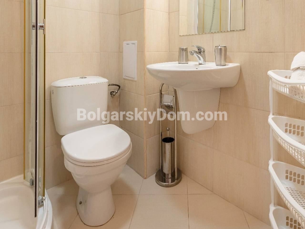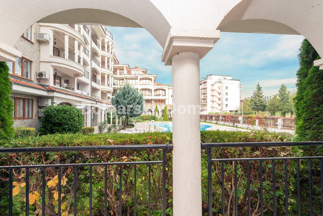 Уютная, обустроенная и довольно просторная квартира с одной спальней в средиземноморском стиле на Солнечном Берегу! Агентство Болгарский Дом представляет апартамент квадратурой 91 кв.м. в комплексе Шато Дель Мар. Это действительно внушительный метраж для двух комнат, а значит, этот параметр обеспечивает максимальный комфорт. А что обеспечивает экономию, так это прайс: он чуть больше 1000 евро за кв.м.! Квартира расположена на первом этаже, откуда открывается красивый вид на бассейн и ландшафтный дизайн территории. Планировка включает прихожую, большую гостиную с зонами кухни и столовой, отдельную спальню и балкон. Недвижимость полностью меблирована и находится в прекрасном состоянии.